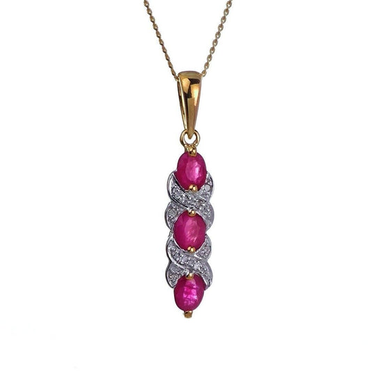 9ct Ruby Diamond Necklace Yellow Gold 0.5ct Red Oval Natural Gemstone