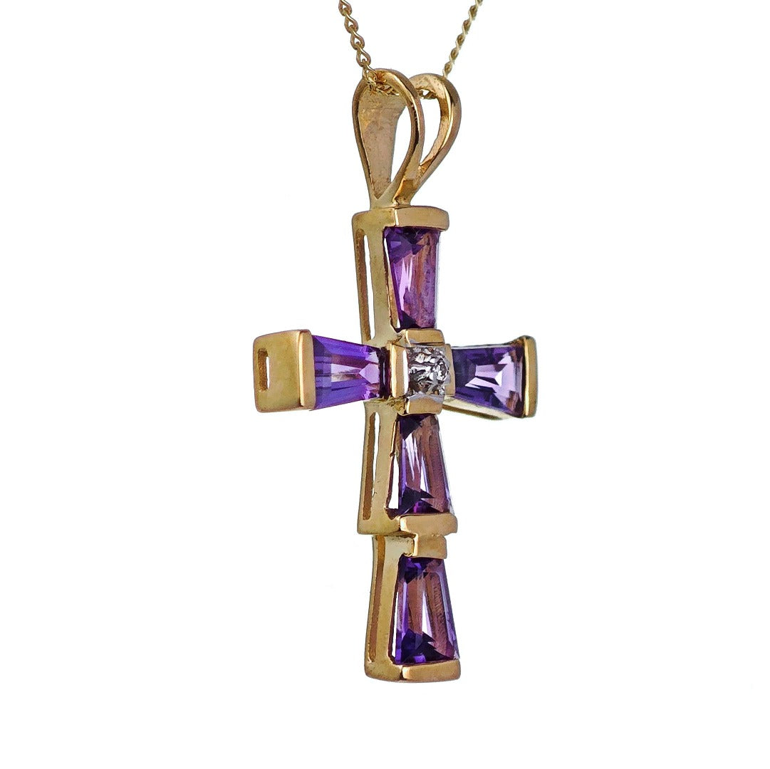 9ct Amethyst Cross Necklace Diamond Yellow Gold 1.2ct Purple Natural Gemstones