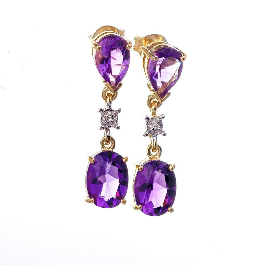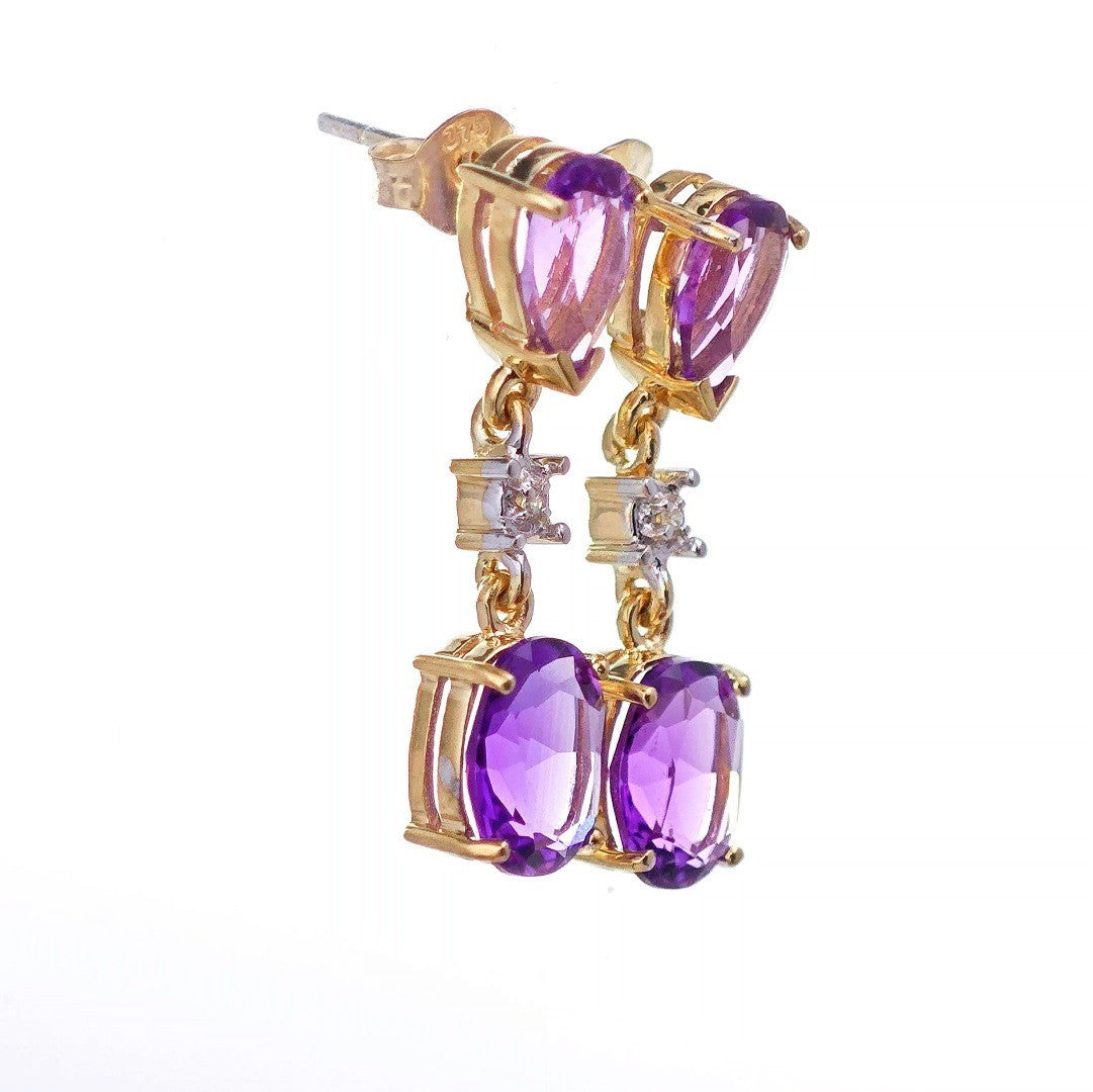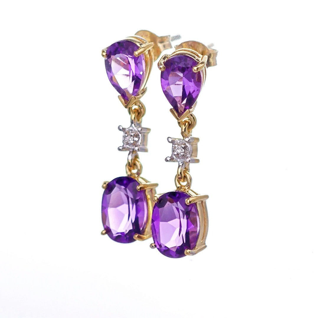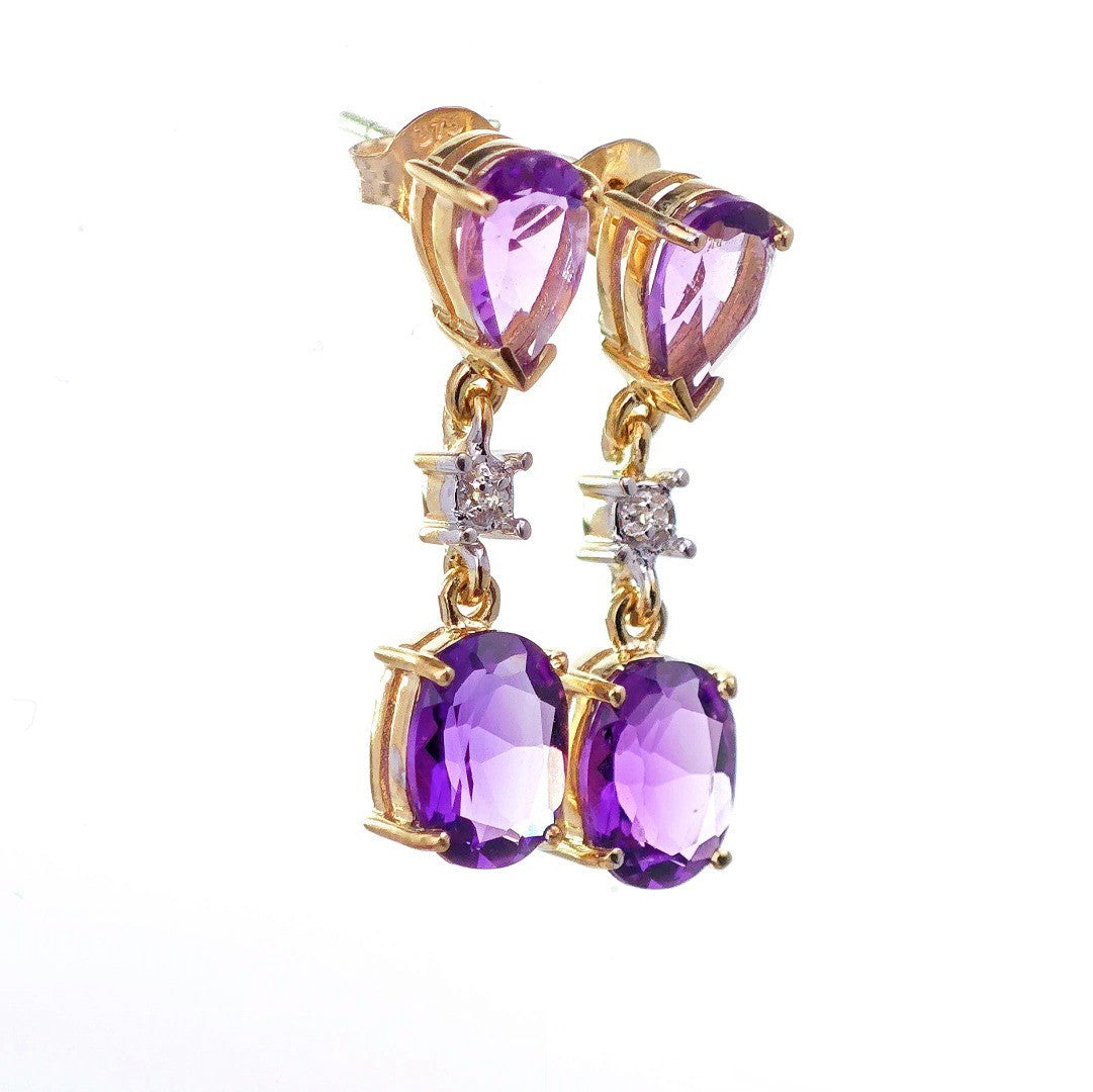 9ct Amethyst Diamond Earrings Gold Dangle Natural Gemstones 3.5ct