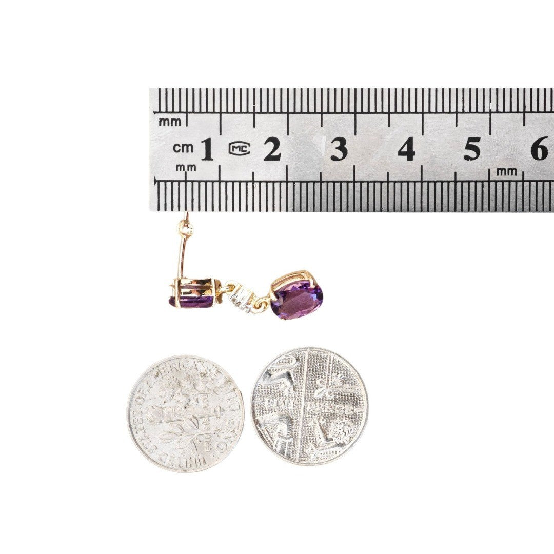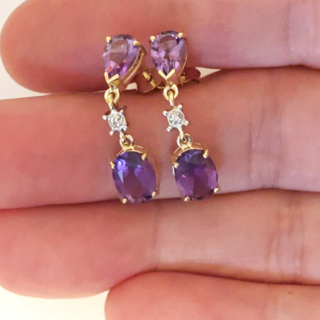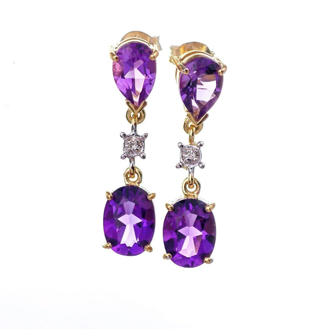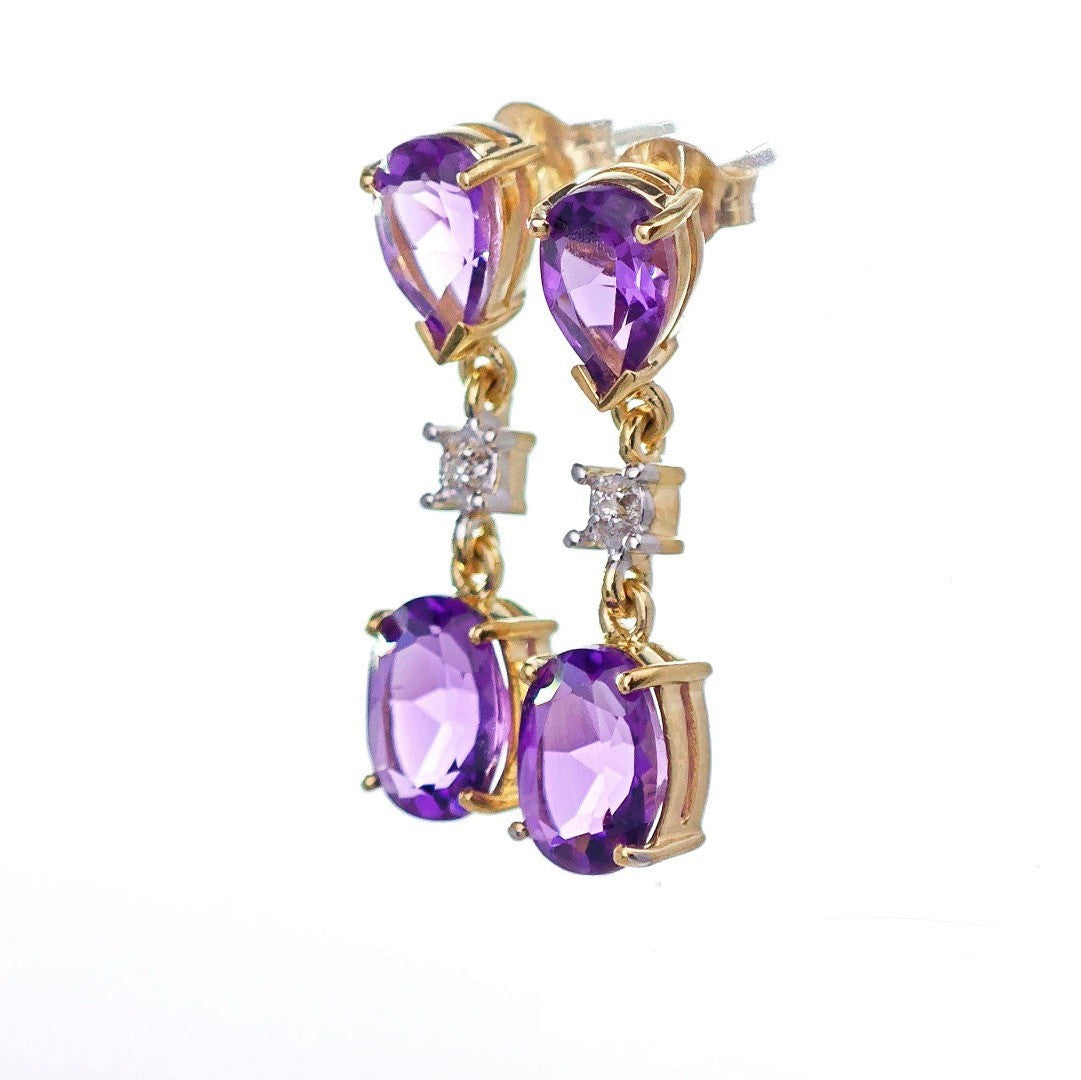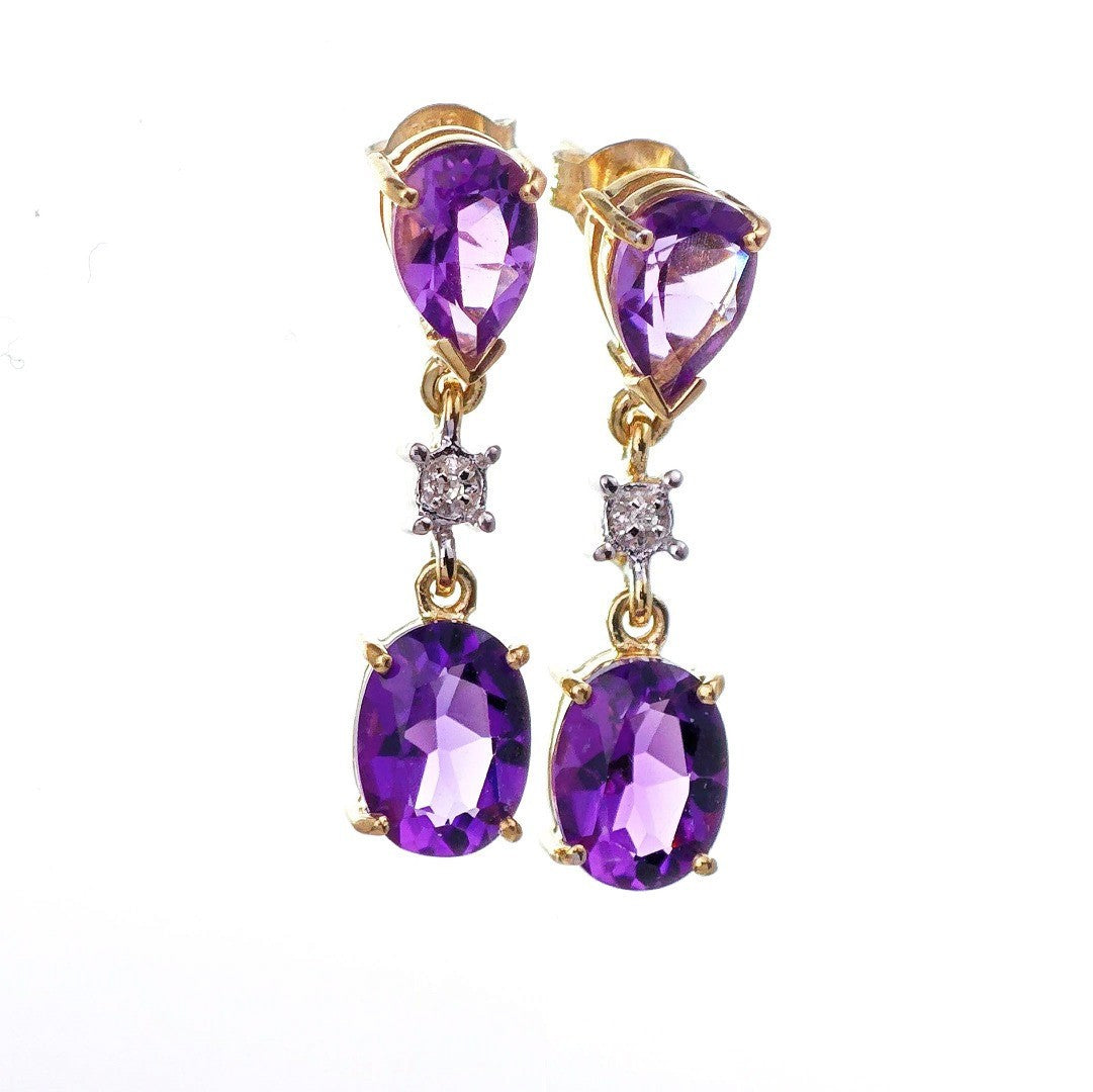 9ct Amethyst Diamond Earrings Gold Dangle Natural Gemstones 3.5ct