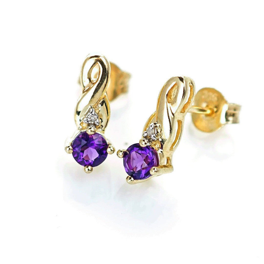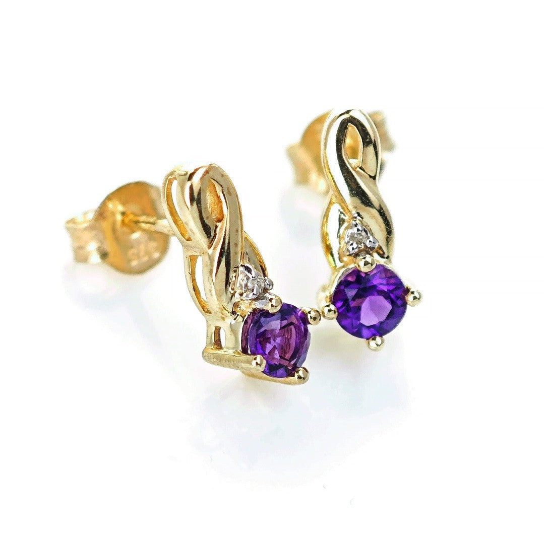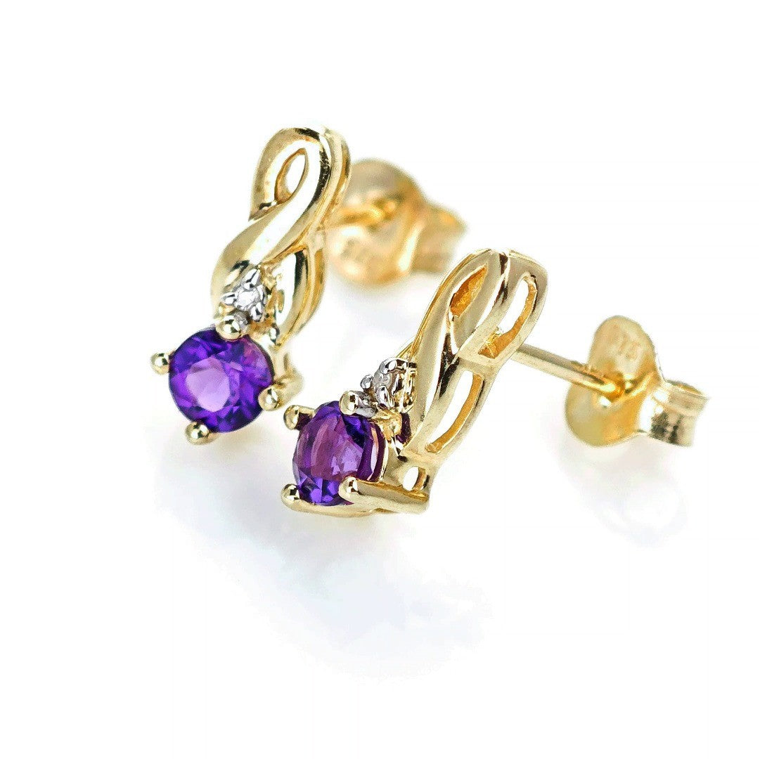 9ct Amethyst Diamond Earrings Gold Studs Natural Gemstones 0.80ct