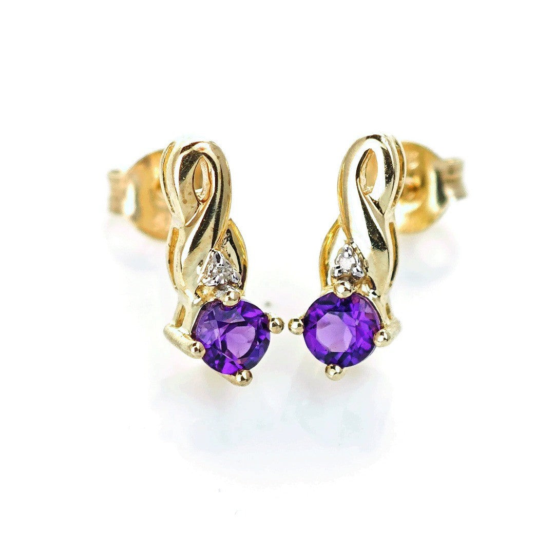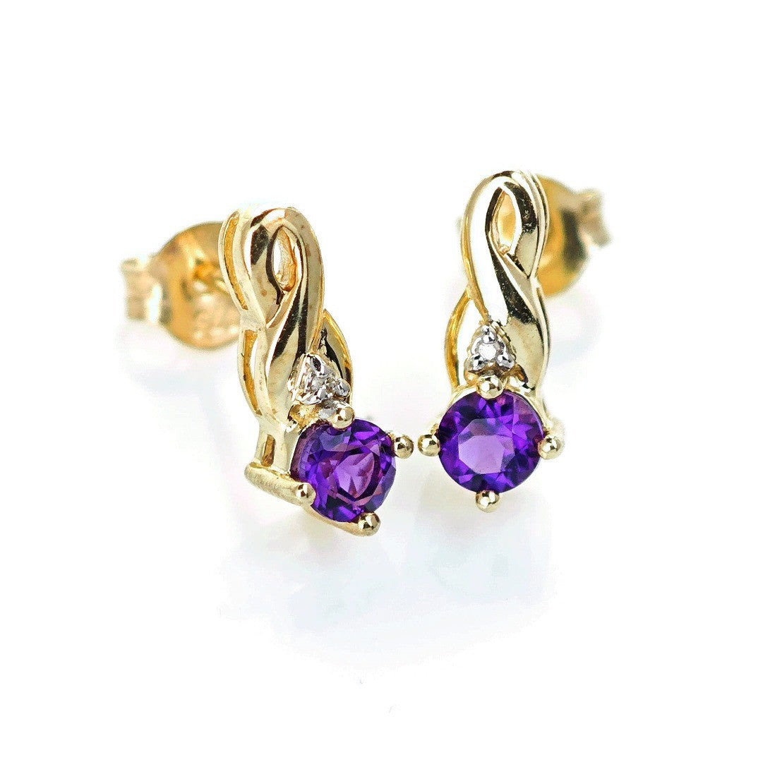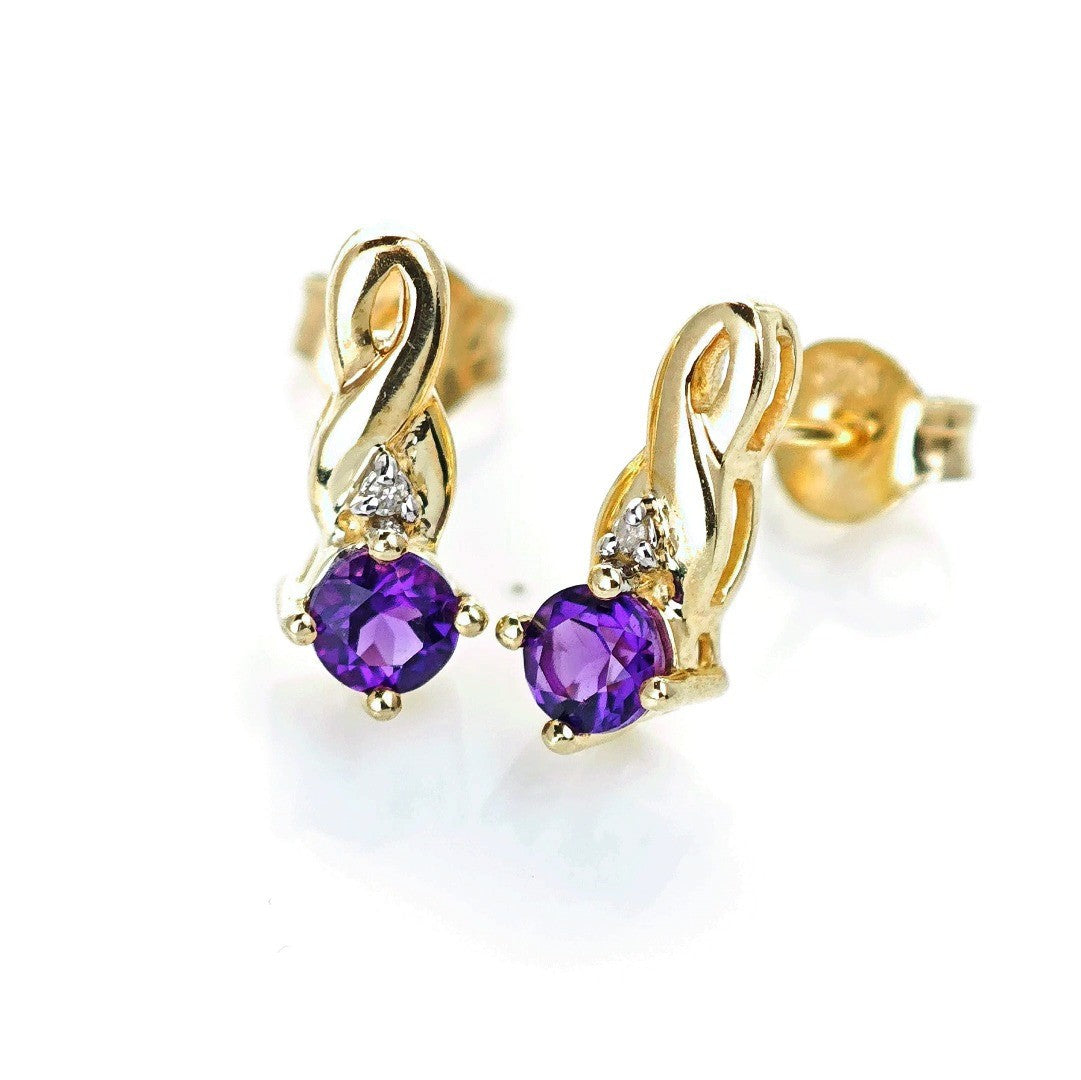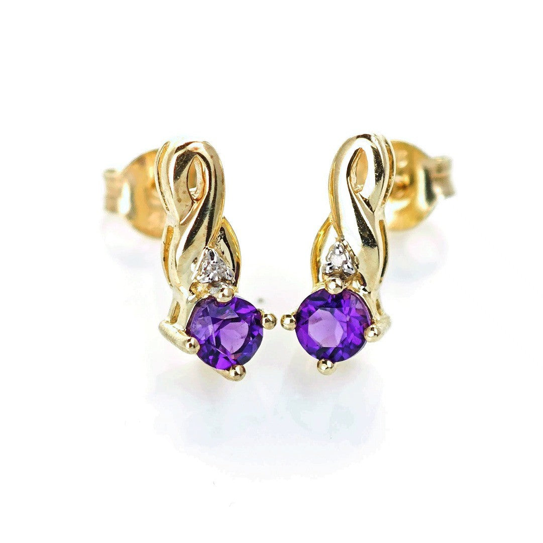 9ct Amethyst Diamond Earrings Gold Studs Natural Gemstones 0.80ct