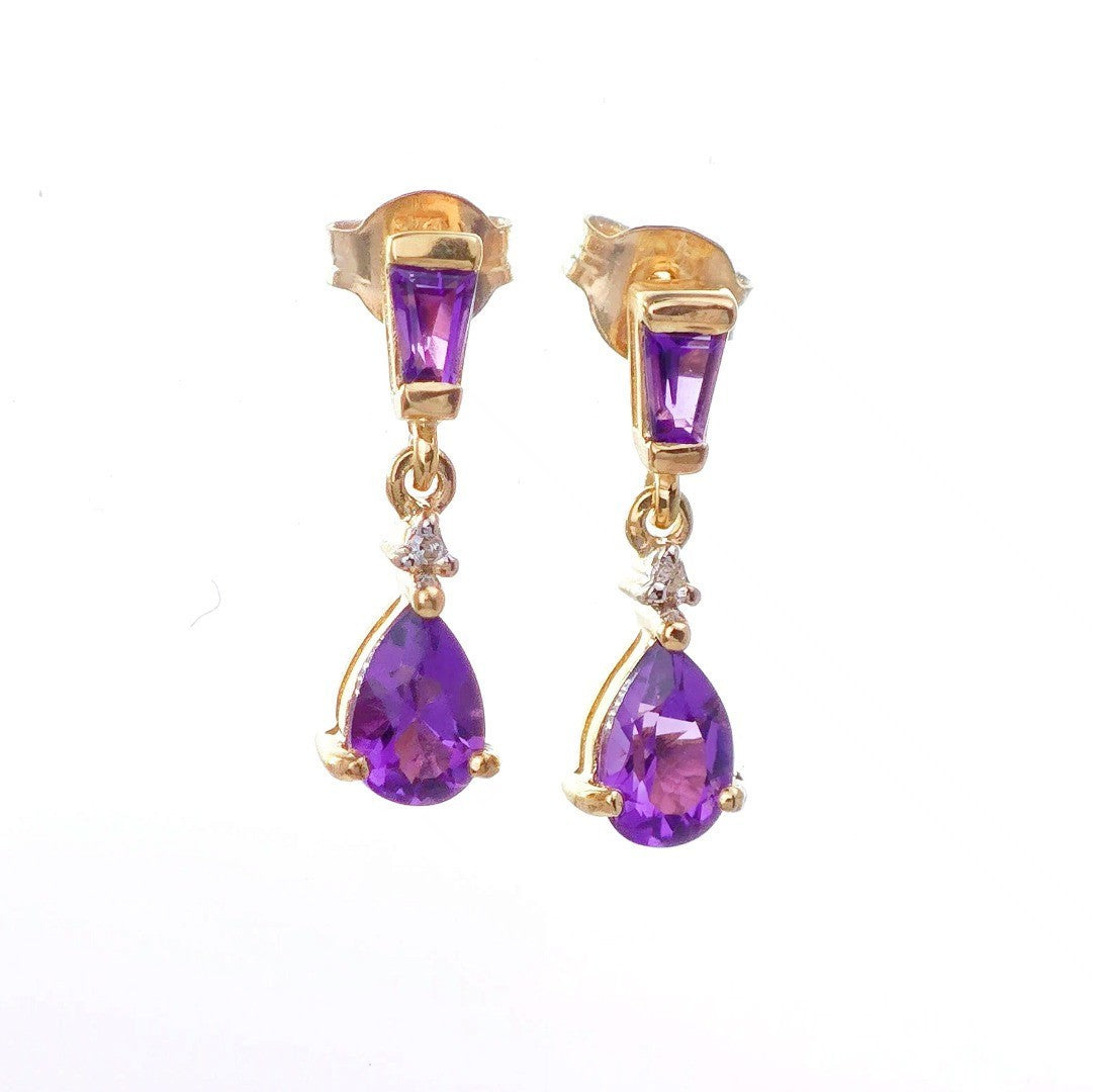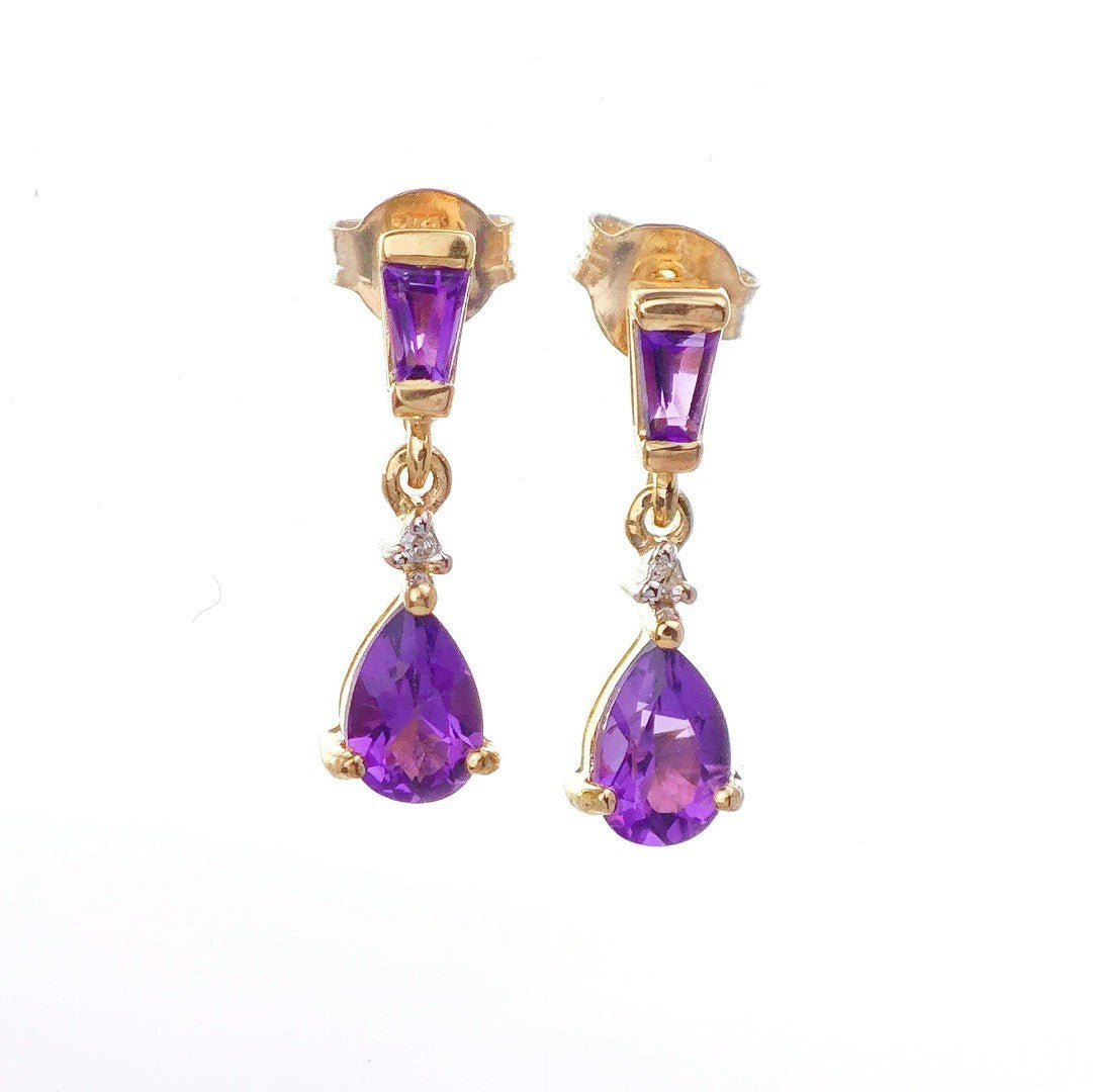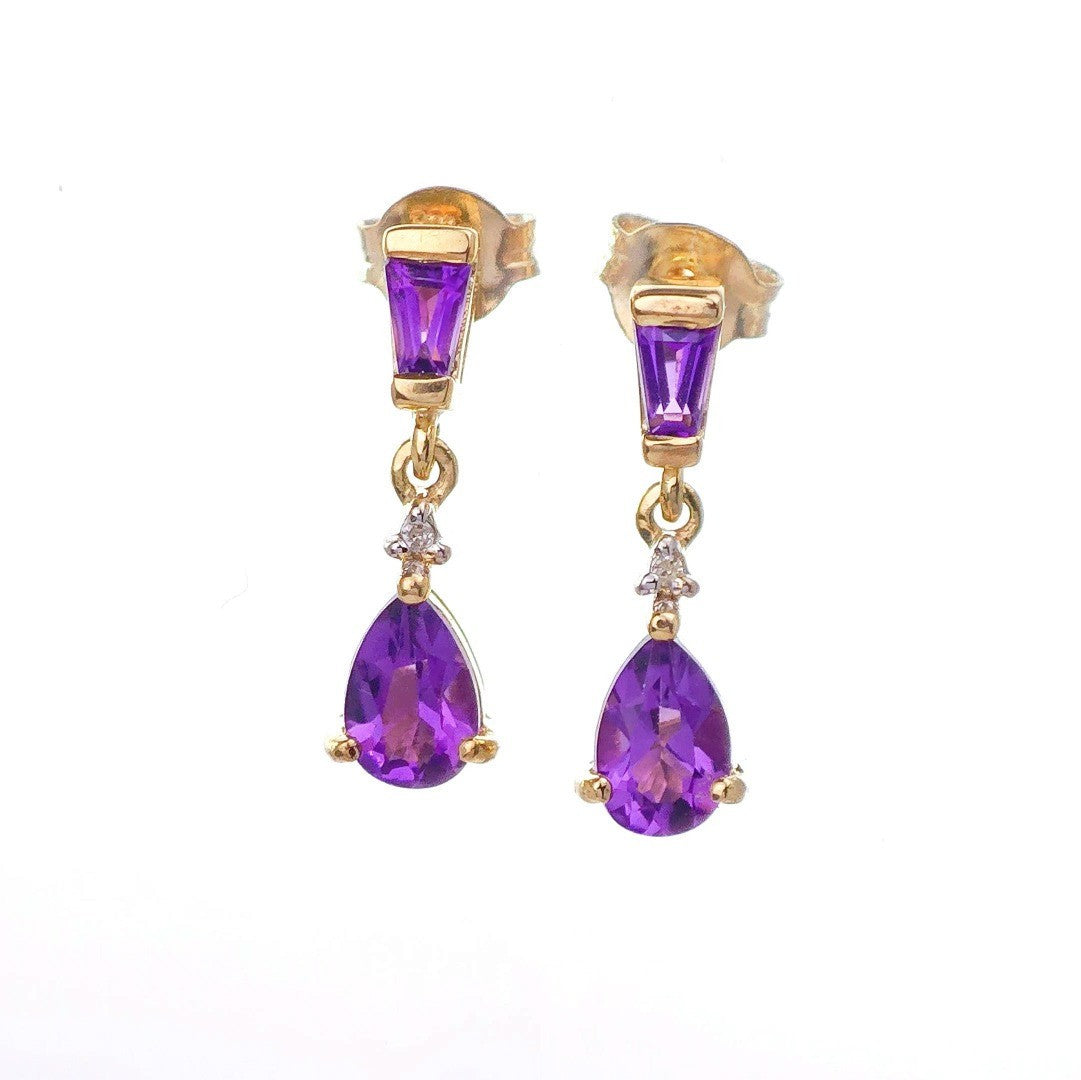 9ct Amethyst Diamond Earrings Gold Studs Natural Gemstones 0.92ct