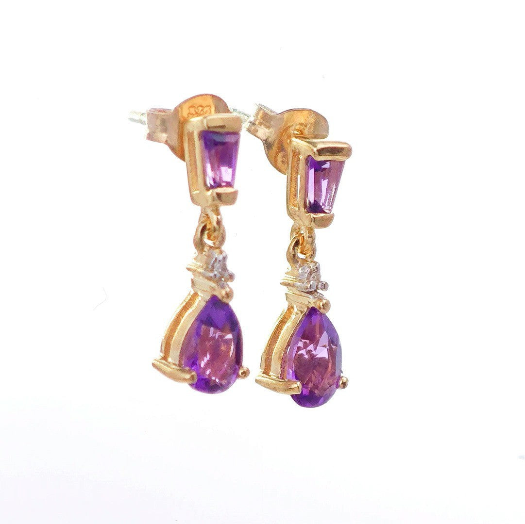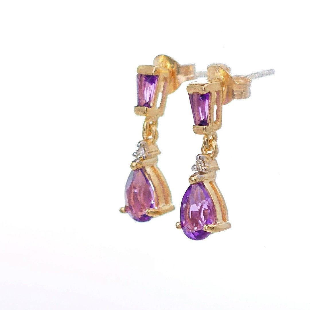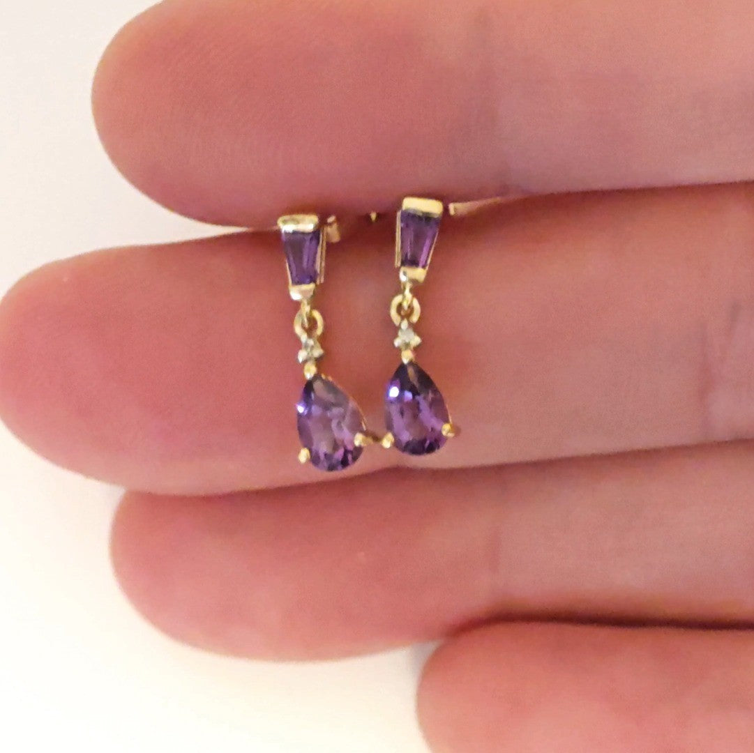 9ct Amethyst Diamond Earrings Gold Studs Natural Gemstones 0.92ct