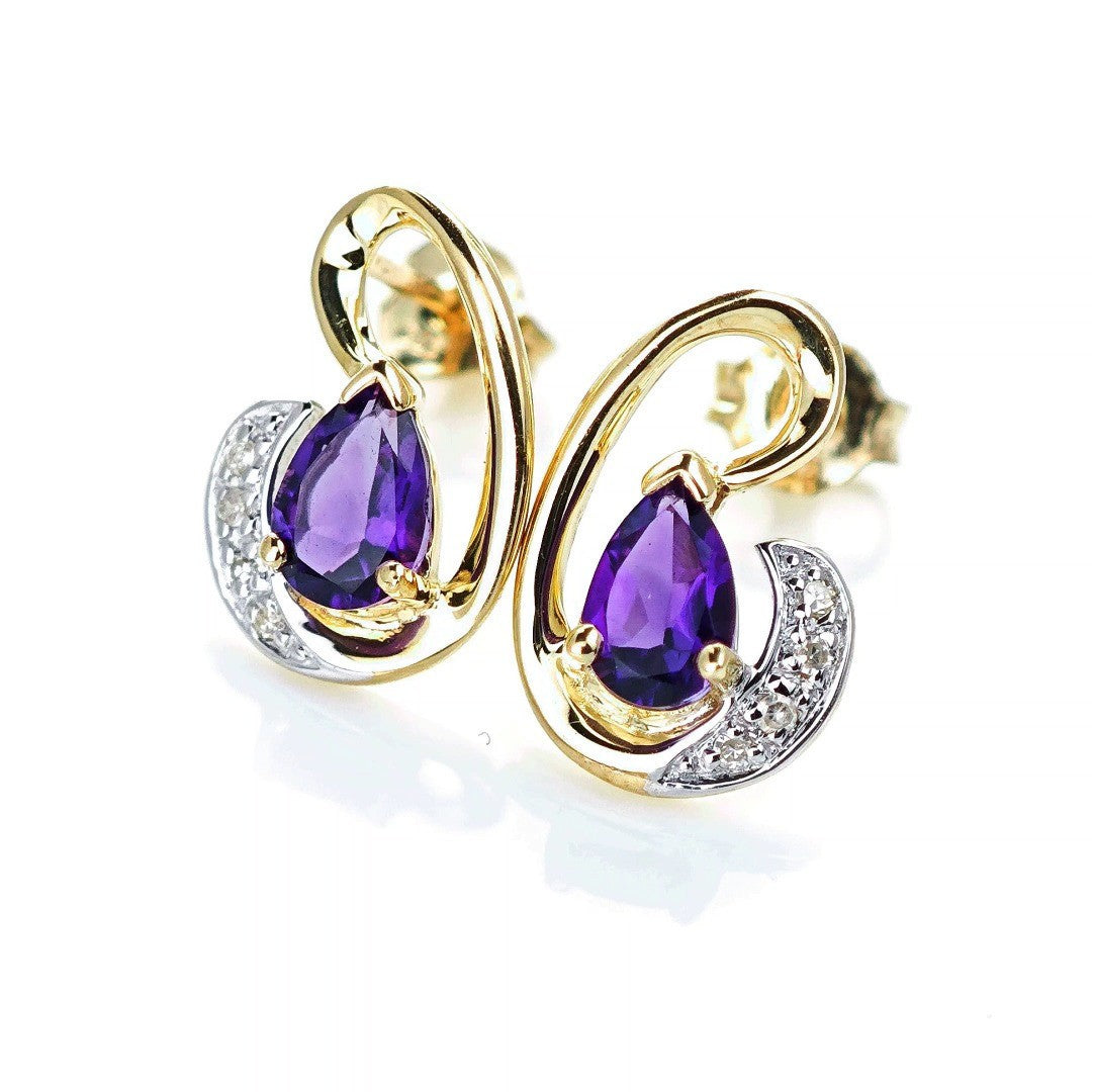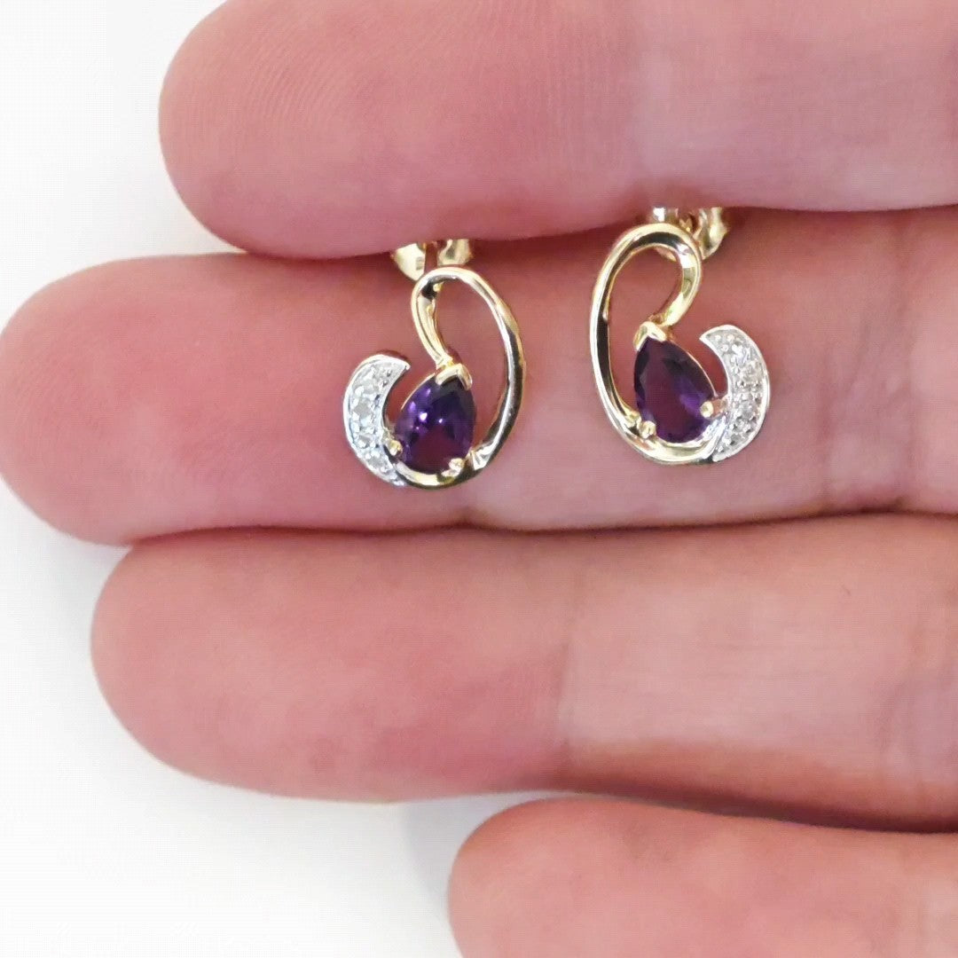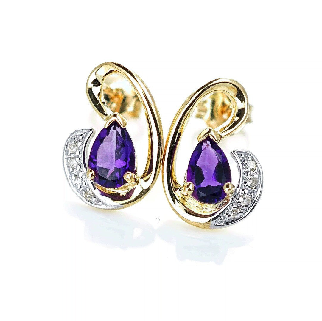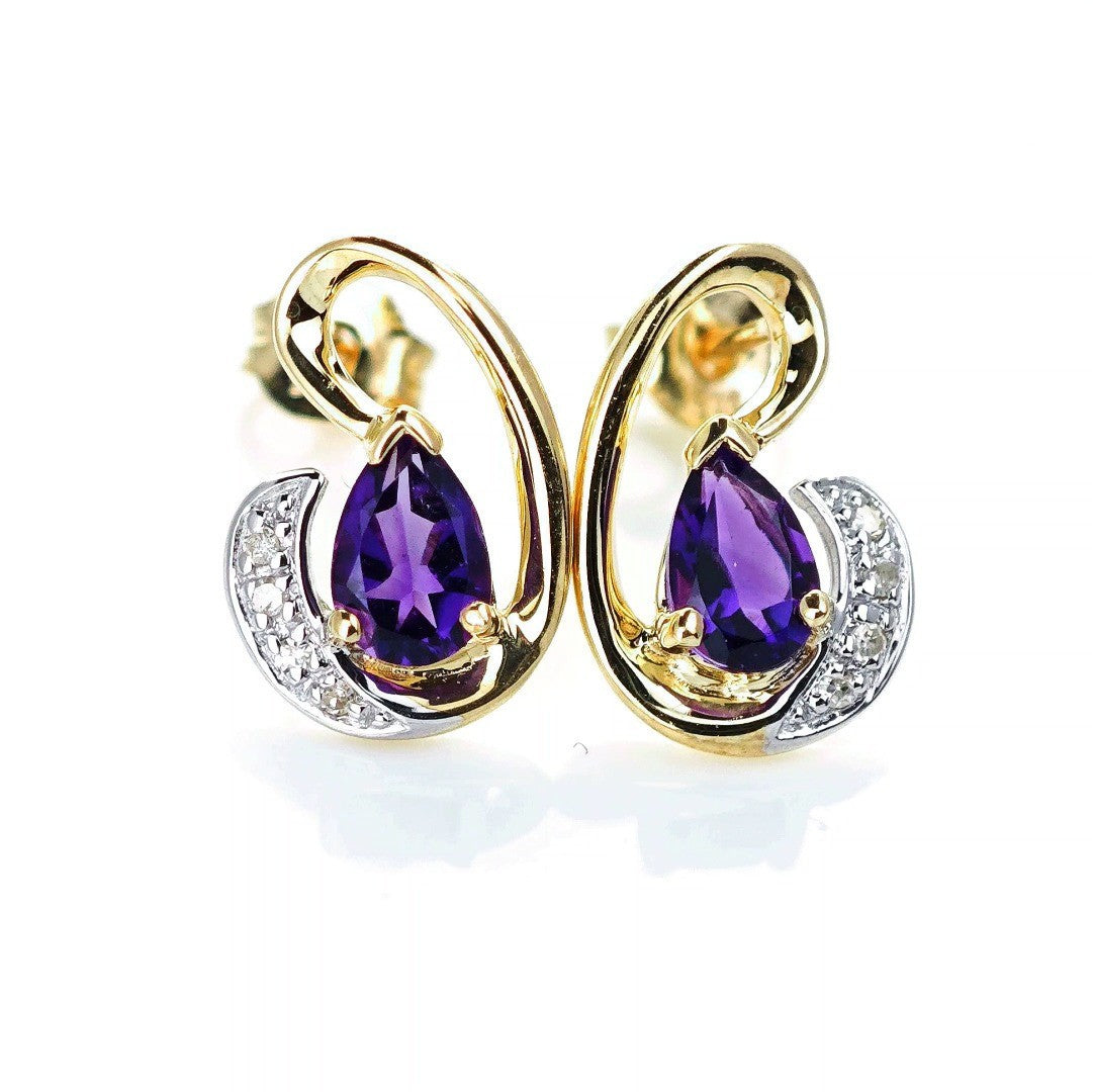 9ct Amethyst Diamond Earrings Gold Studs Natural Purple Gemstones 0.75ct
