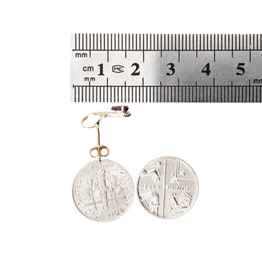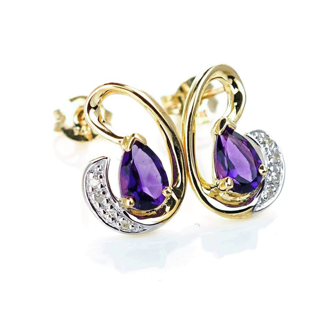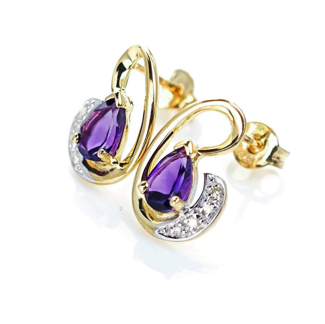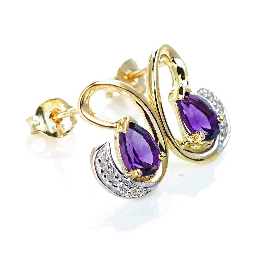 9ct Amethyst Diamond Earrings Gold Studs Natural Purple Gemstones 0.75ct