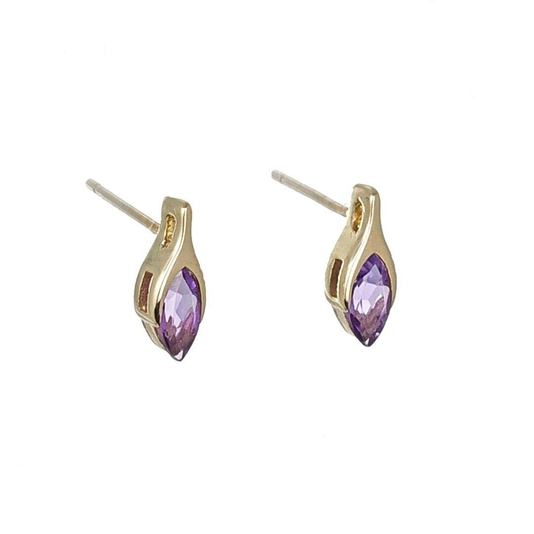9ct Amethyst Earrings Yellow Gold Studs Minimalist Marquise Handmade UK Design