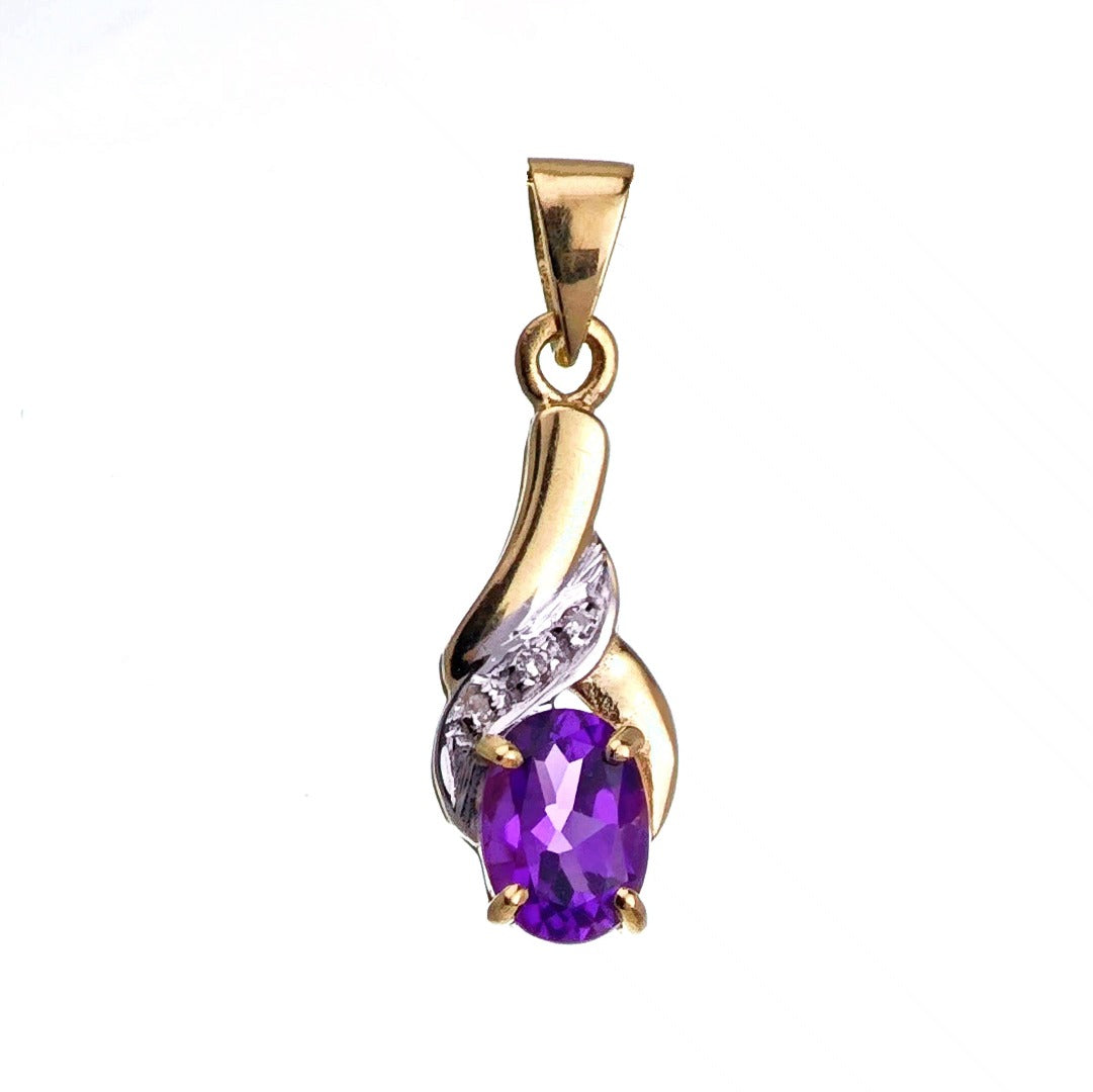 This elegant Amethyst and Diamond Necklace is handmade. It features a natural Purple African Amethyst gemstone. The amethyst stone is set in 9ct yellow gold and the area under the tiny diamonds has a layer of rhodium to show off their natural sparkle.