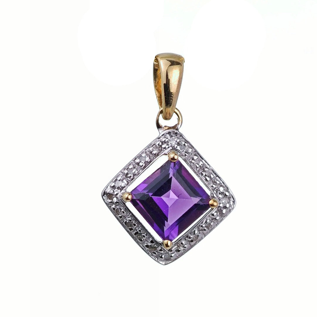 9ct Amethyst Necklace Yellow Gold 2ct Purple Cushion Natural Gemstone