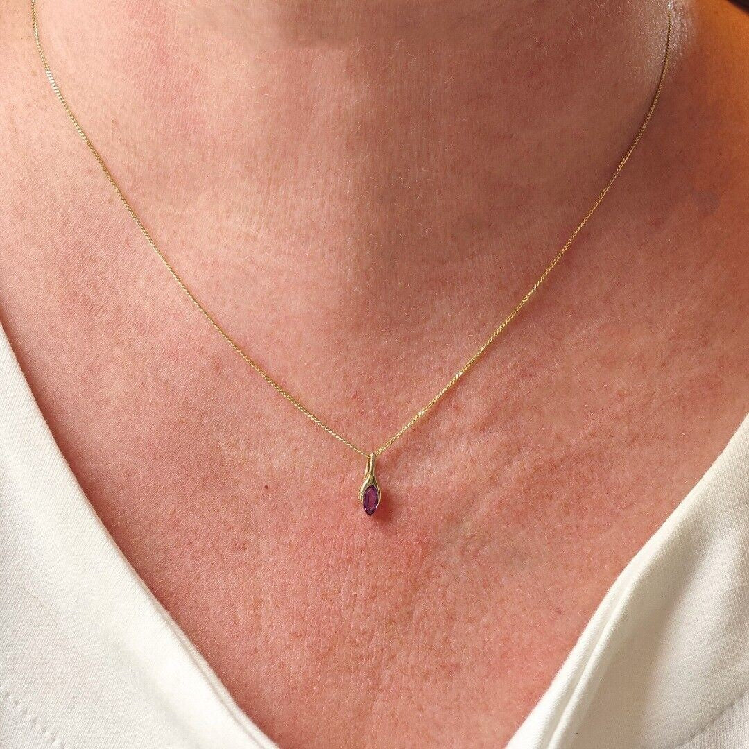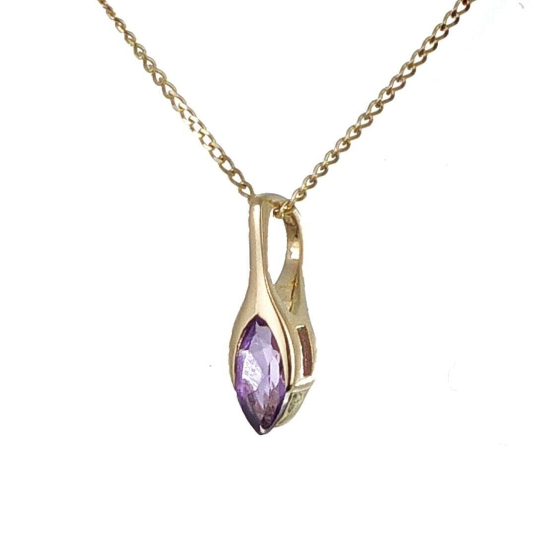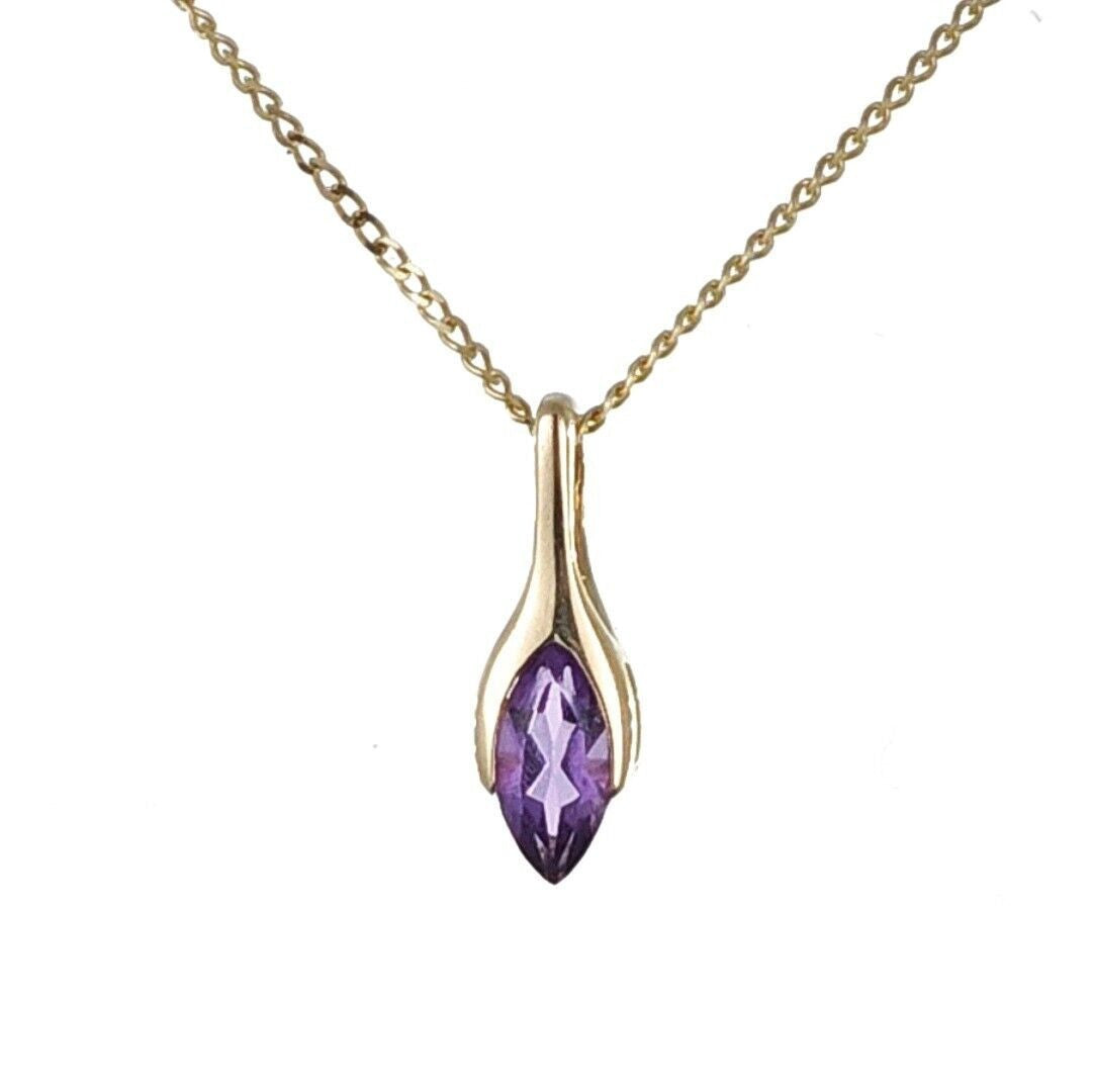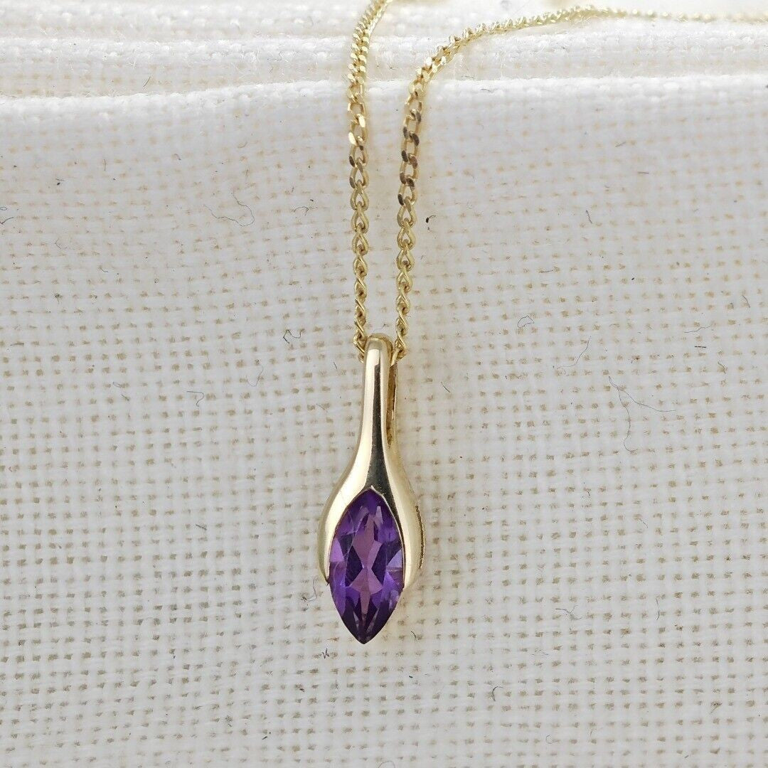 9ct Amethyst Pendant Yellow Gold Minimalist Marquise