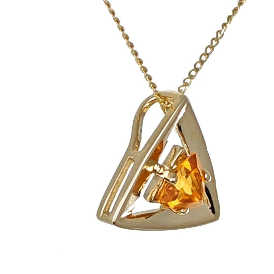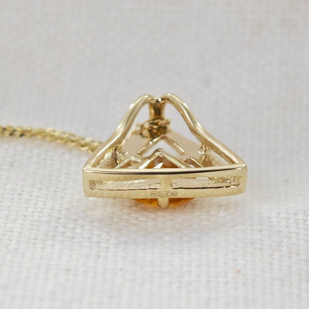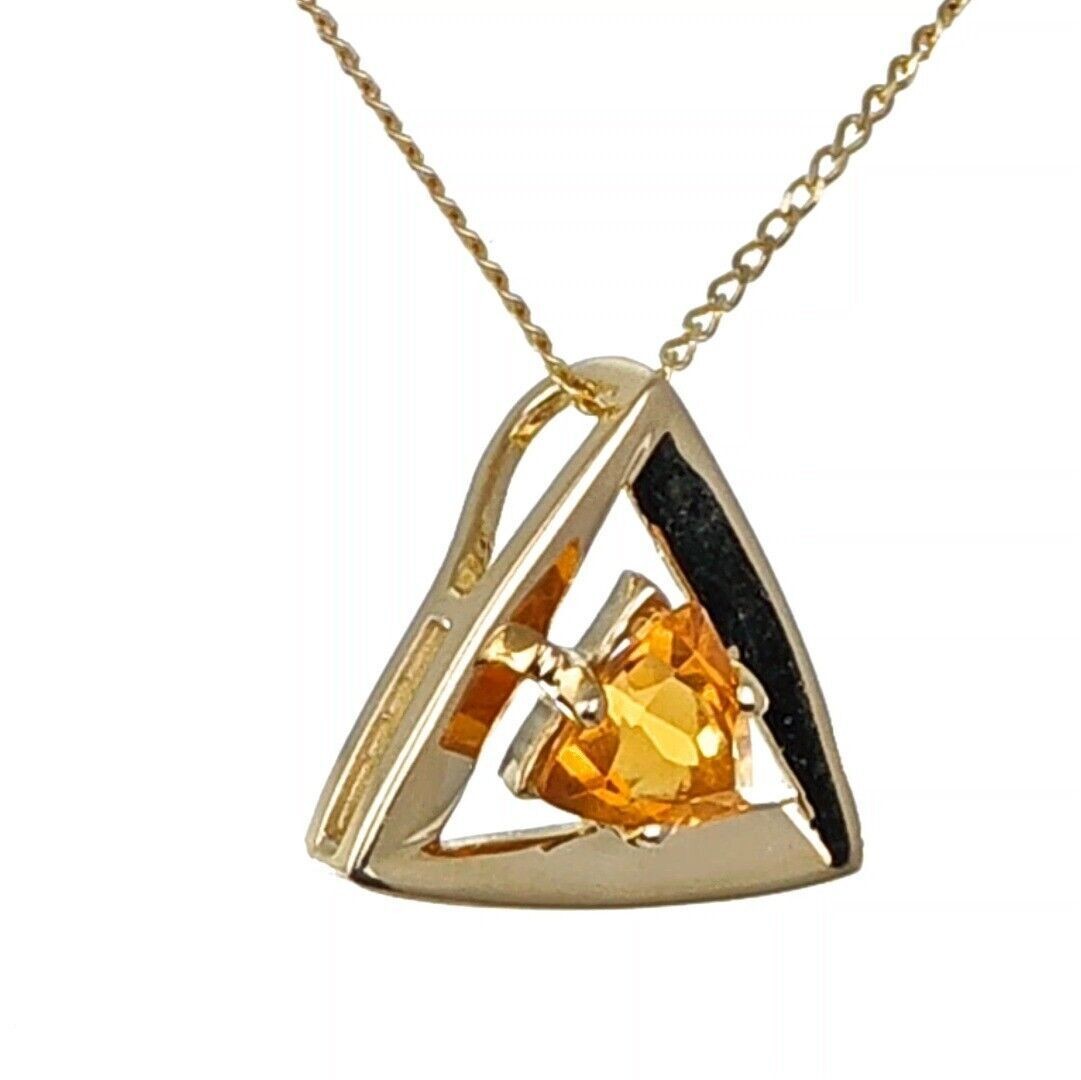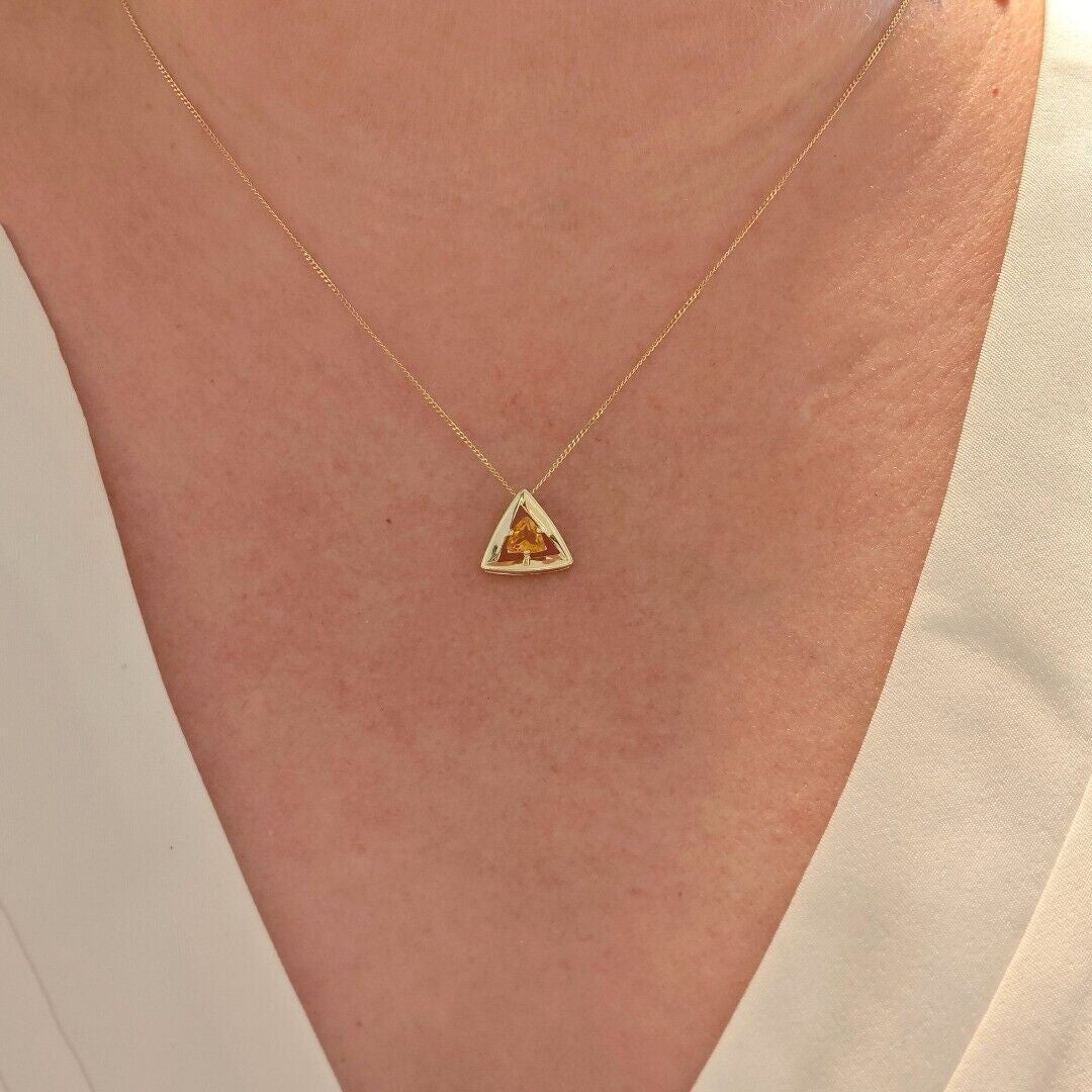 9ct Citrine Pendant Yellow Gold Hallmarked 375 Trillion UK Design Handmade