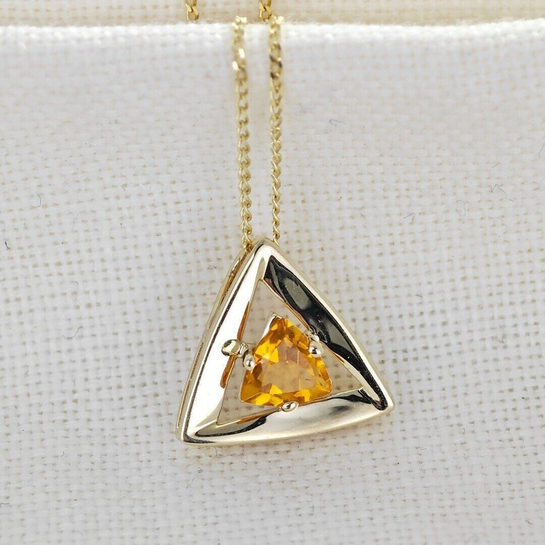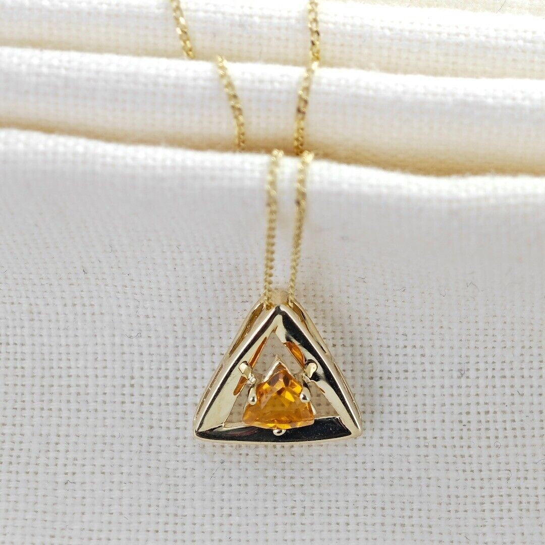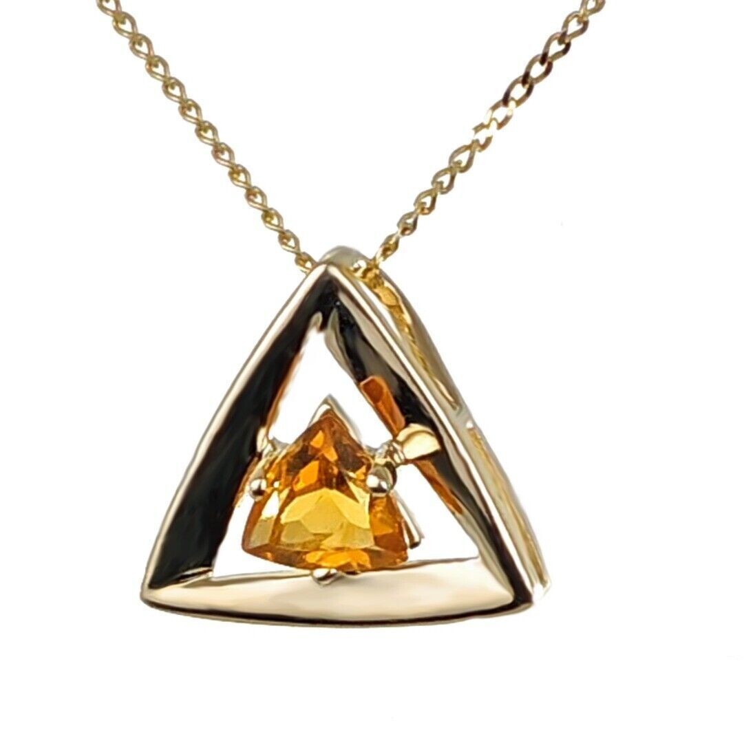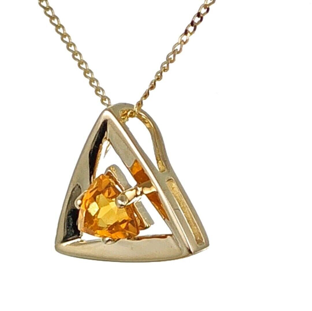 9ct Citrine Pendant Yellow Gold Hallmarked 375 Trillion UK Design Handmade