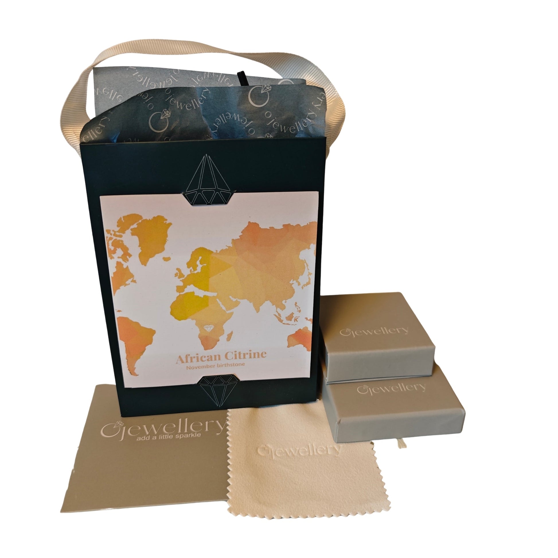 Supplied in an Ojewellery presentation box, within a ribbon handled gift bag, complete with product information authenticity card with space for a gift message and a jewellery cleaning cloth to keep your jewellery in ready to wear condition.