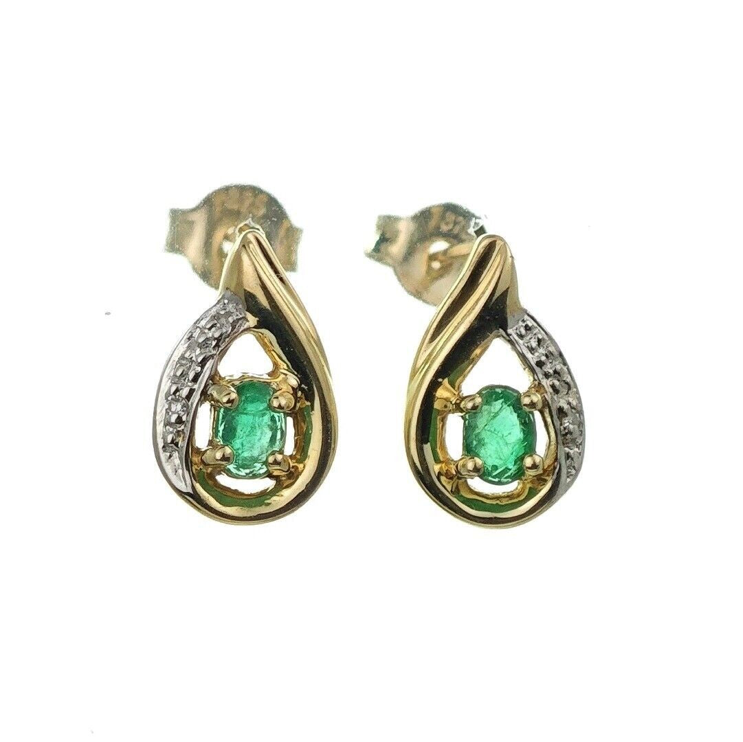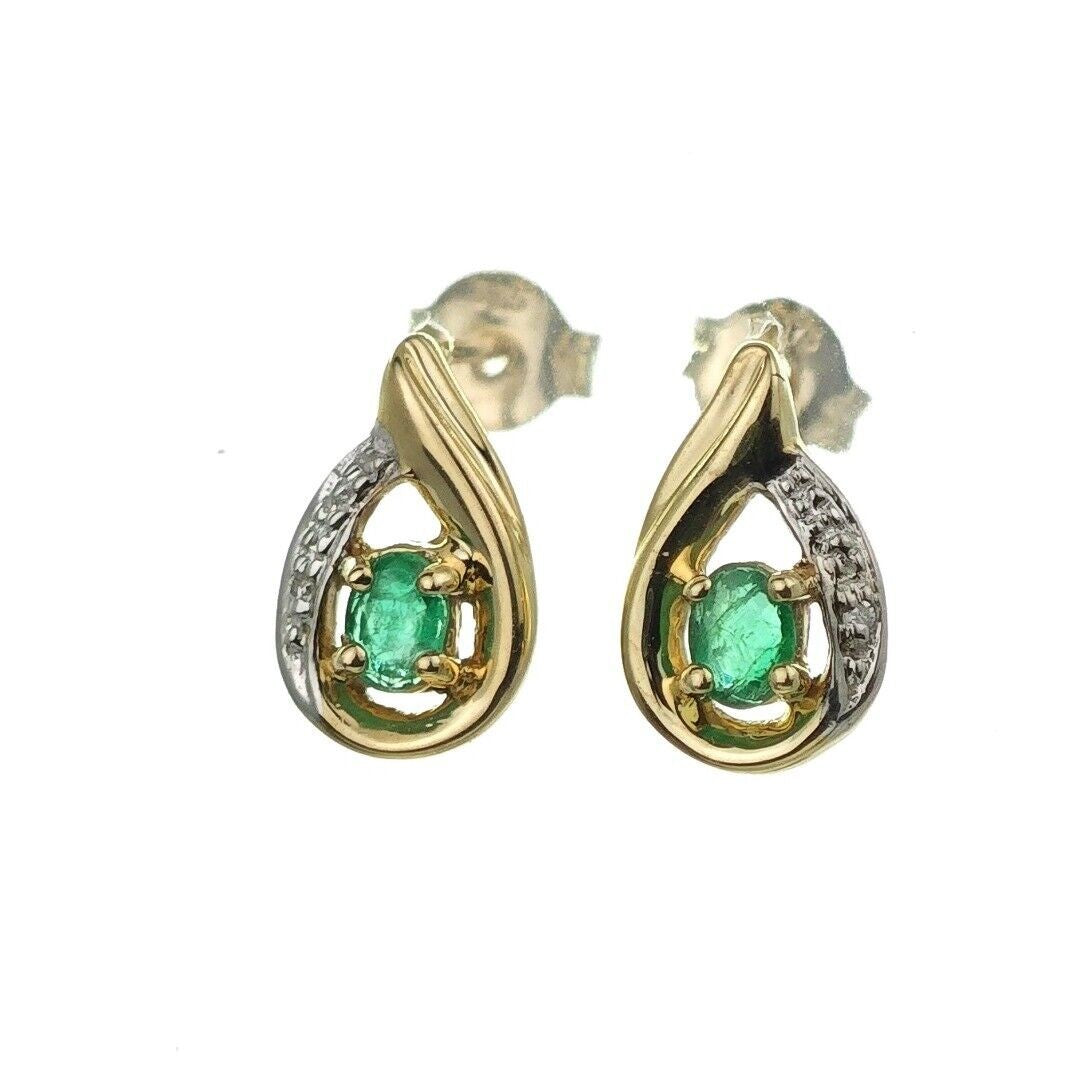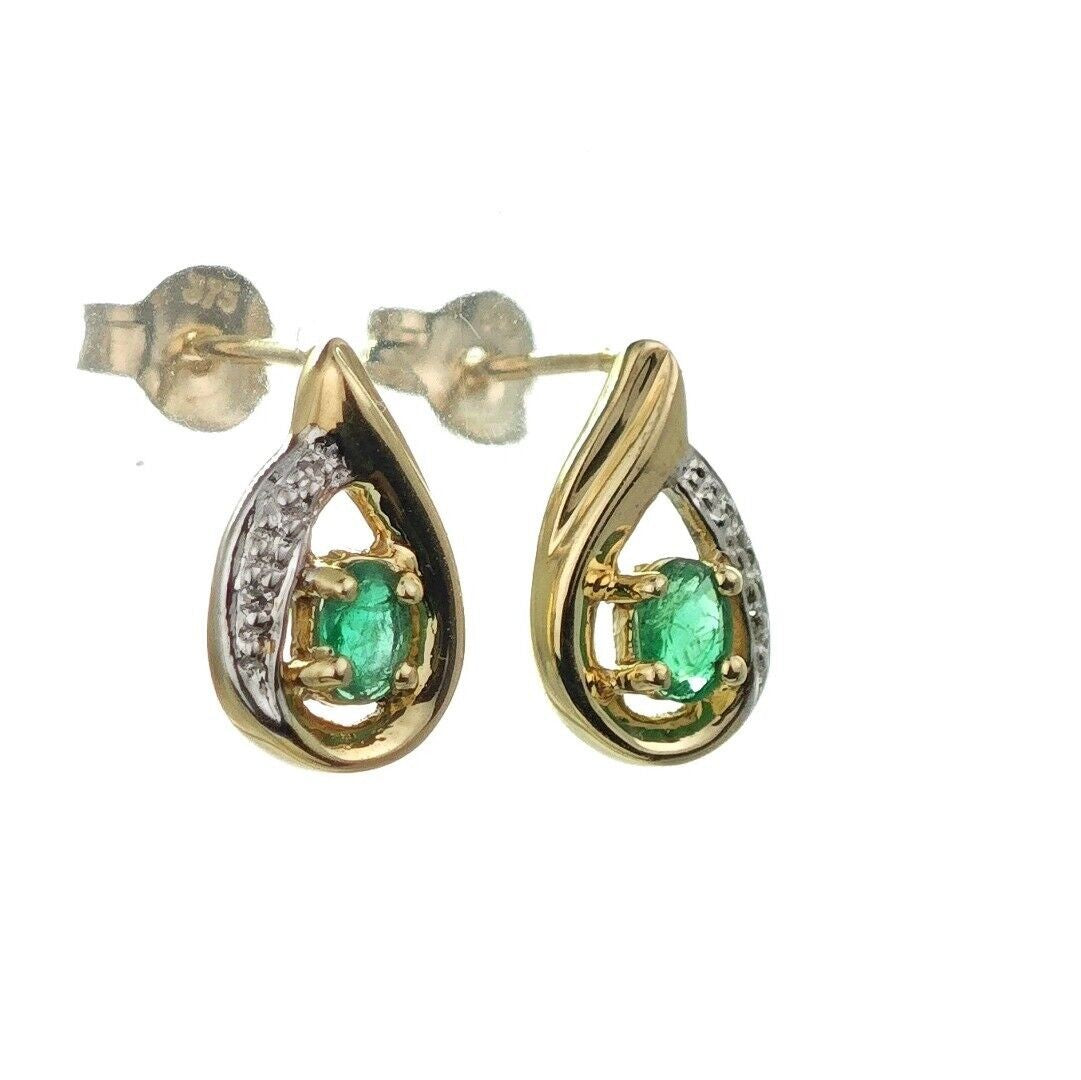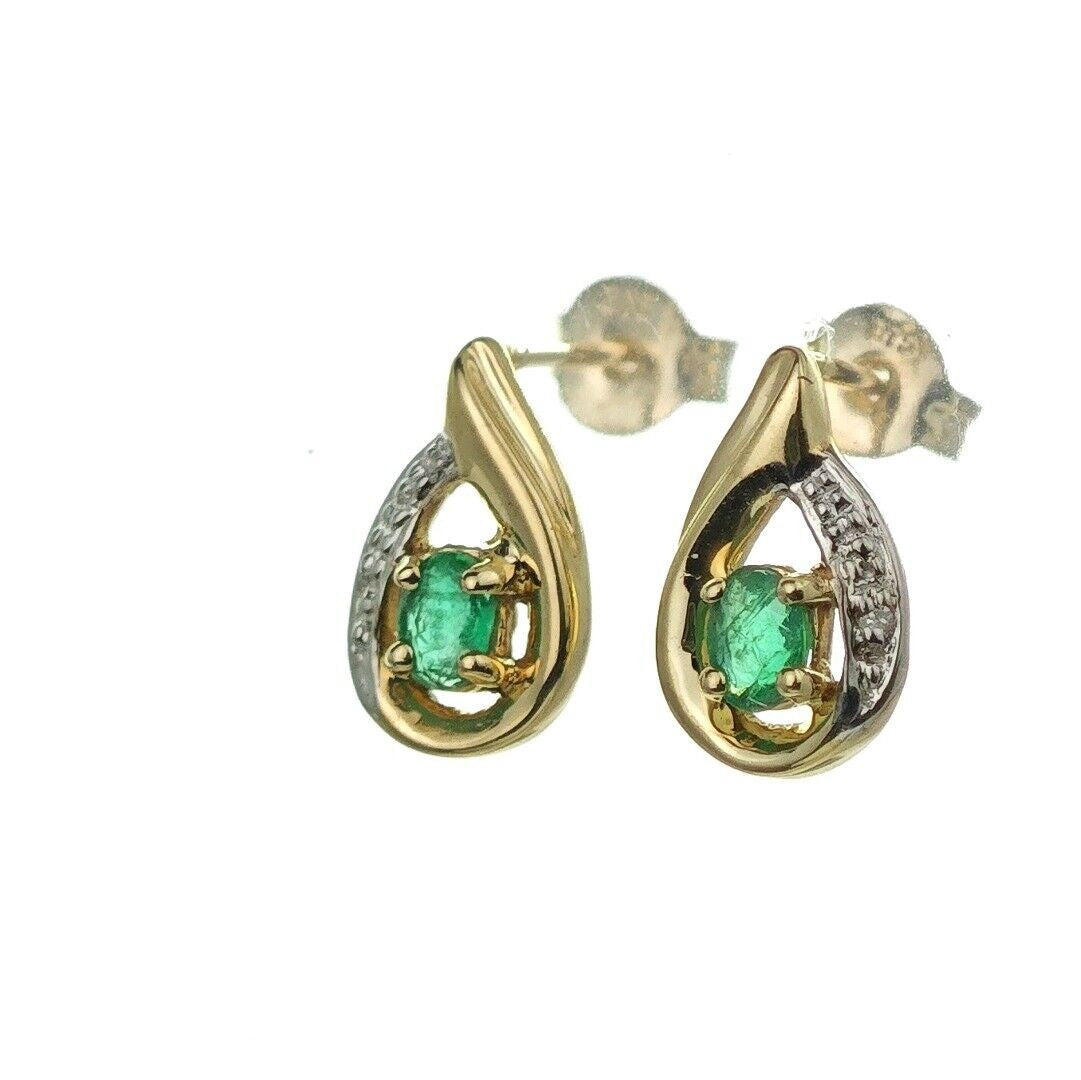 9ct Emerald Earrings Gold Diamond Studs Natural Green Gemstones 0.25ct