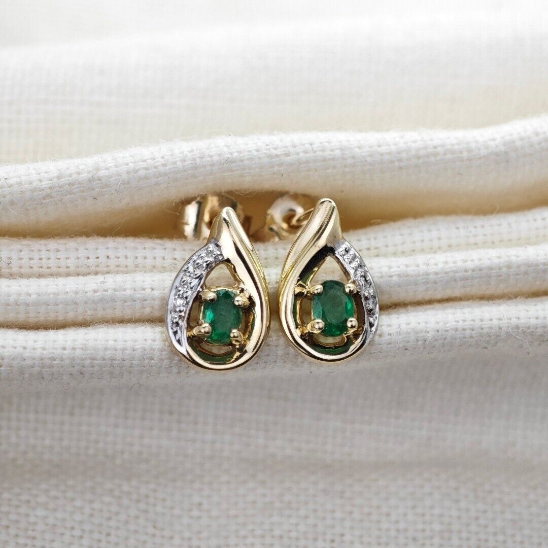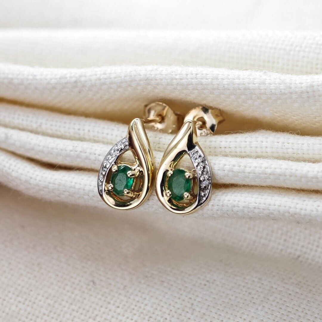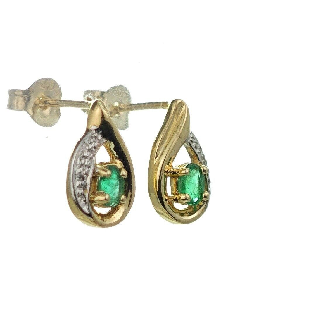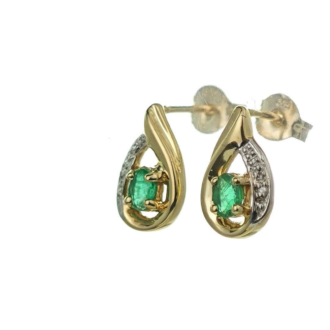 9ct Emerald Earrings Gold Diamond Studs Natural Green Gemstones 0.25ct