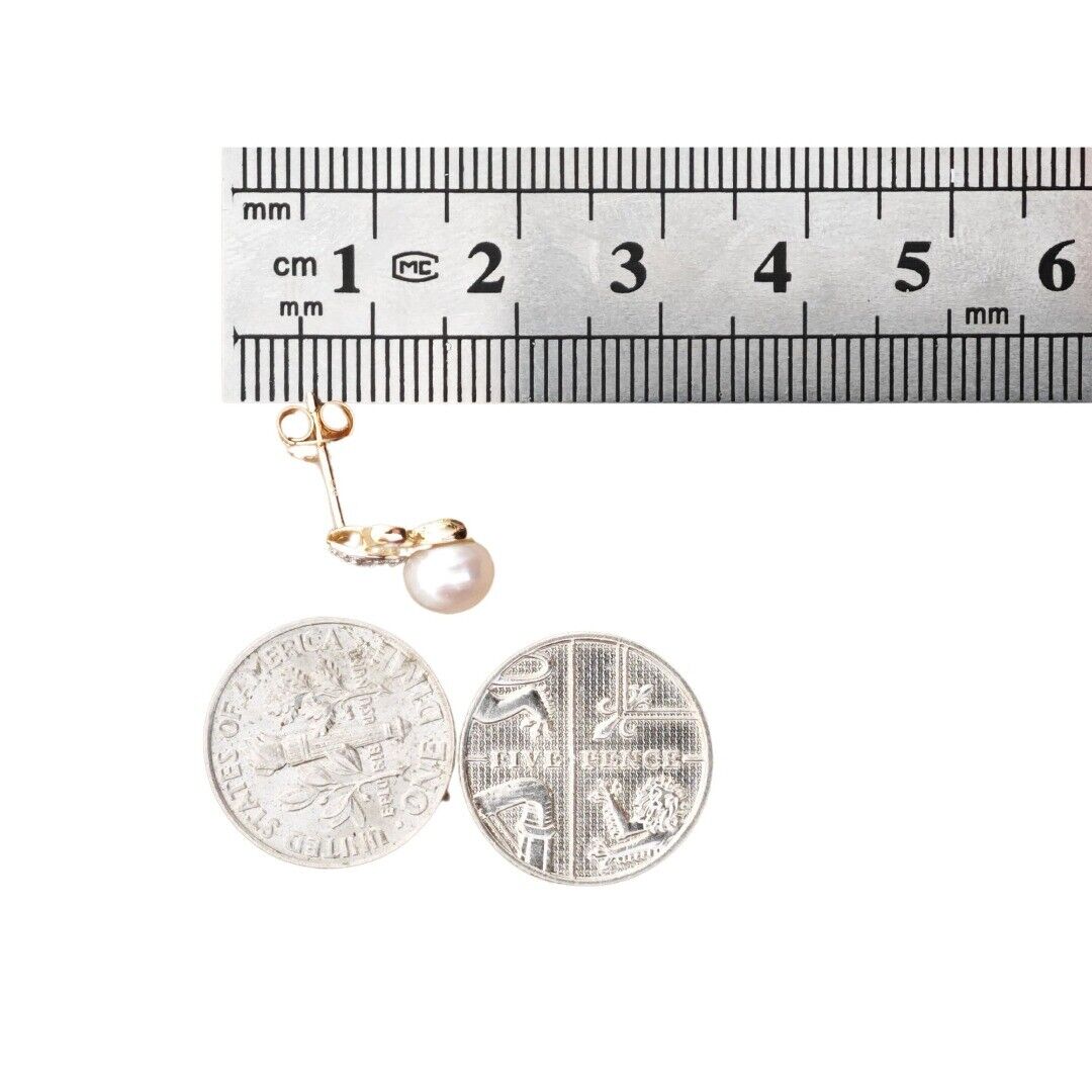 9ct Fresh Water Pearl Diamond Earrings Gold Studs Natural 6mm Gemstones