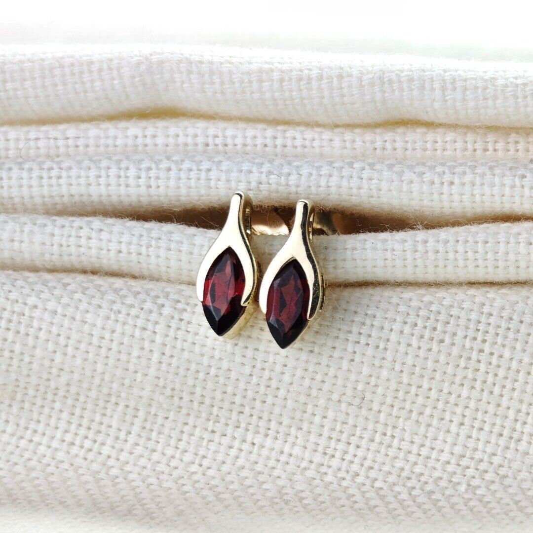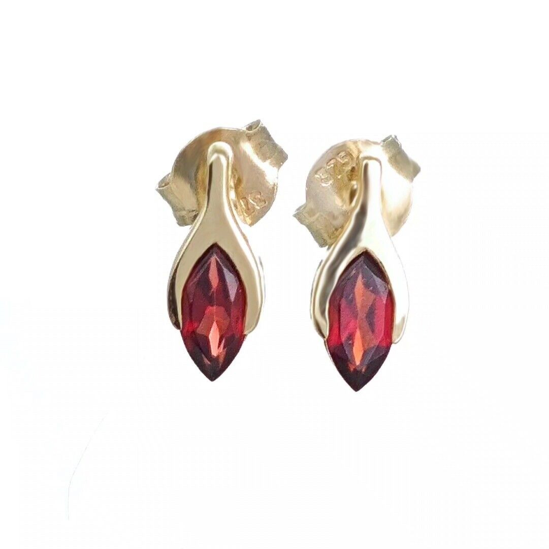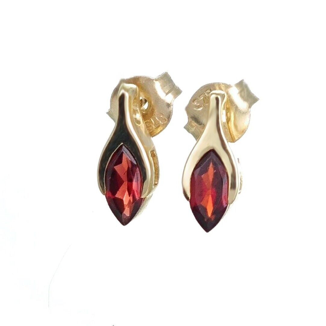 9ct Garnet Earrings Yellow Gold Studs SMALL Minimalist Marquise