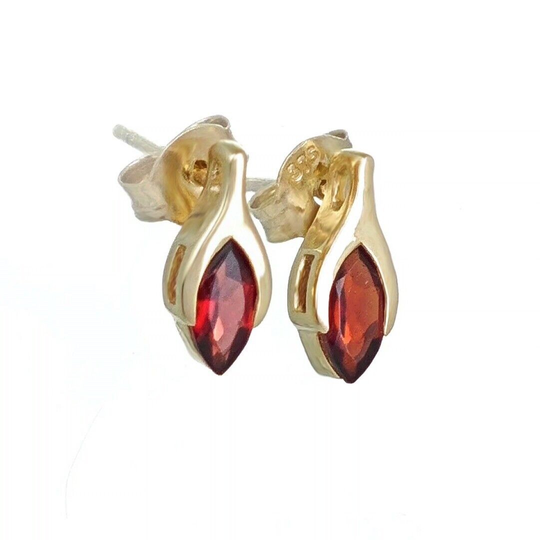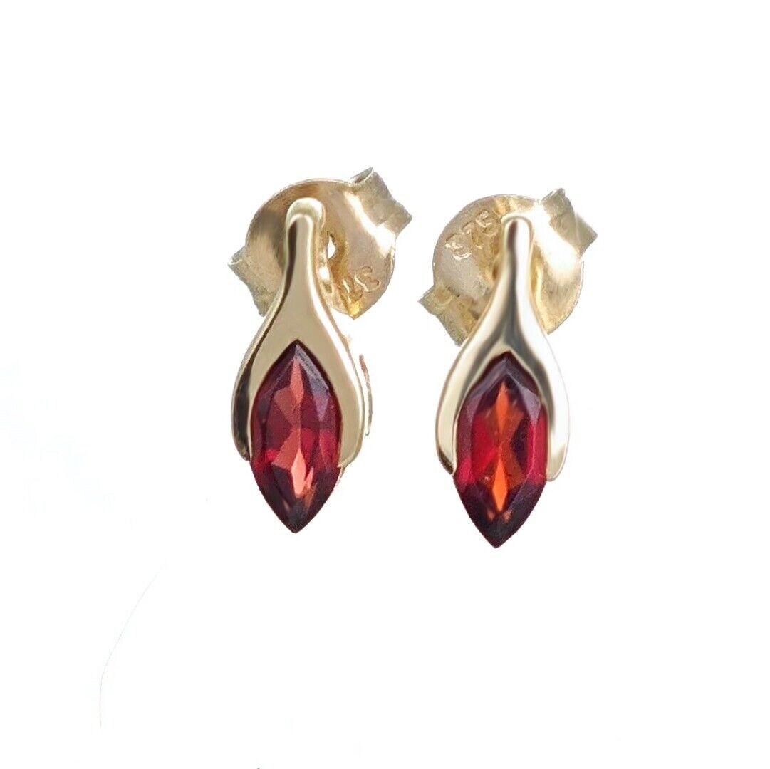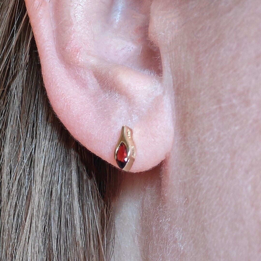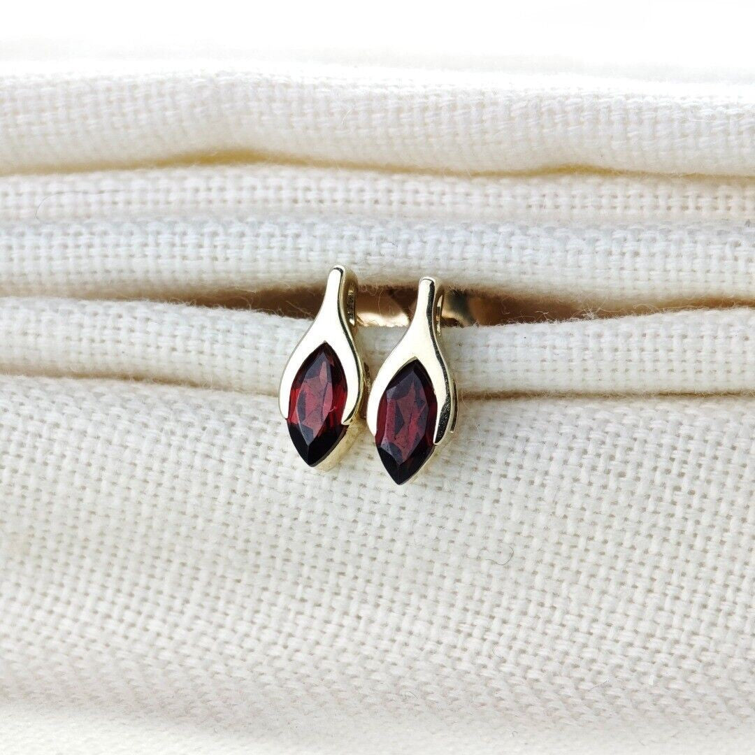 9ct Garnet Earrings Yellow Gold Studs SMALL Minimalist Marquise