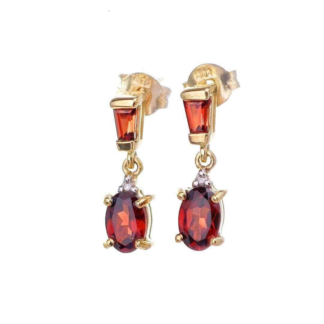 9ct GarnetEarrings Gold Studs Natural Gemstones 1.08ct
