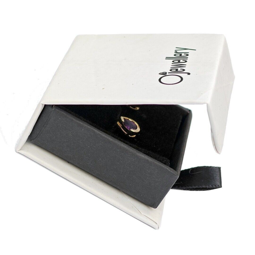 These elegant African purple amethyst pear stud earrings are designed in the UK and feature natural African purple amethyst gemstones. The stones are set in a raised rubover setting made of 9ct yellow gold to allow light to the back of the stone and show off its natural sparkle. The stones measure 6 x 4mm (0.65 ct).