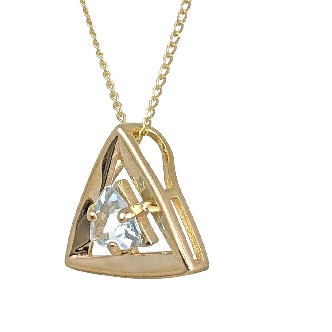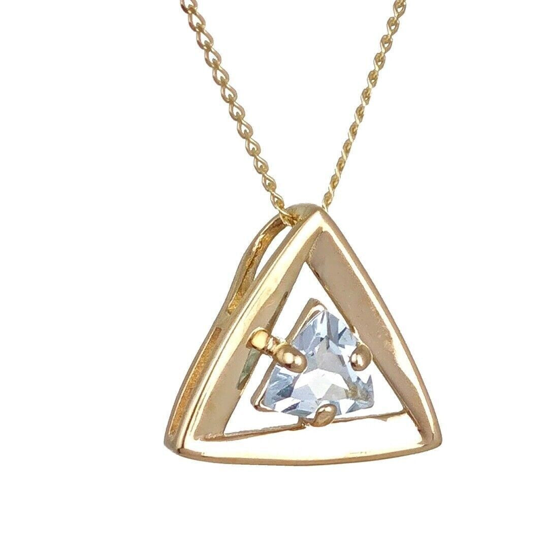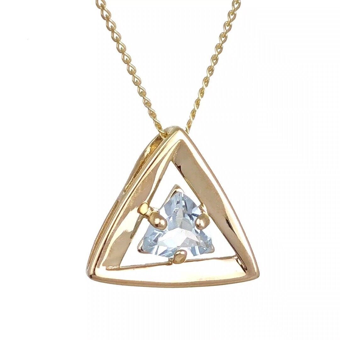 9ct Gold Aquamarine Necklace Natural Blue Trillion Gemstone