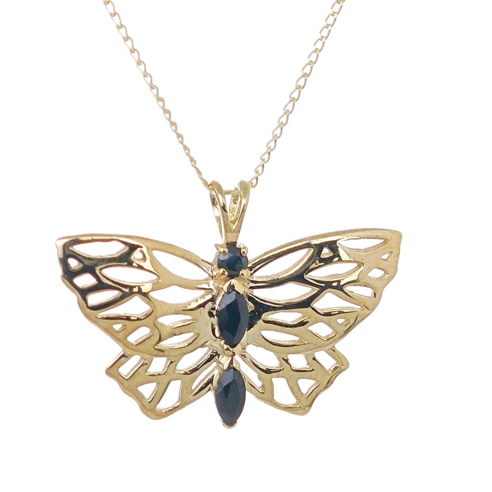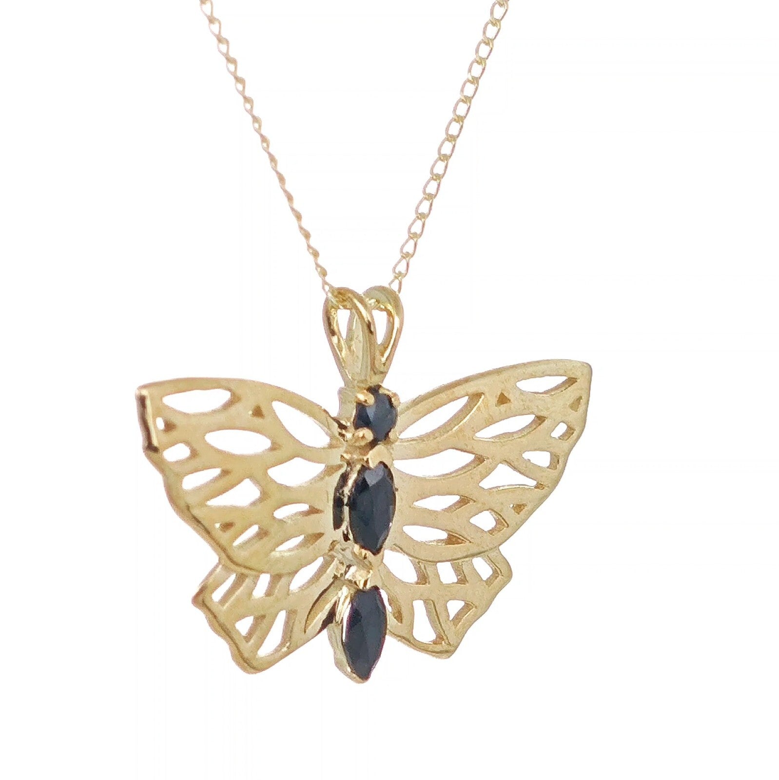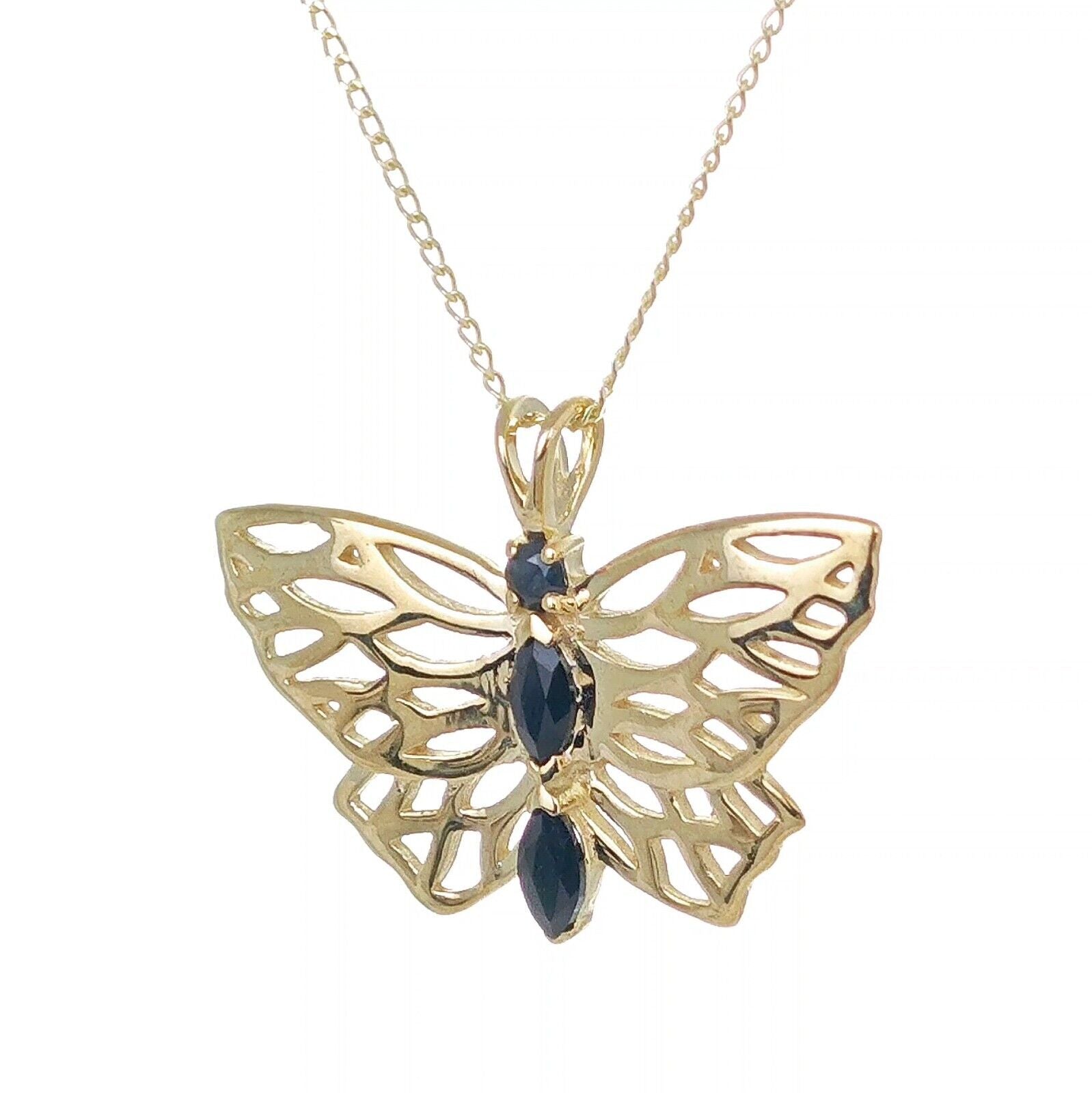 9ct Gold Butterfly Necklace with Marquise Sapphires Hallmarked