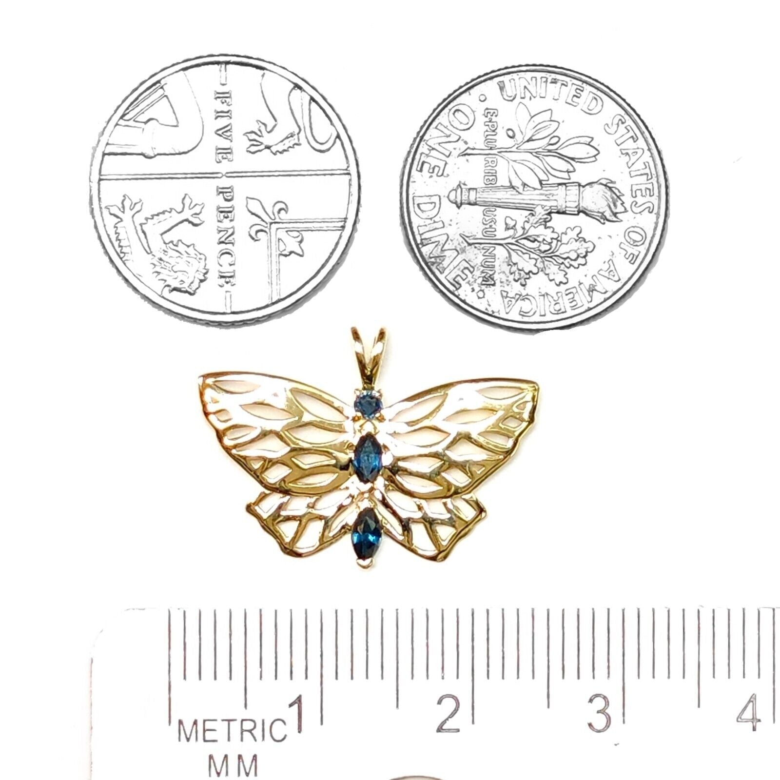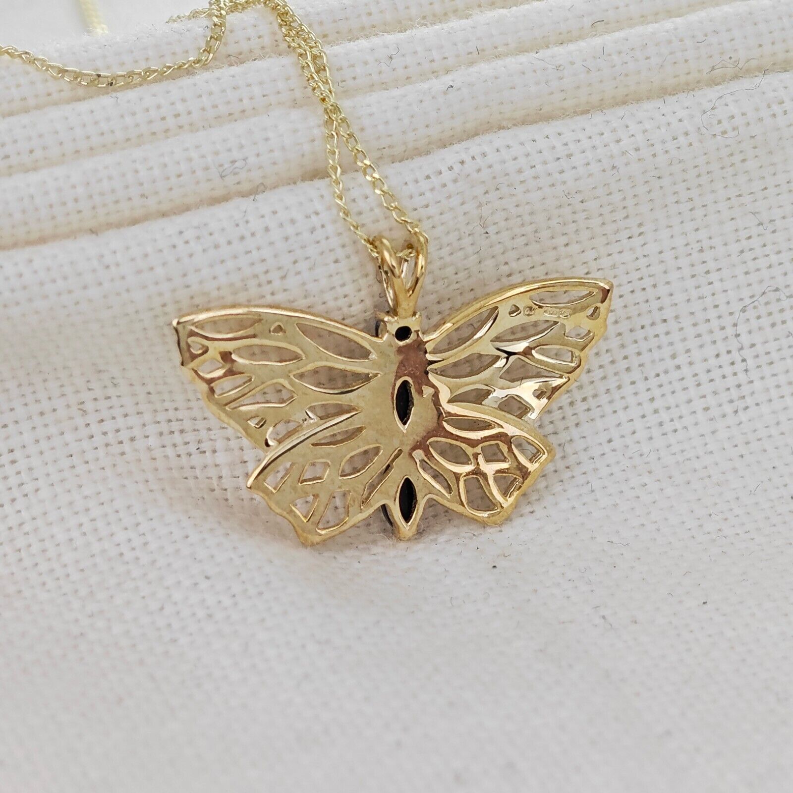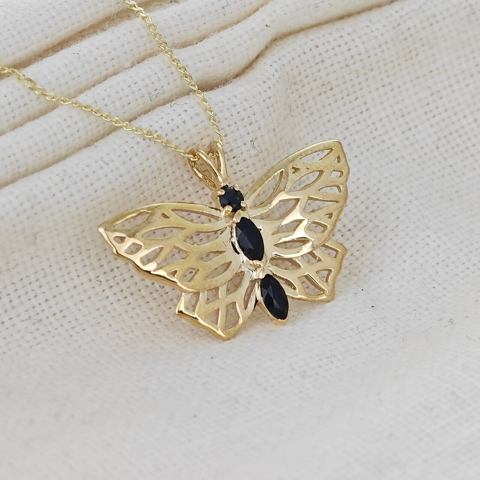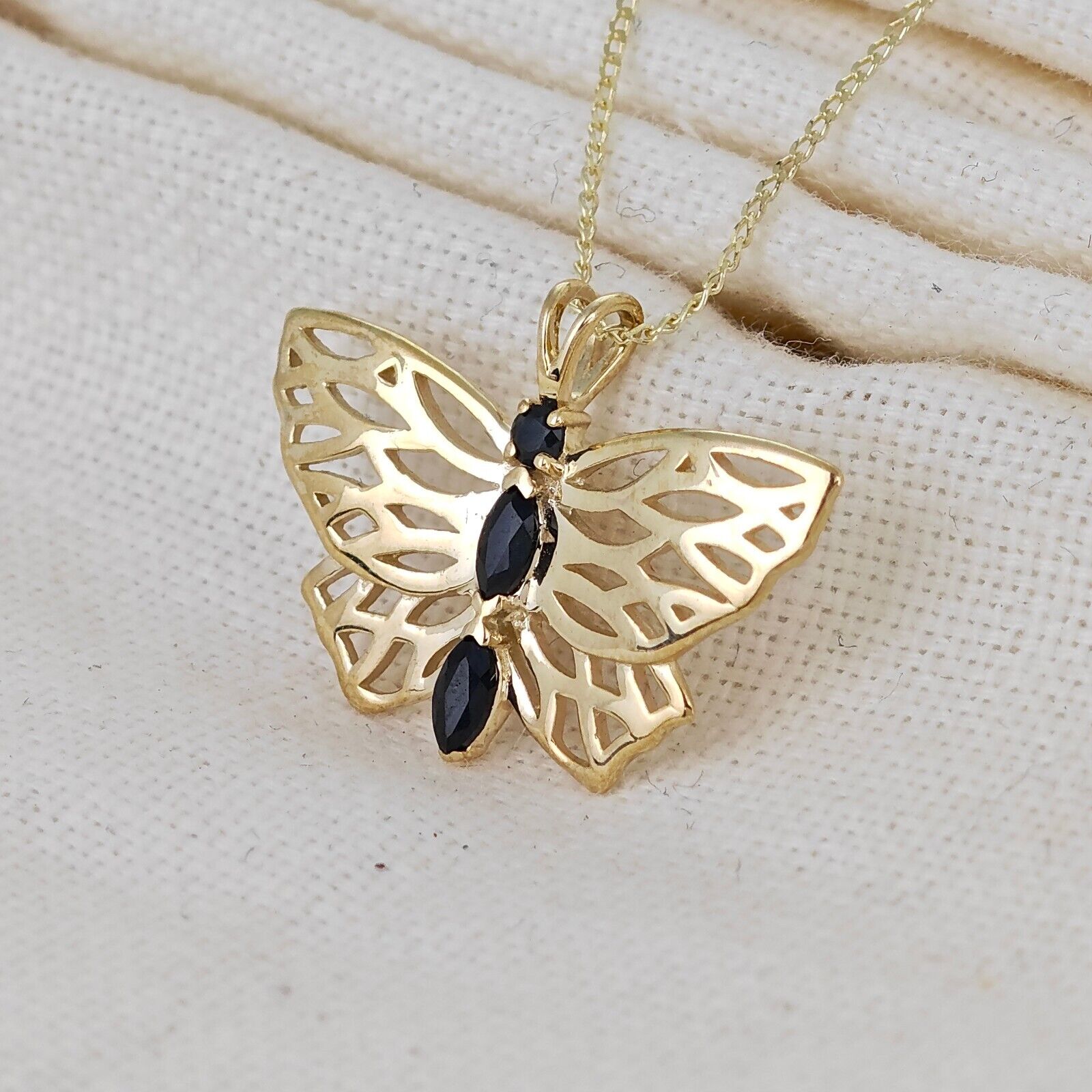 9ct Gold Butterfly Necklace with Marquise Sapphires Hallmarked