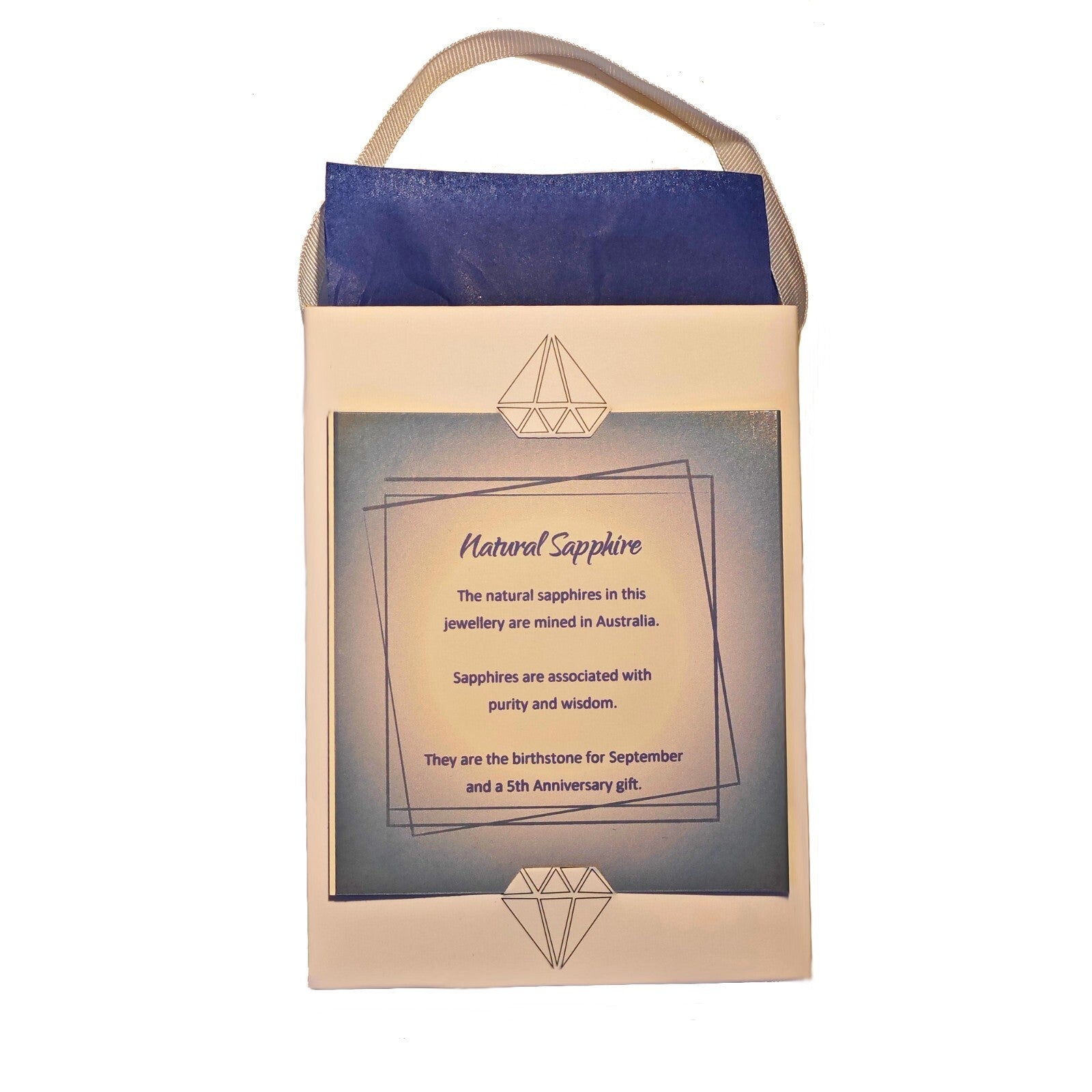 Sapphires are associated with purity and wisdom. They are the birthstone for September. Whilst a trilogy of stones is often associated with reminding ourselves to learn from our past live in our present and look forwards to our future.
