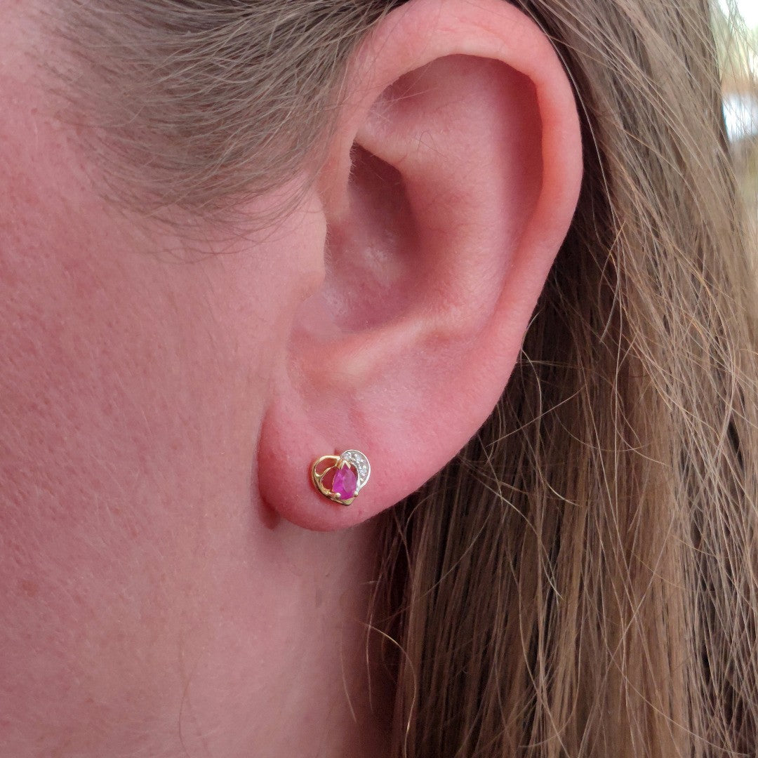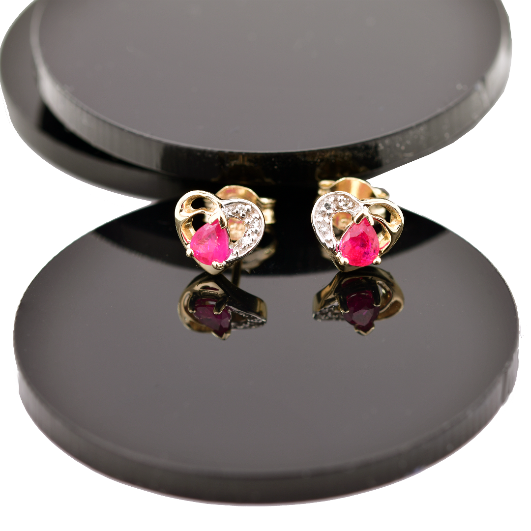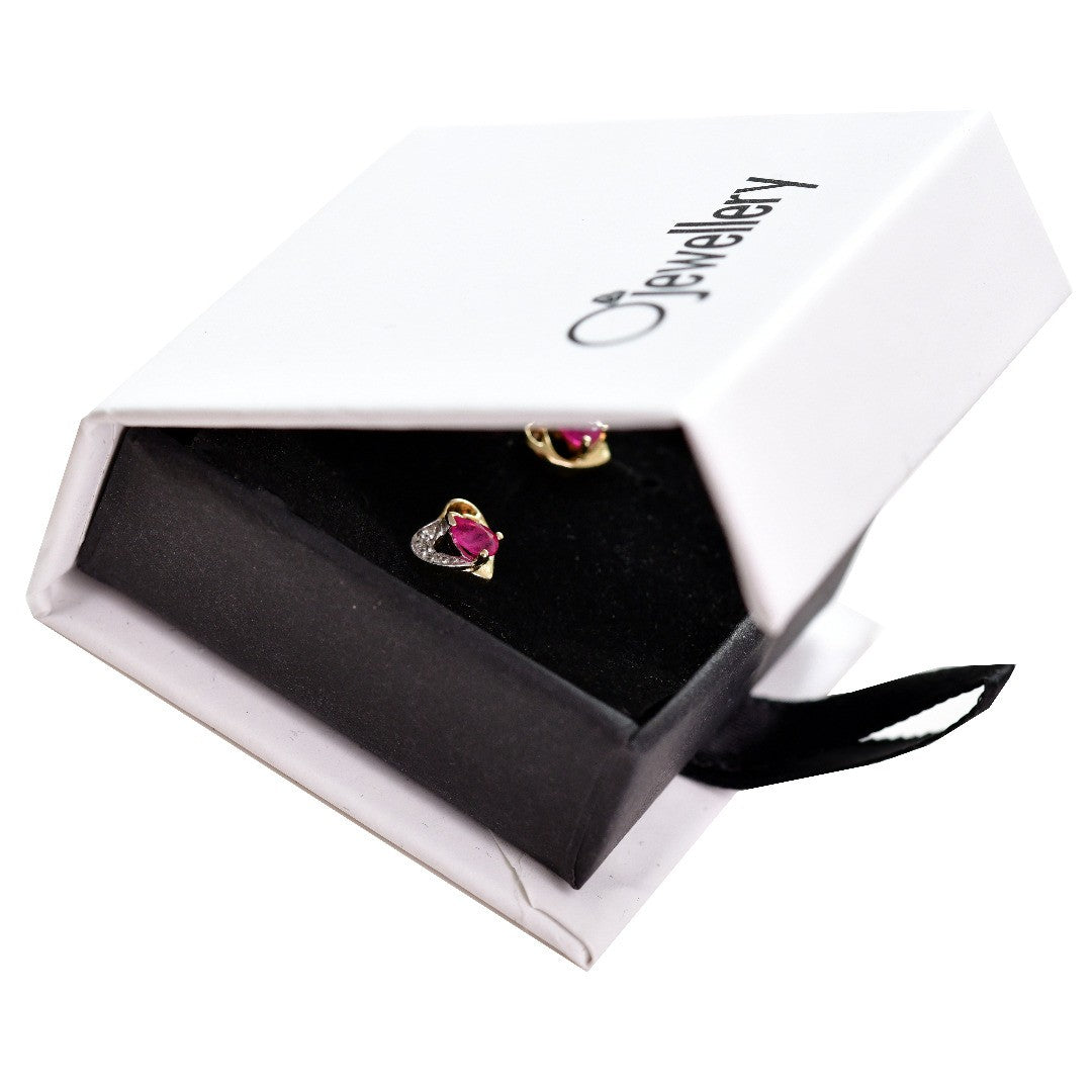 9ct Gold Earrings Diamond Heart Ruby Studs July Birthstone