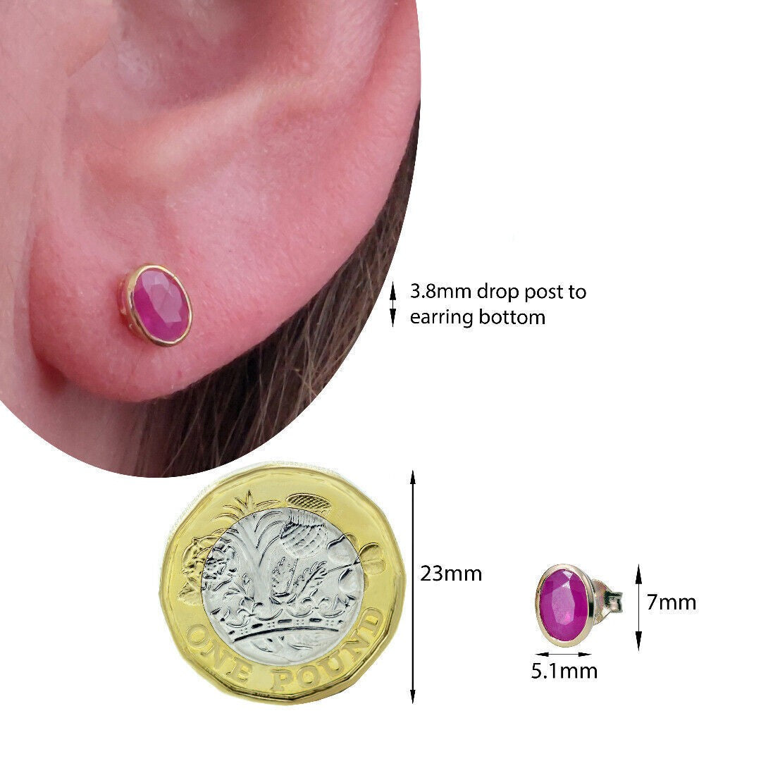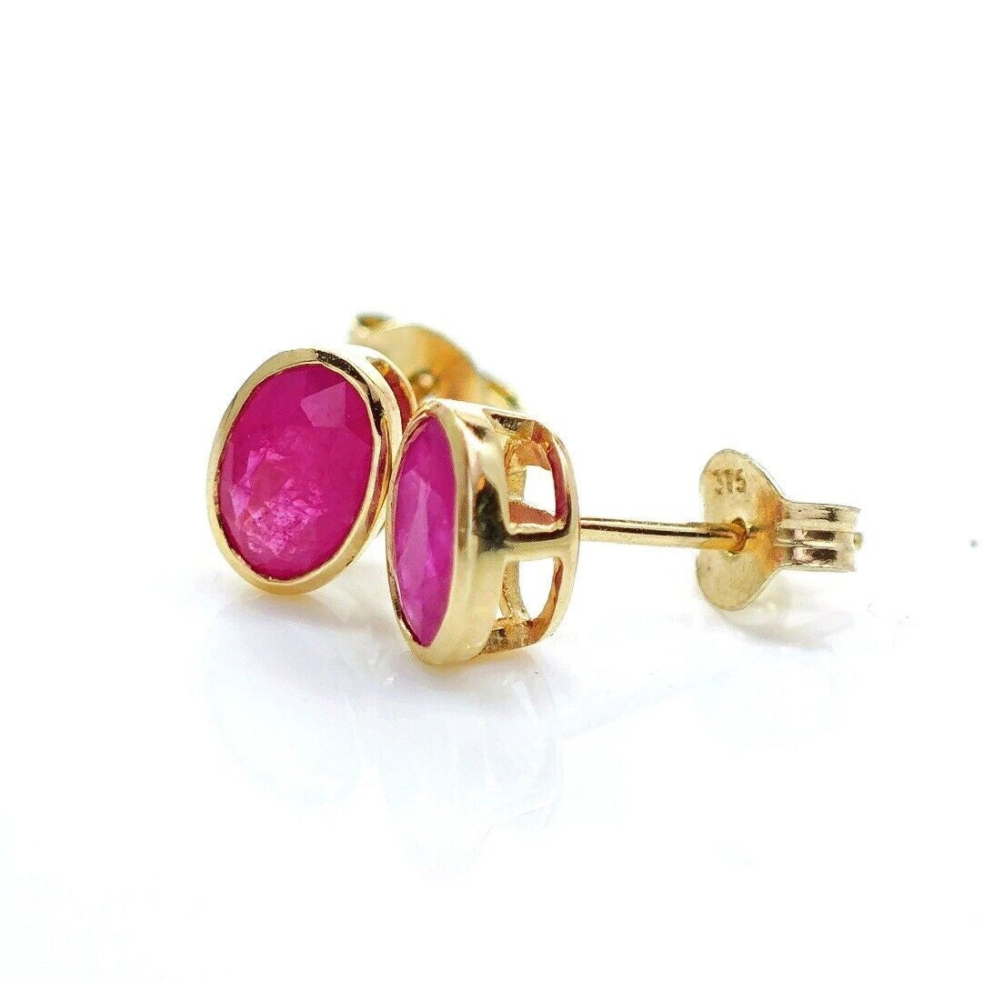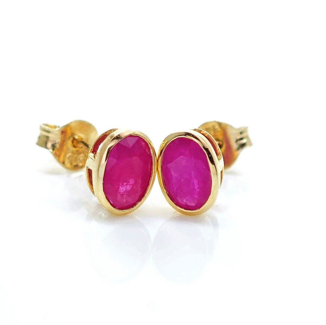 9ct Gold Earrings Stud Ruby Red 1.2ct 6x4 Oval Rubover Setting