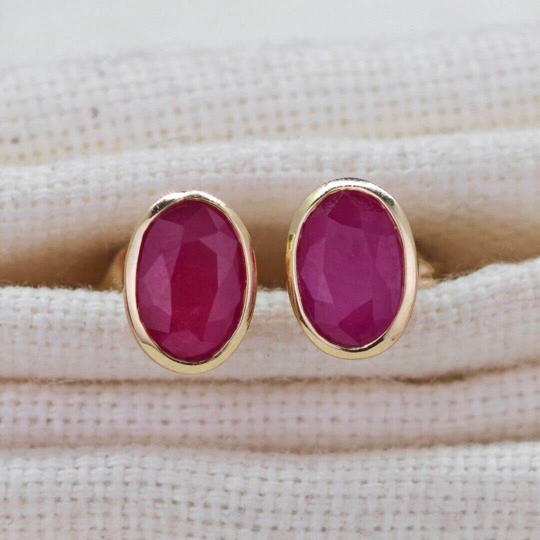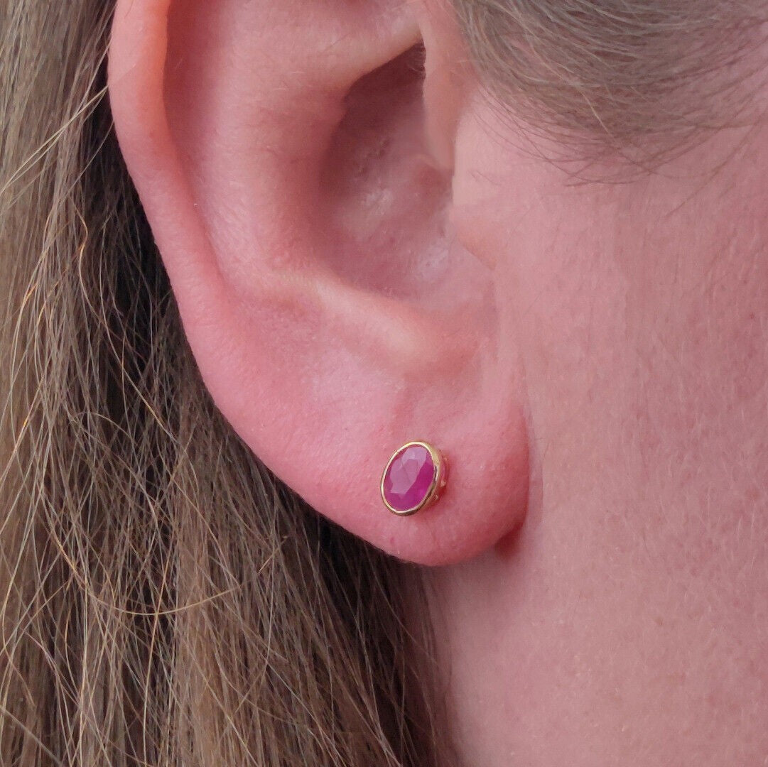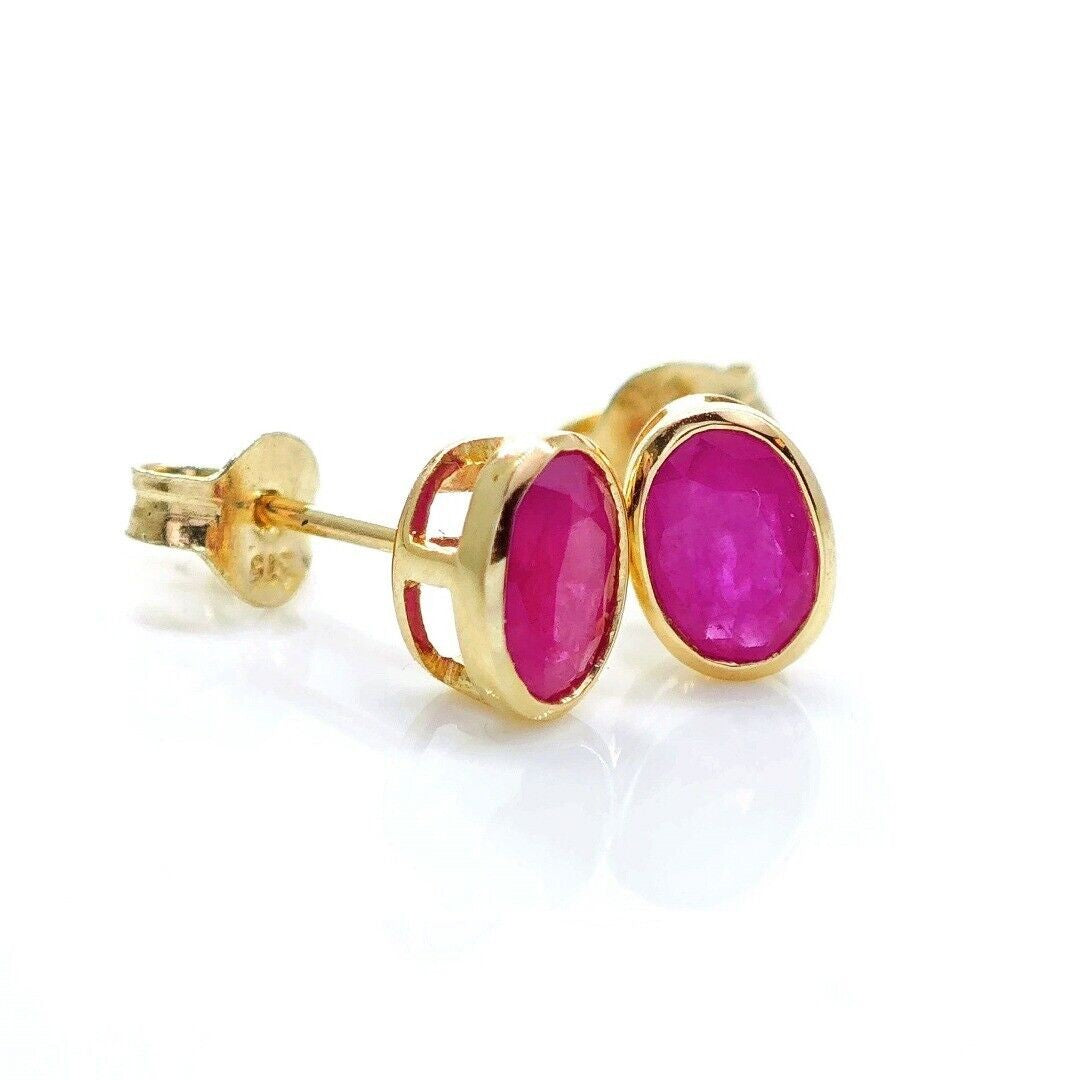 9ct Gold Earrings Stud Ruby Red 1.2ct 6x4 Oval Rubover Setting