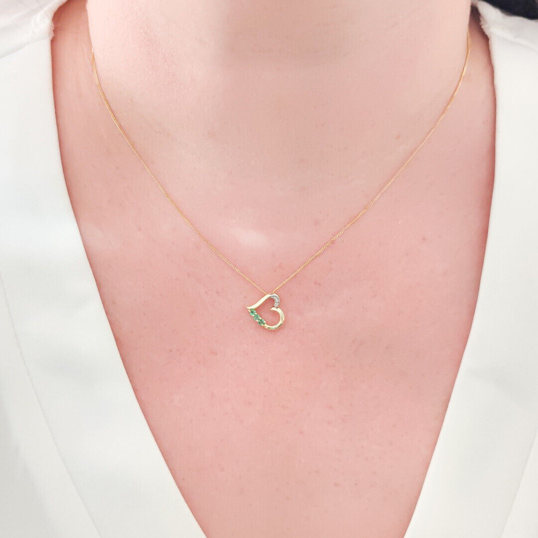 9ct Gold Emerald Necklace Diamond Heart Natural Green Gemstones
