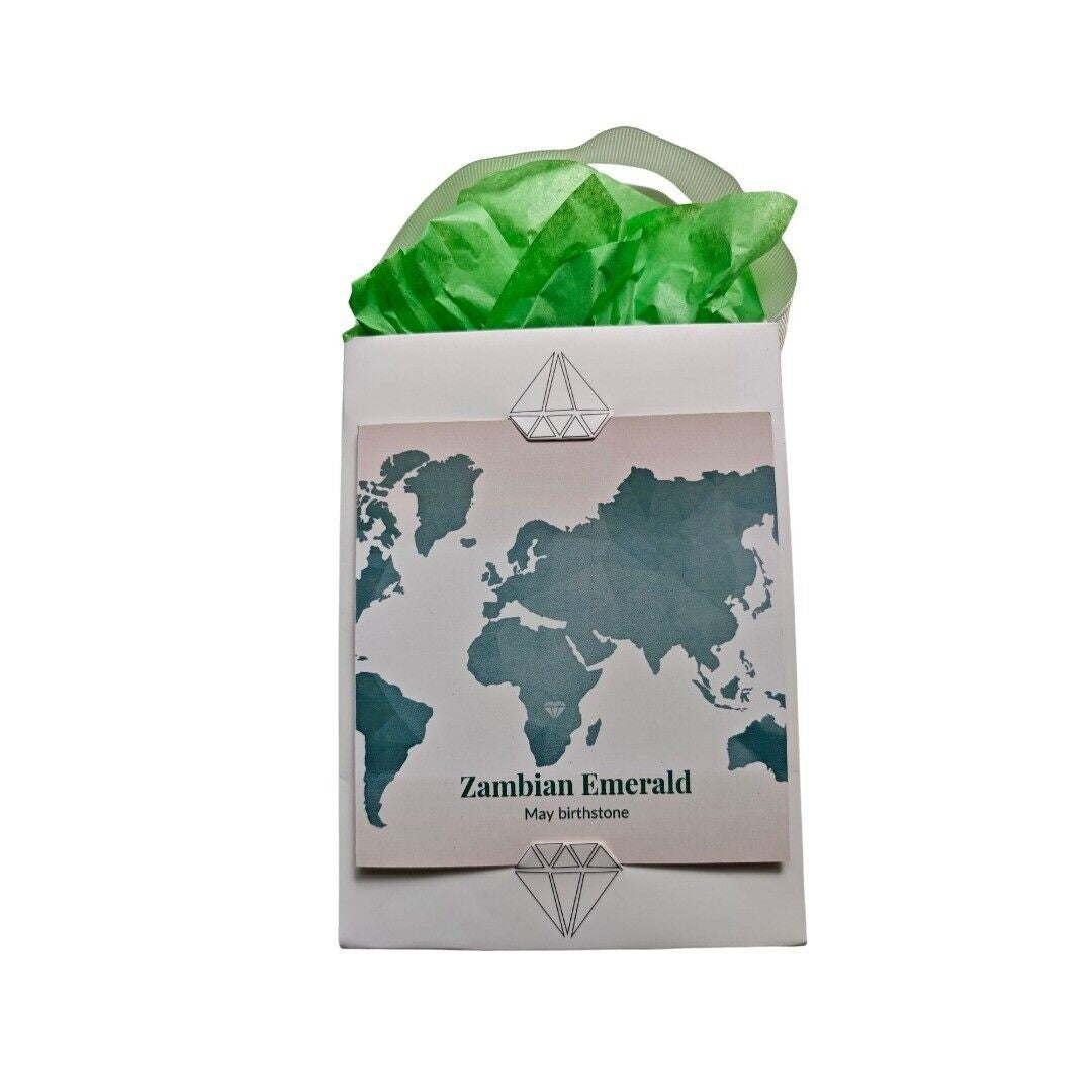 Stones: 3 x 2mm Zambian natual green emeralds approx 0.04ct each, 3 x African diamonds approx 0.0099ct total