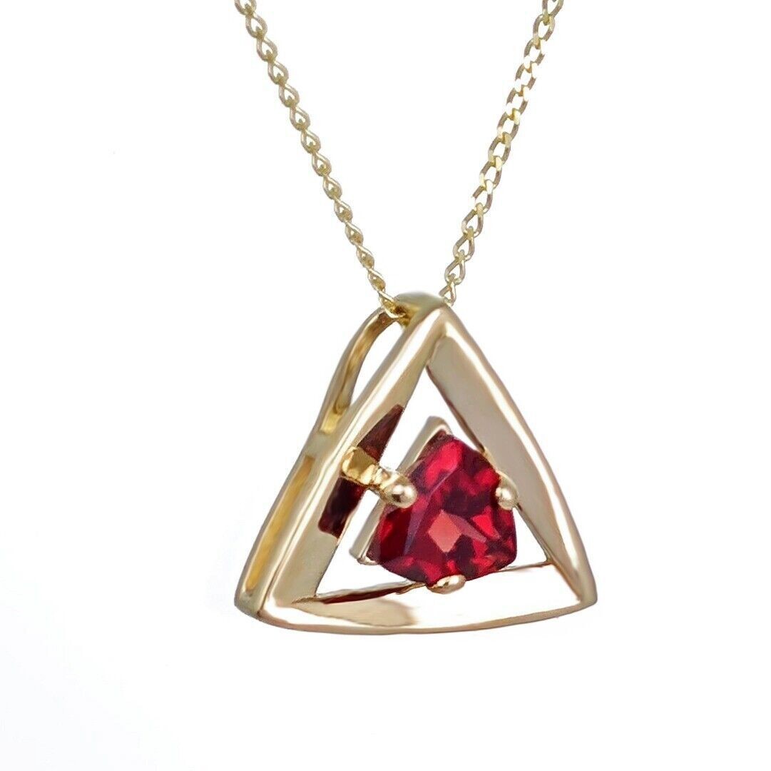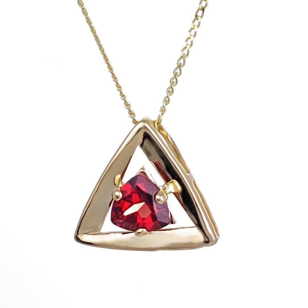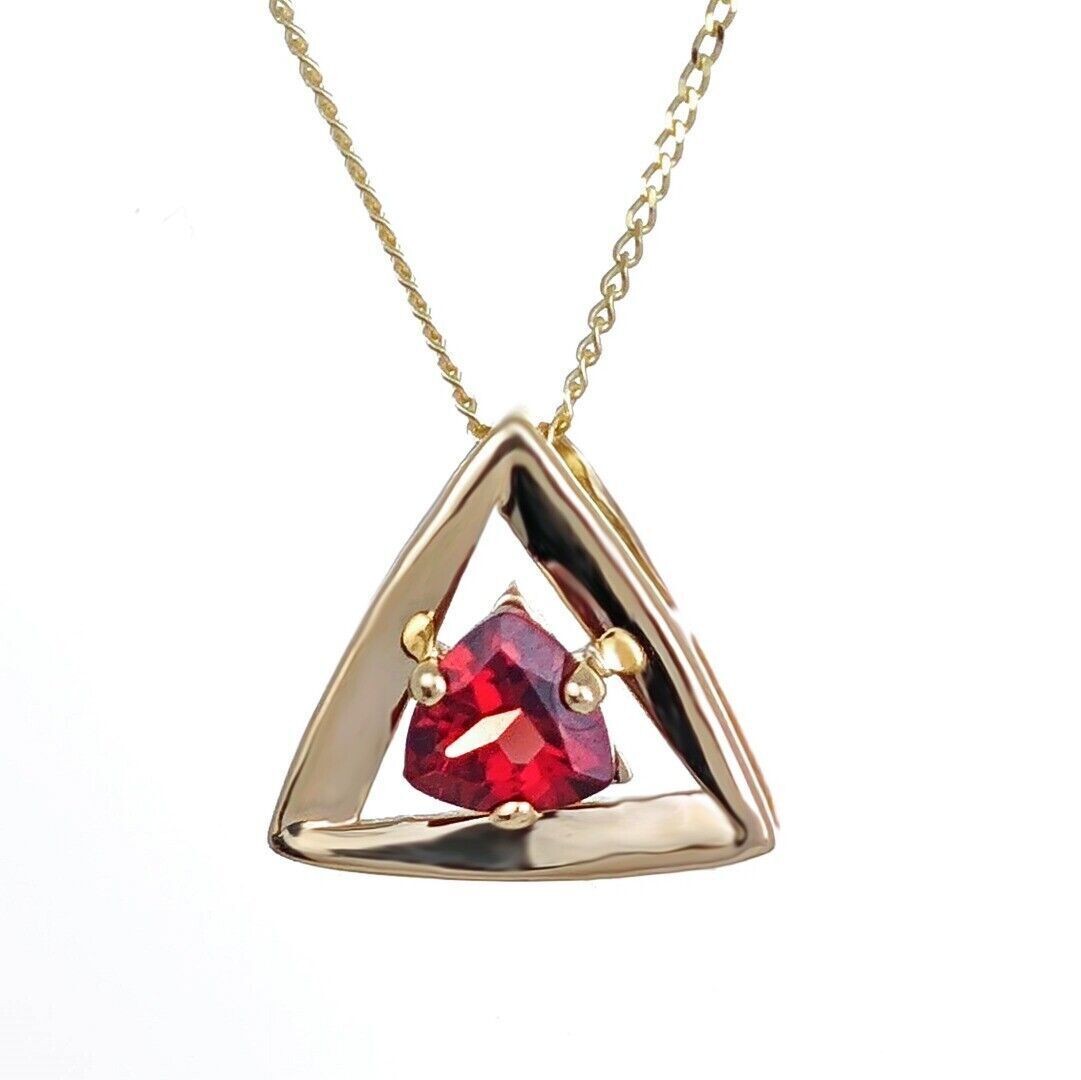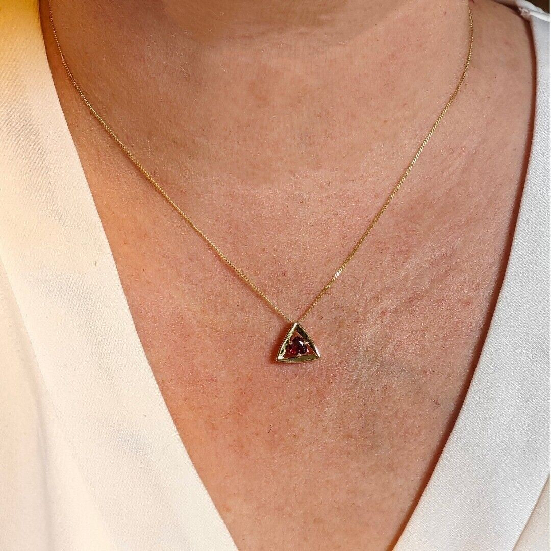 9ct Gold Garnet Necklace Red Trillion Gemstone Pendant