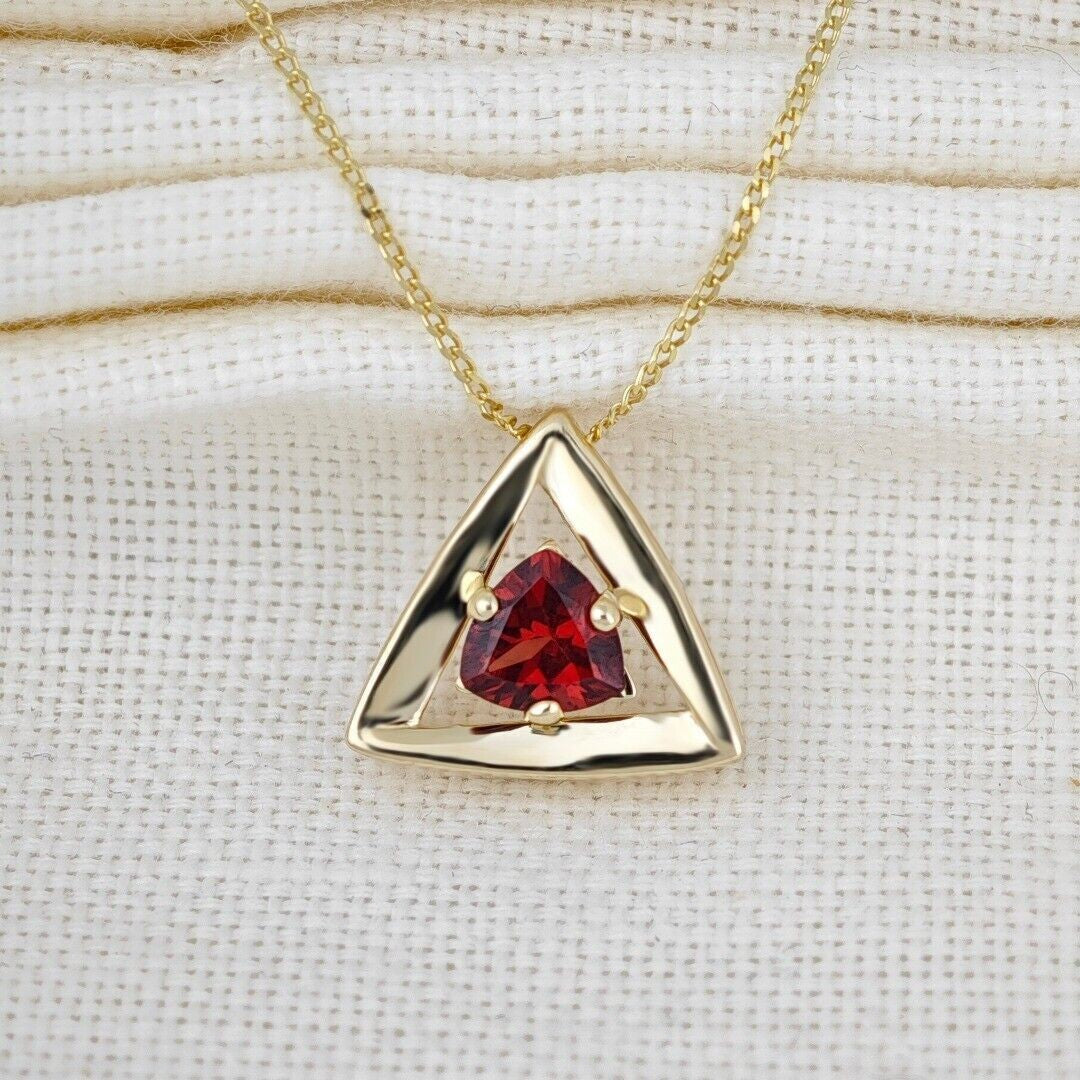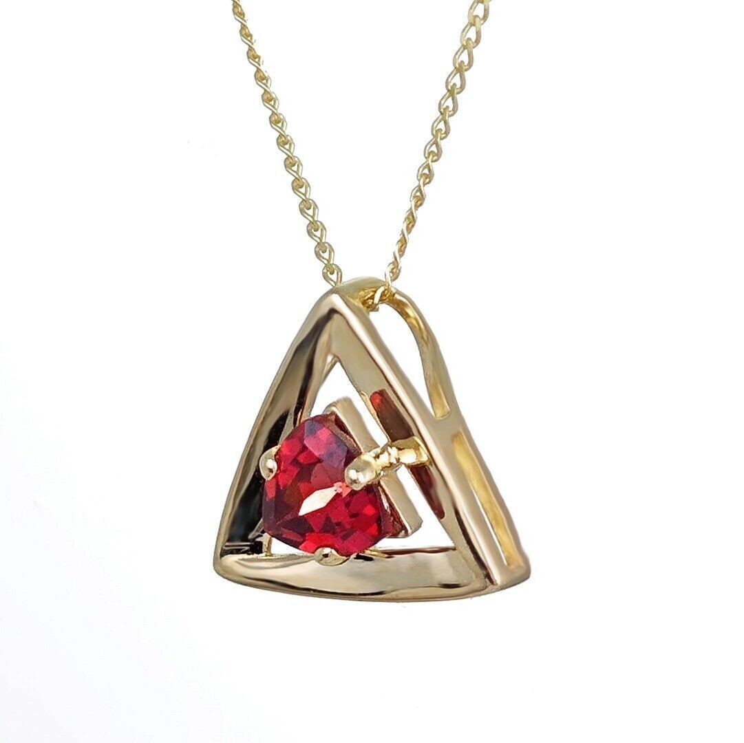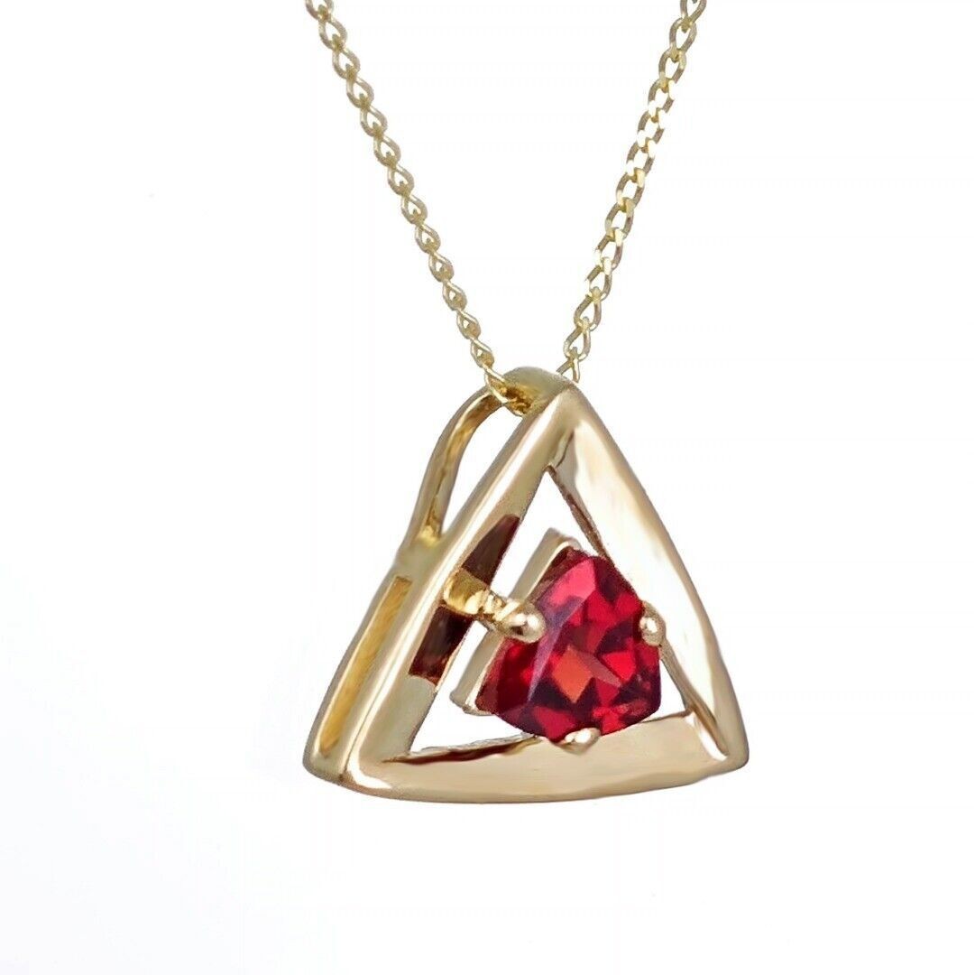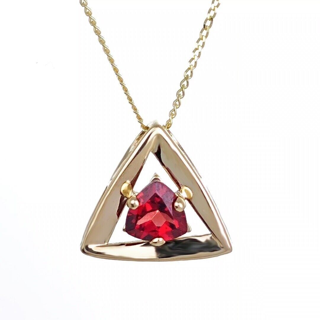 9ct Gold Garnet Necklace Red Trillion Gemstone Pendant