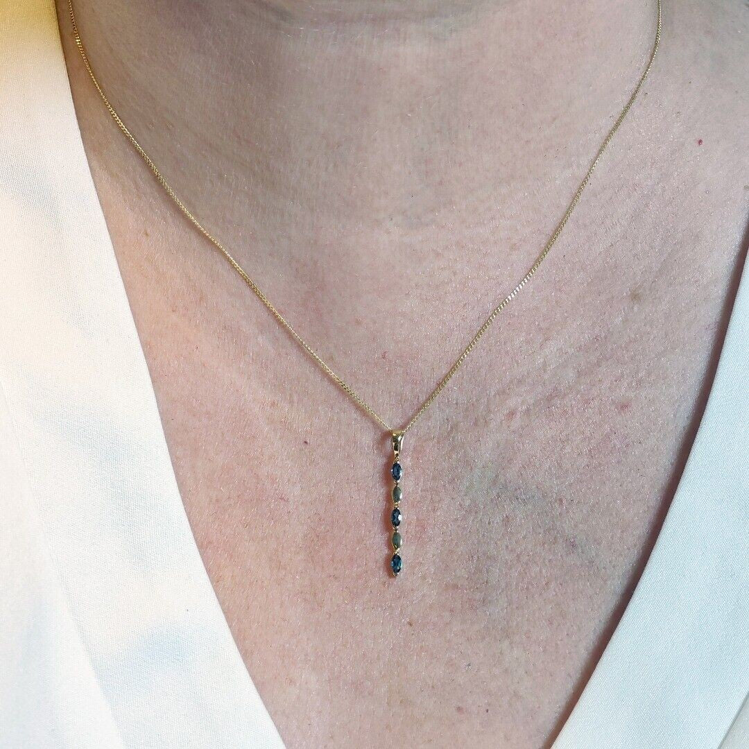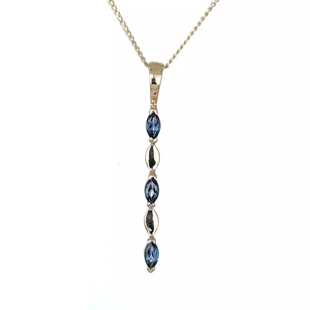 9ct Gold Pendant London Blue Topaz Marquise Gemstones
