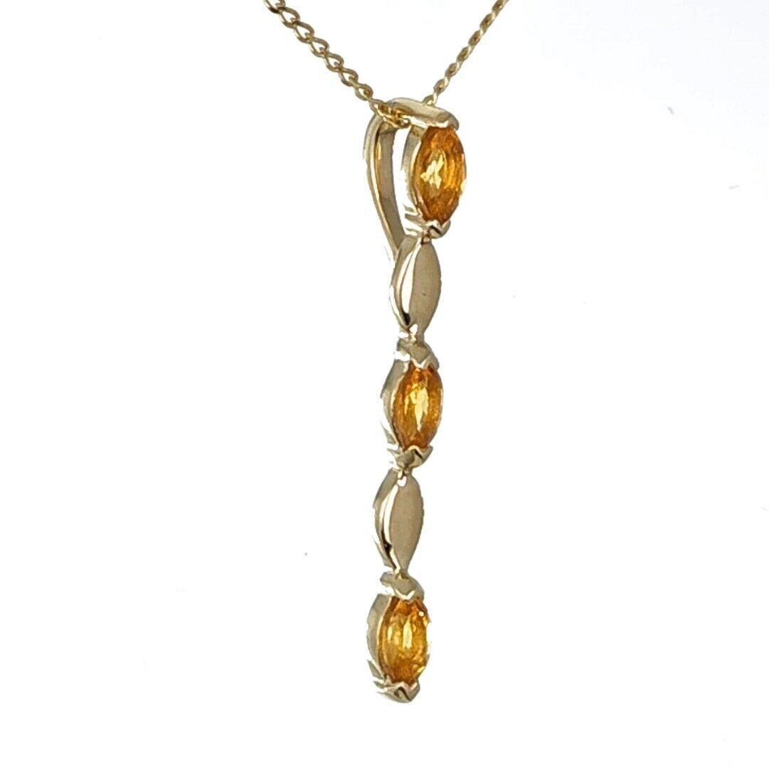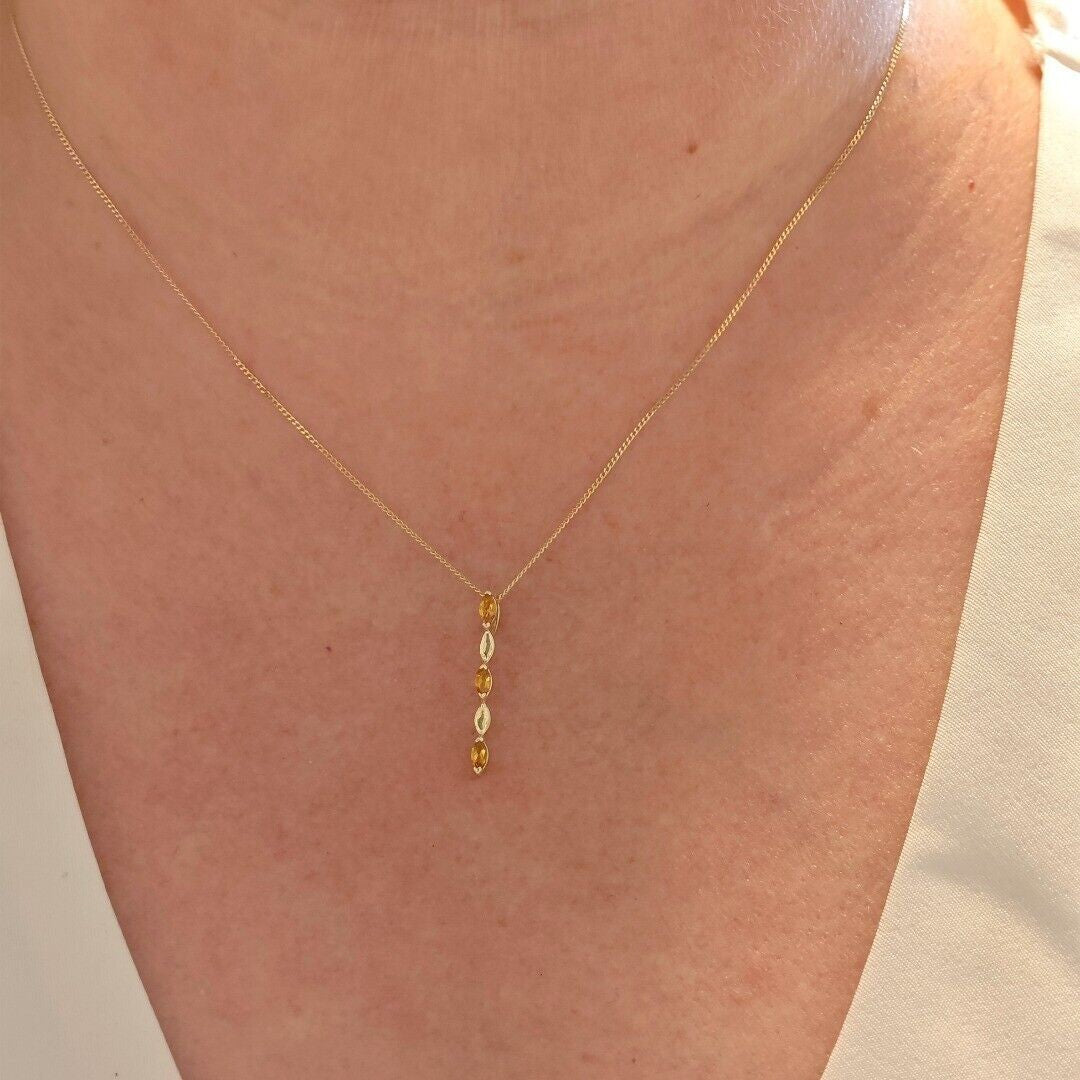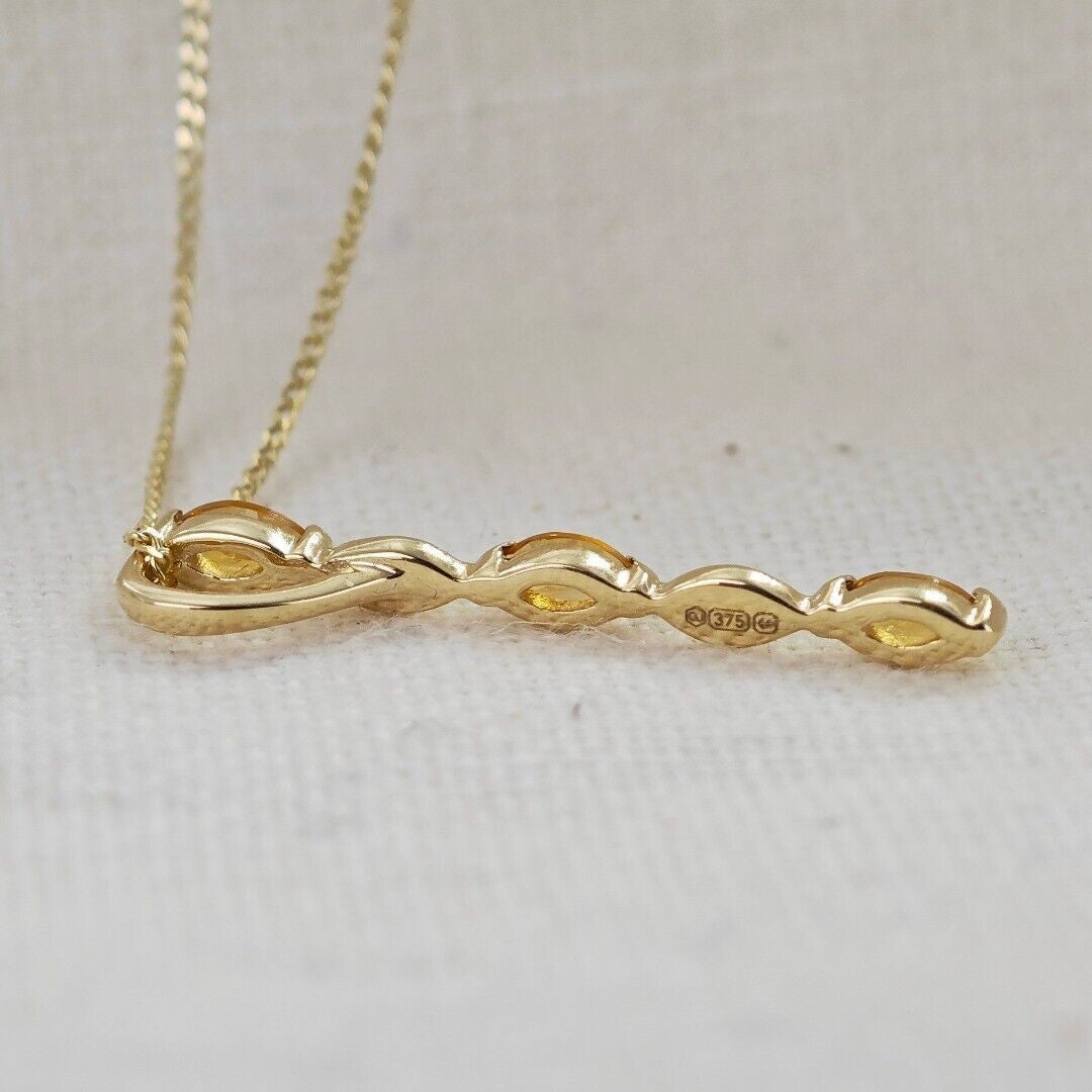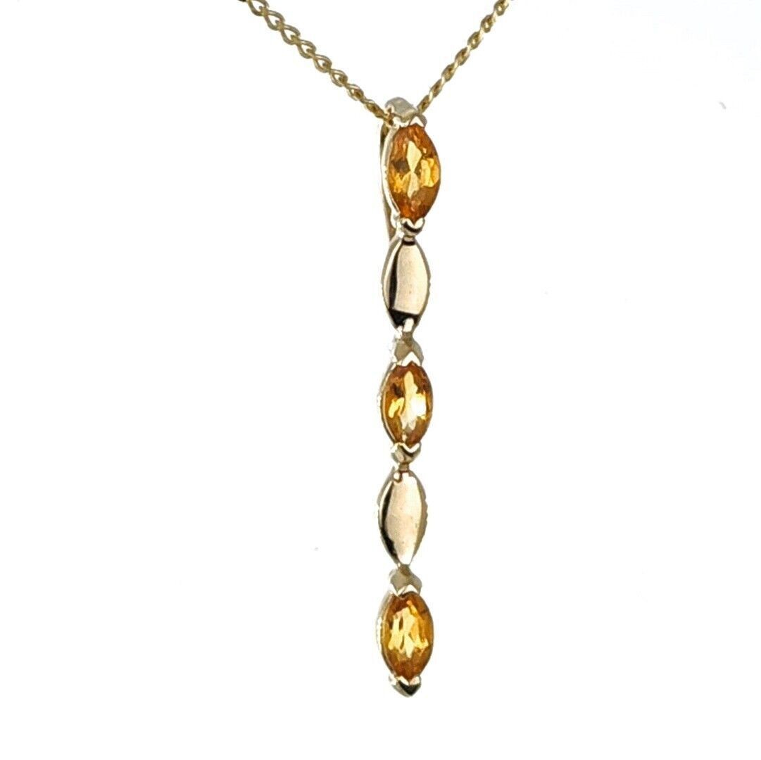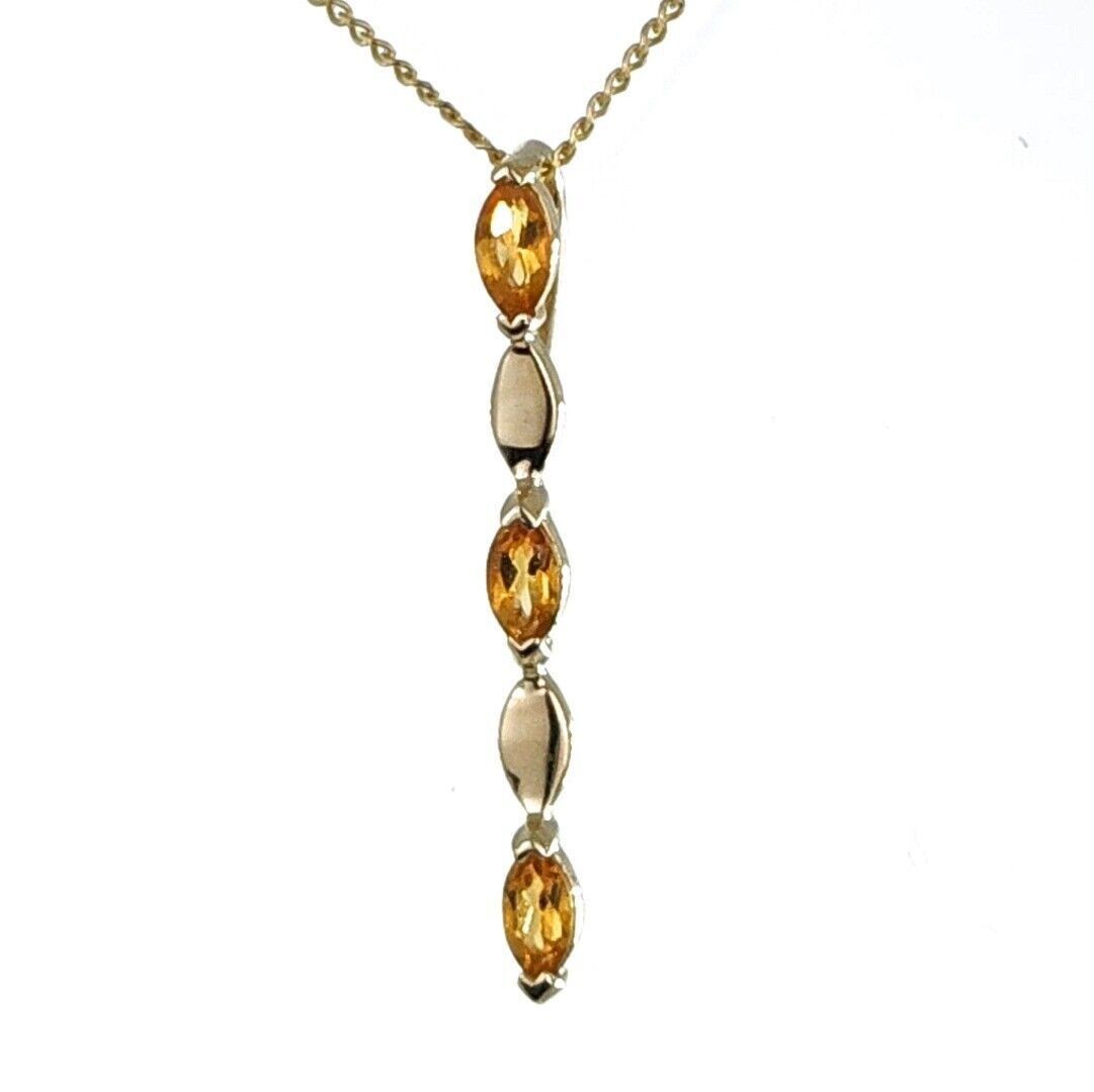 9ct Gold Pendant Yellow Citrine Marquise Hallmarked UK Design Handmade