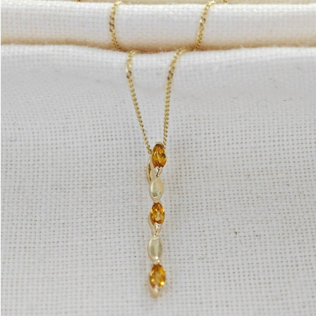 Elegant 9ct Gold marquise trilogy drop African Citrine pendant. Ojewellery design and part of our first full gold collection. Produced in very small quantities you will only find this pendant from Ojewellery direct.