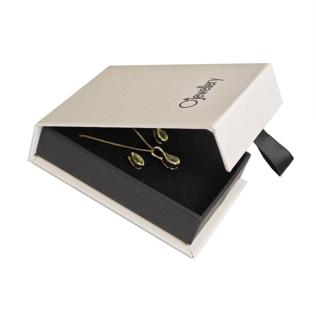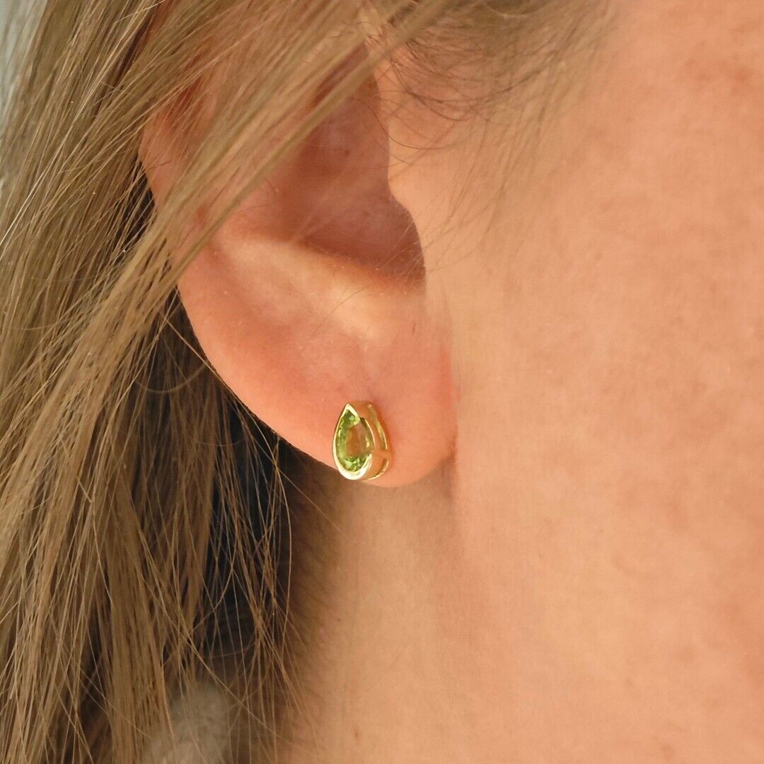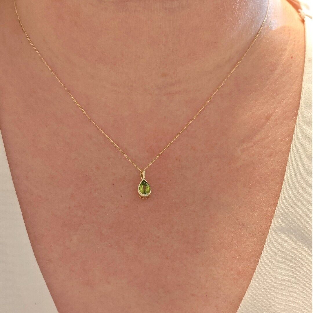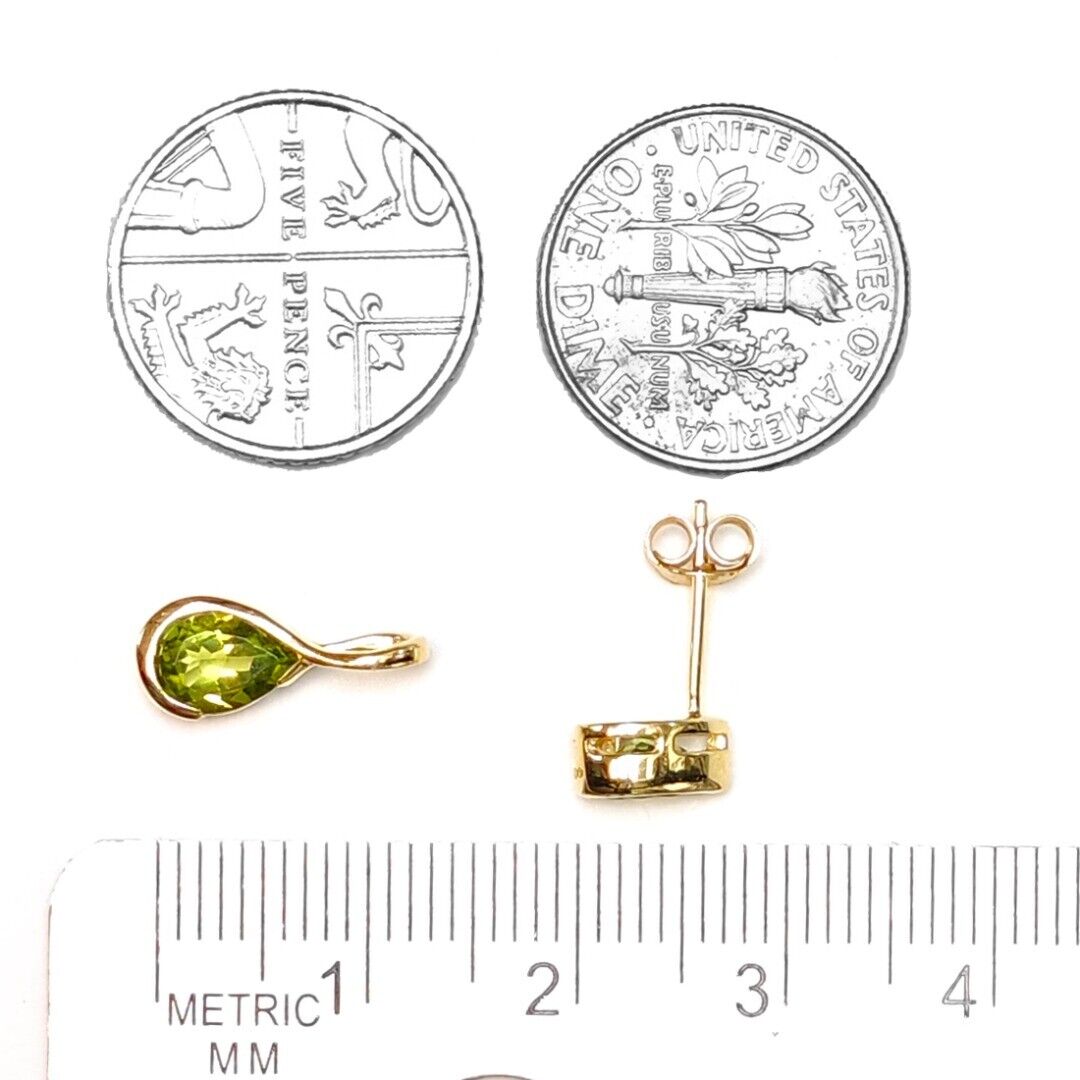 9ct Gold Peridot Set Earrings Pendant Green Pear Solitaire