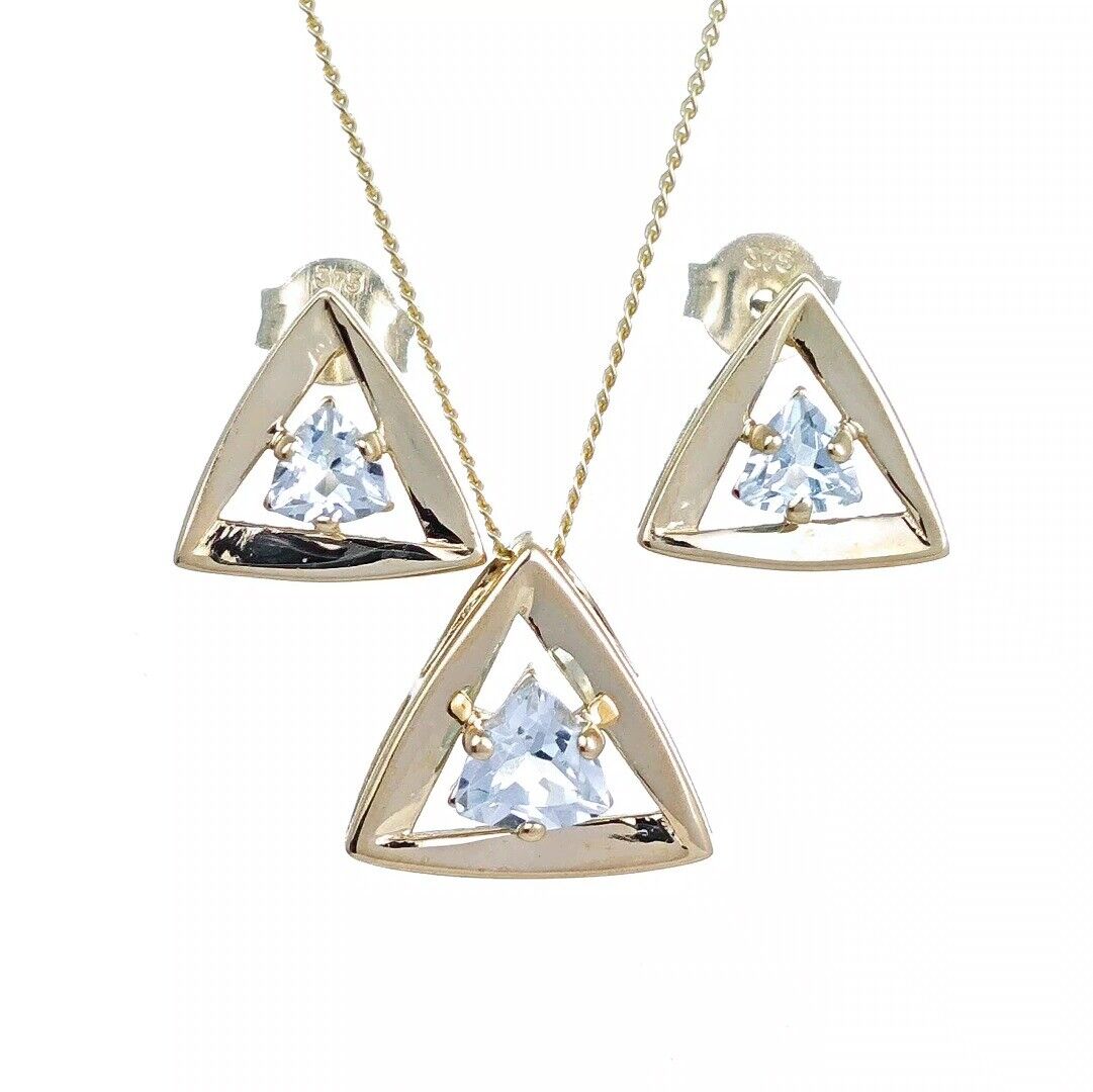 9ct Gold Topaz Set Pendant Earrings Natural Blue Trillion Gemstones