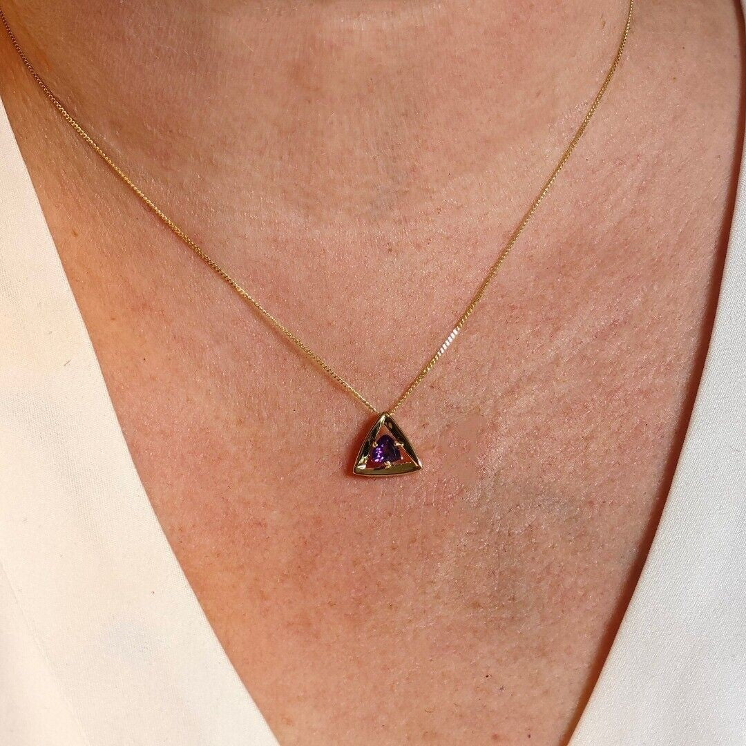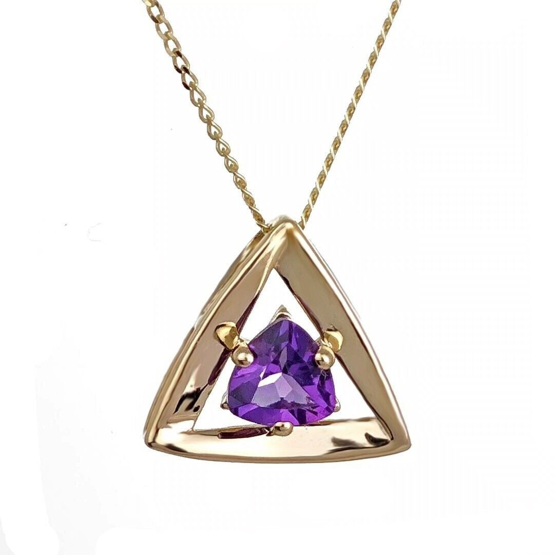 9ct Gold Triangle Amethyst Pendant Natural Purple Trillion Gemstone
