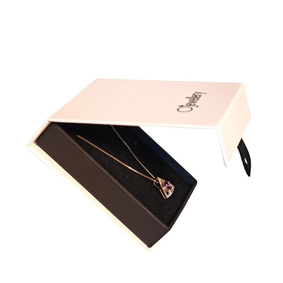 Add a touch of elegance to your jewellery collection with this stunning 9ct Gold Amethyst Necklace. The triangular-shaped pendant features a natural purple amethyst gemstone with a total carat weight of 0.39. The prong setting style enhances the beauty of the gemstone, making it the perfect accessory for any occasion. The necklace is 46 cm in length and is made of high-quality yellow gold, making it a durable addition to your collection. Handmade and beautifully boxed, this necklace is a must-have for any jewellery lover.