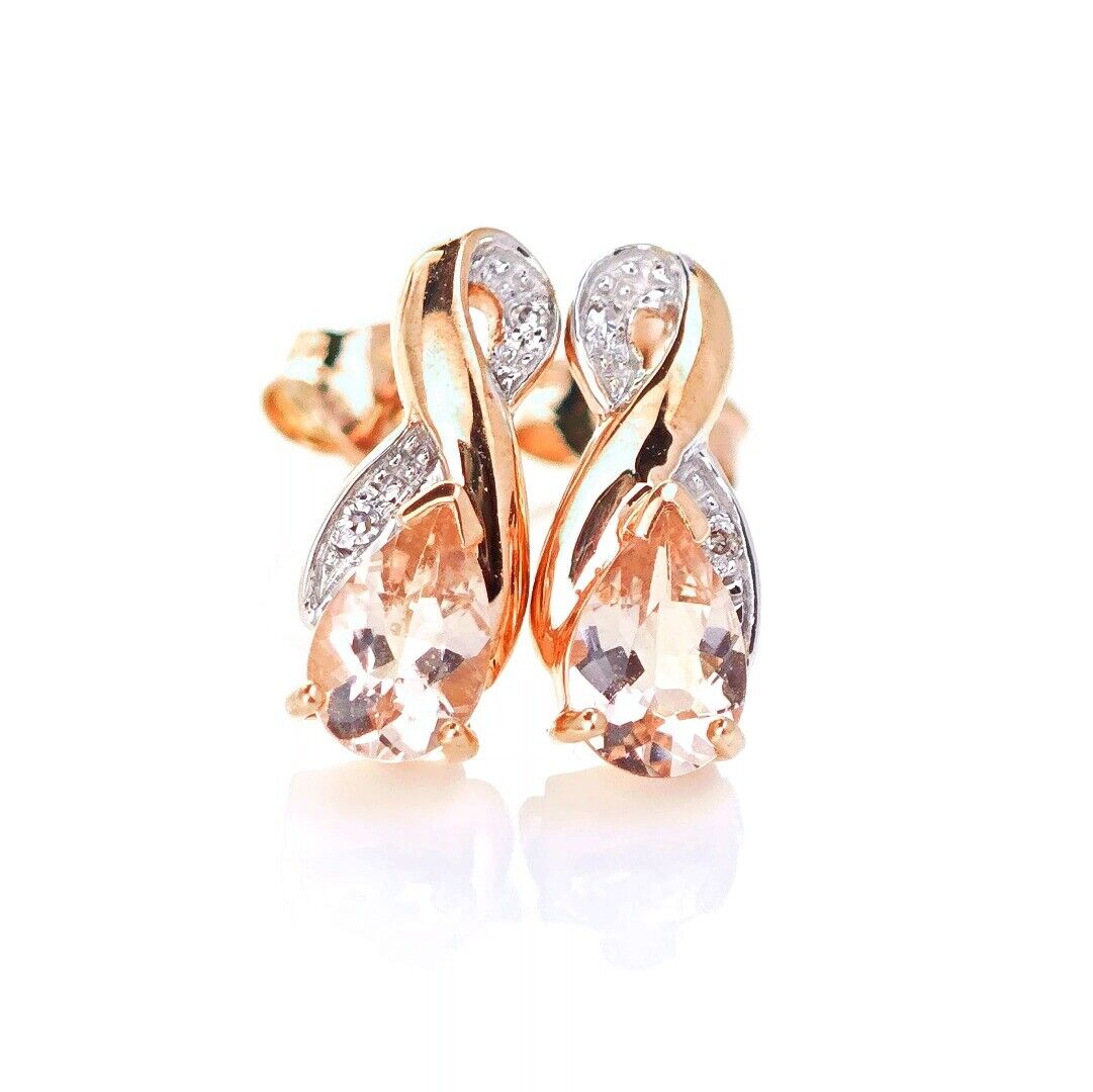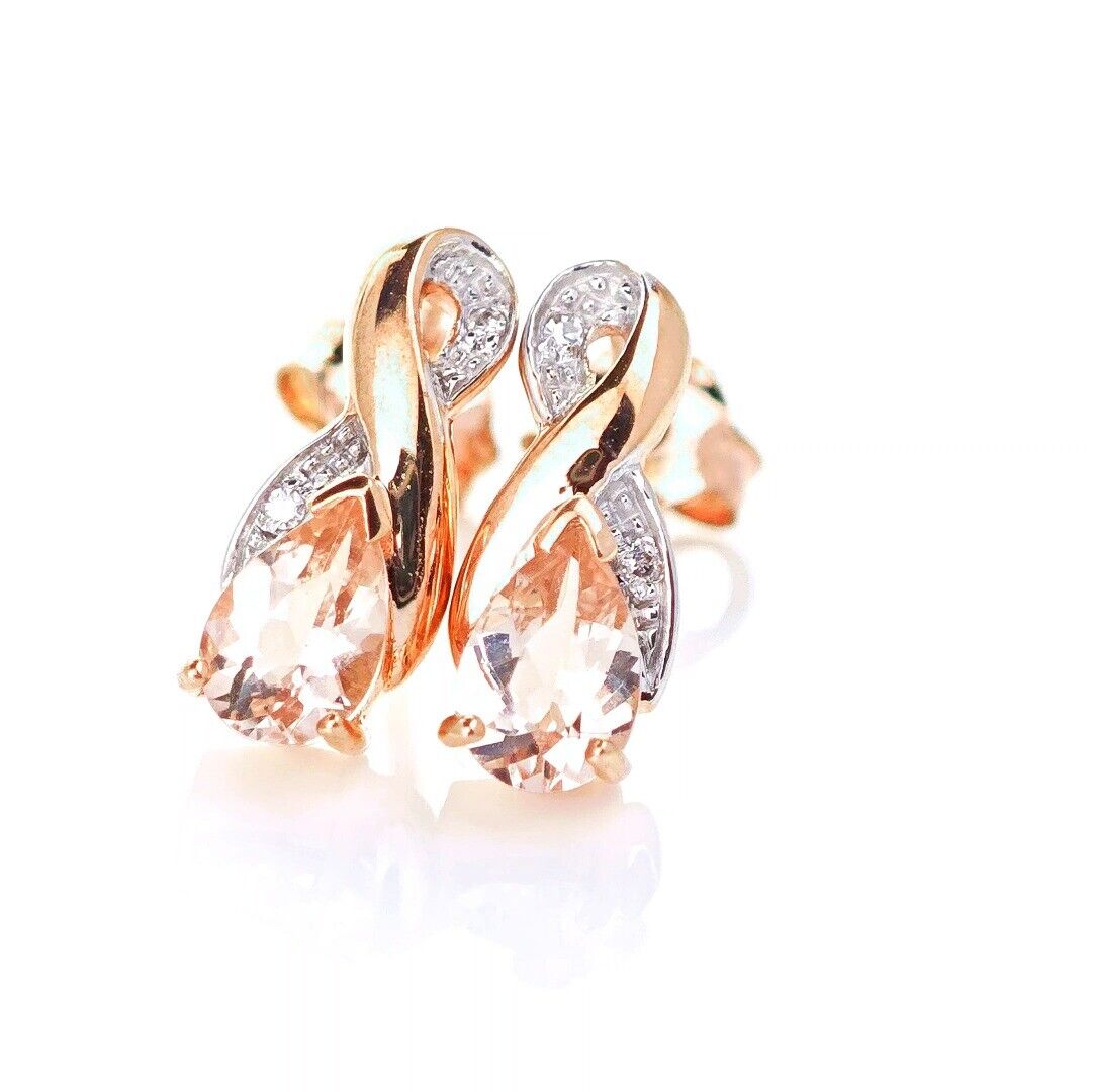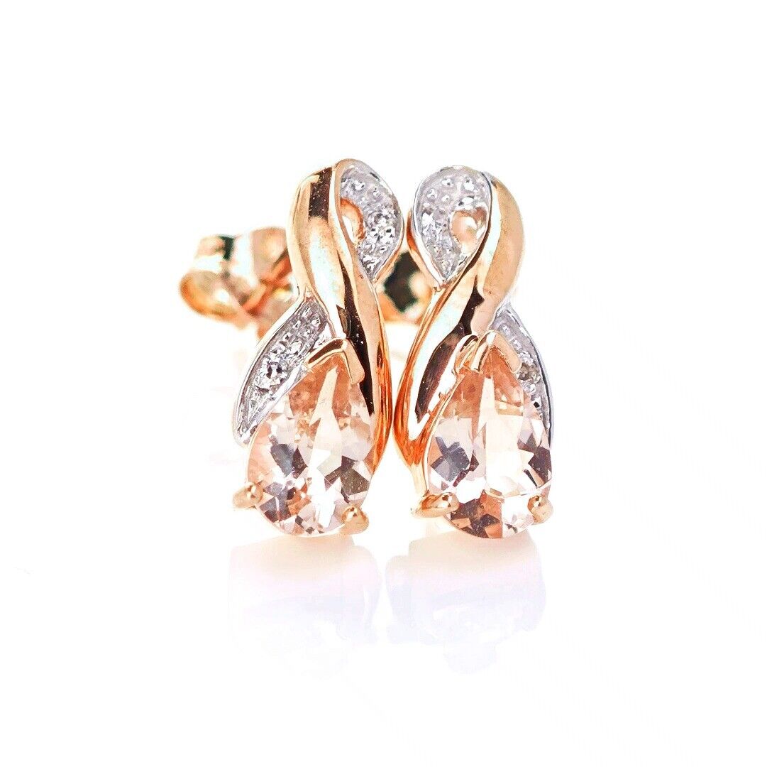 9ct Morganite Diamond Earrings Rose Gold Studs Natural Pink Gemstones 0.80ct