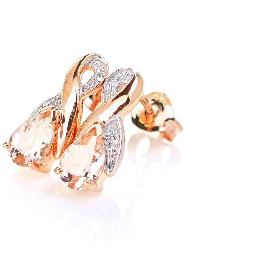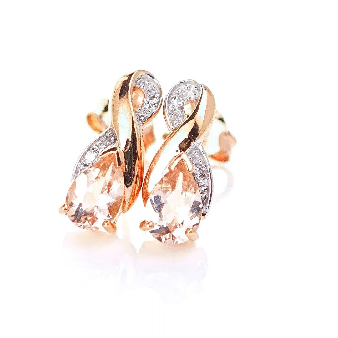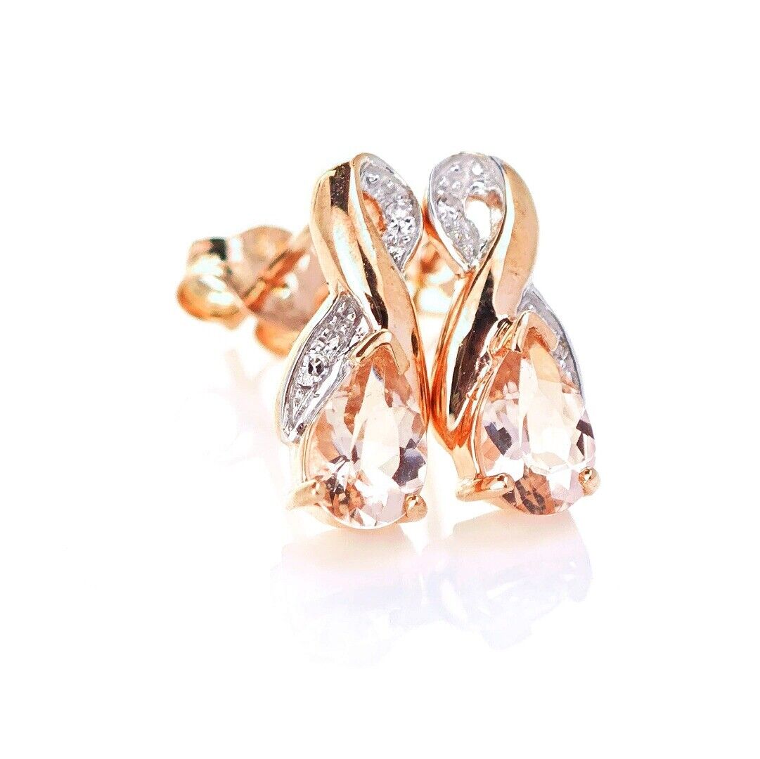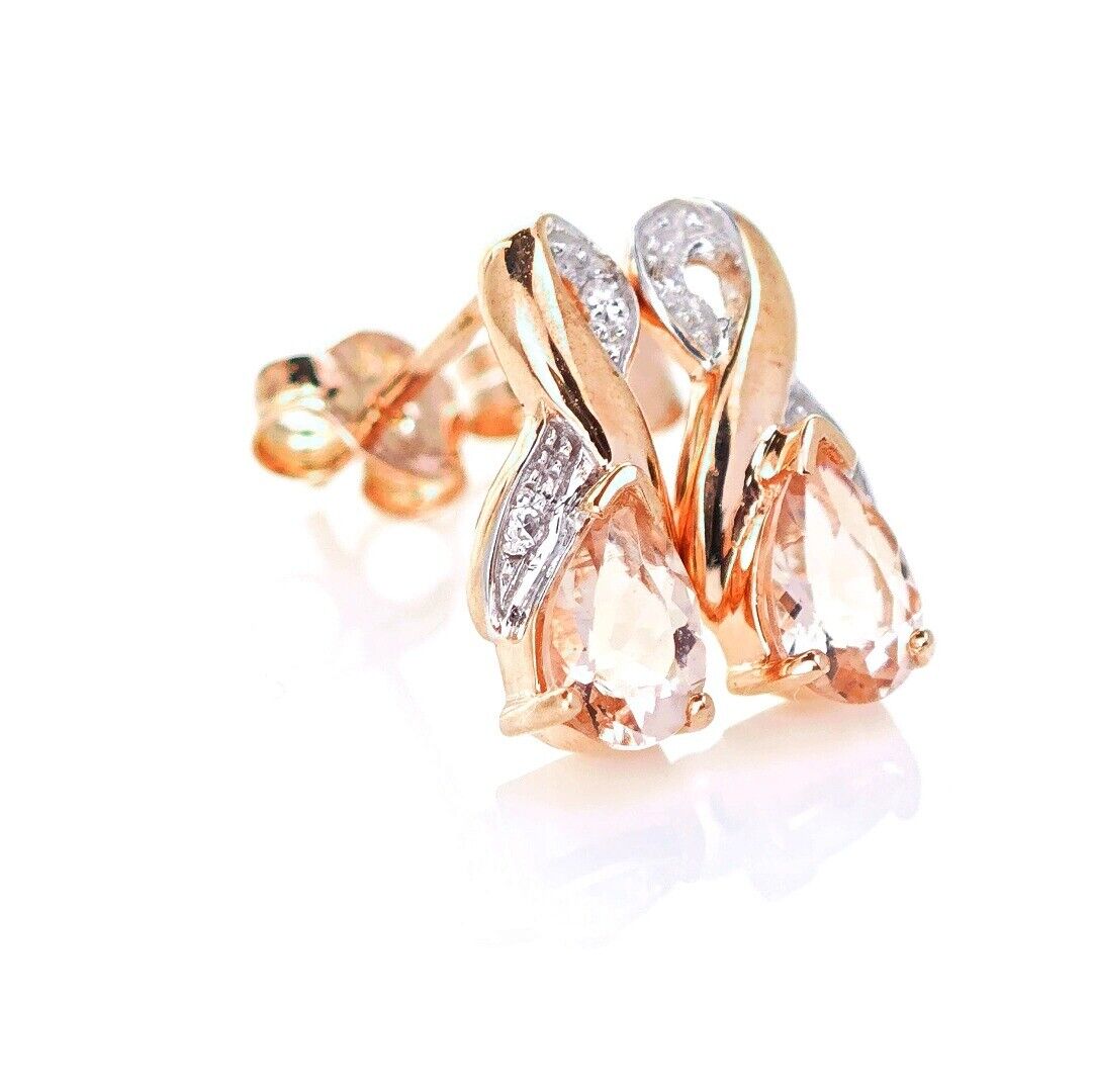 9ct Morganite Diamond Earrings Rose Gold Studs Natural Pink Gemstones 0.80ct