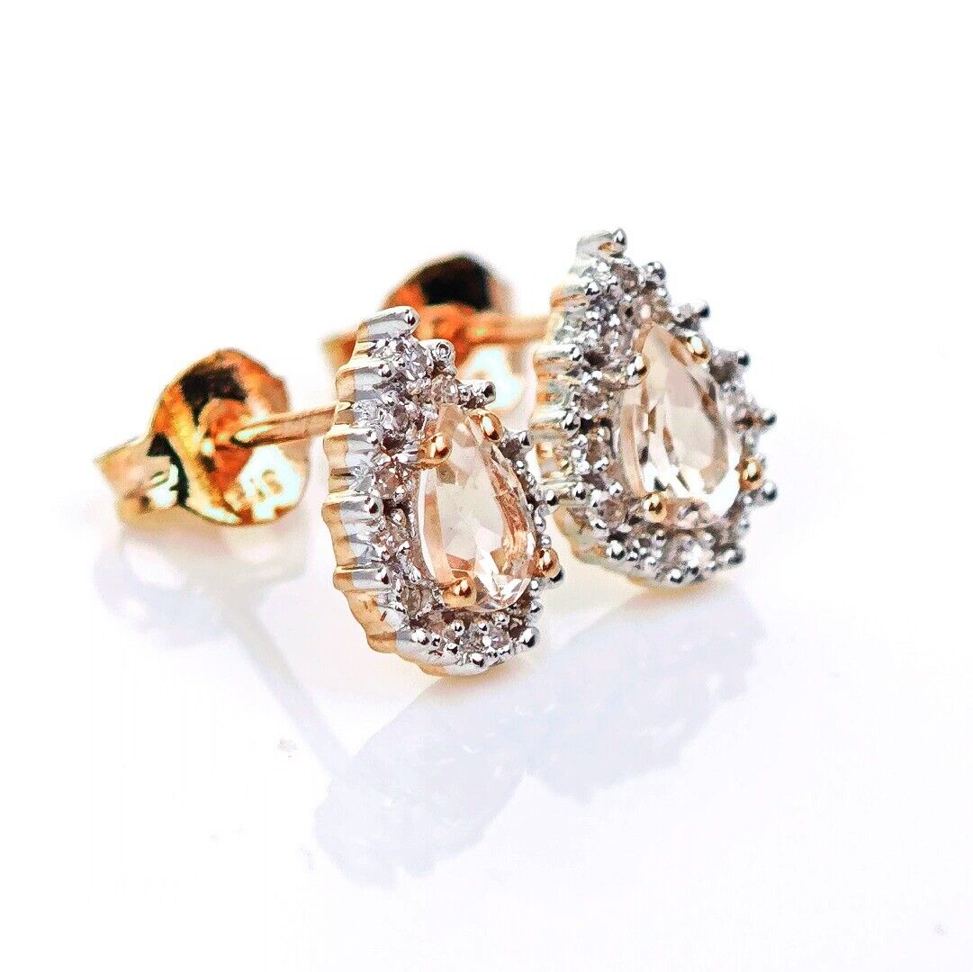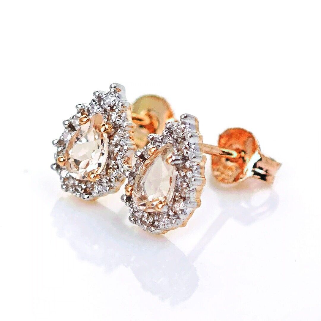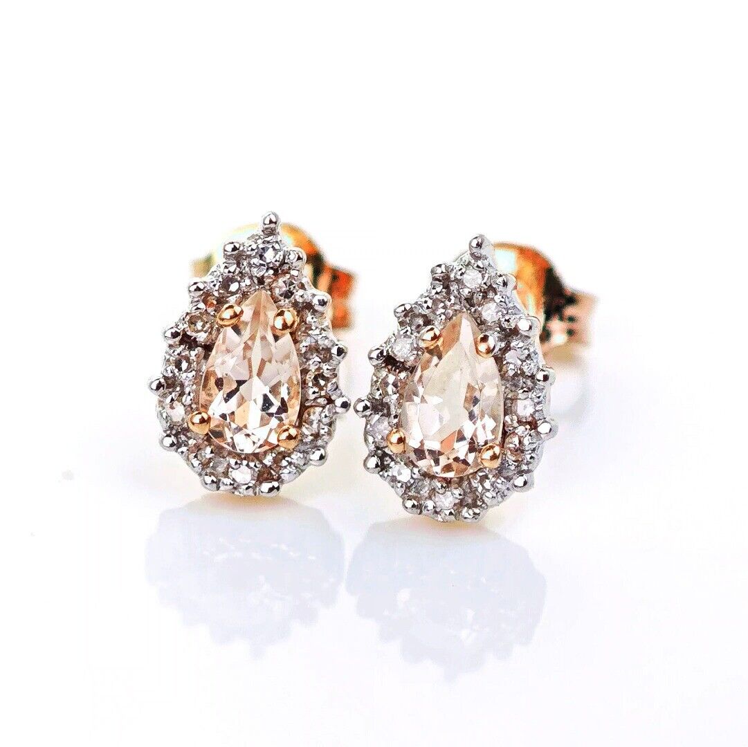 9ct Morganite Diamond Earrings Studs Rose Gold 0.38 ct Natural Pink Gemstone