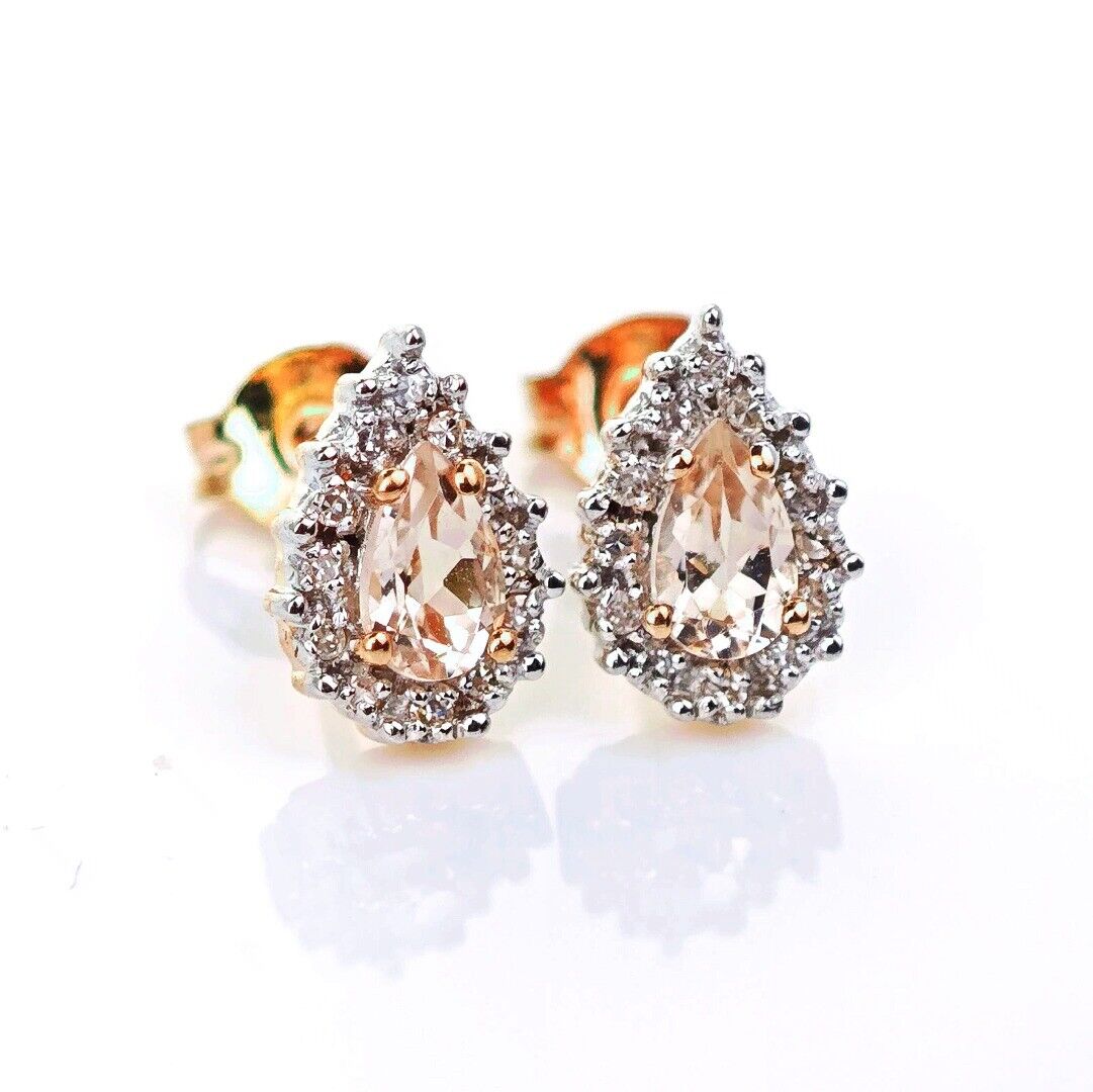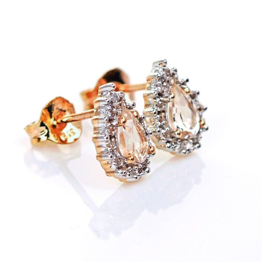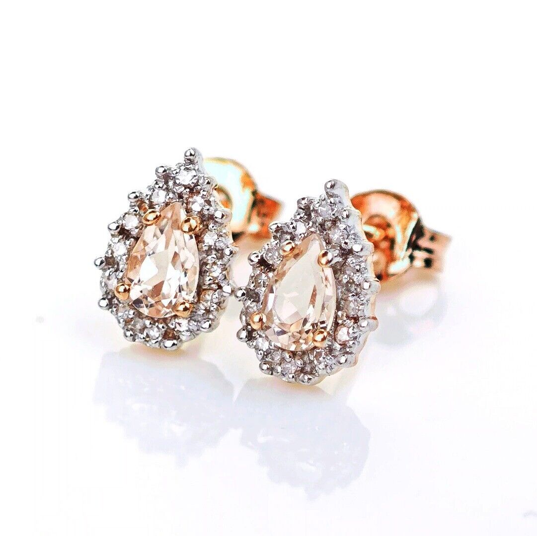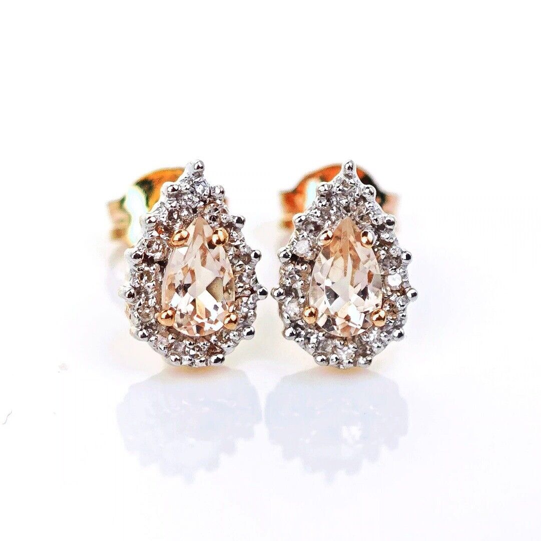 9ct Morganite Diamond Earrings Studs Rose Gold 0.38 ct Natural Pink Gemstone