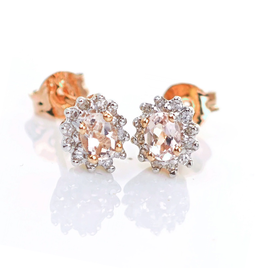 9ct Morganite Diamond Earrings Studs Rose Gold Pink 0.3 ct Natural Gemstonee