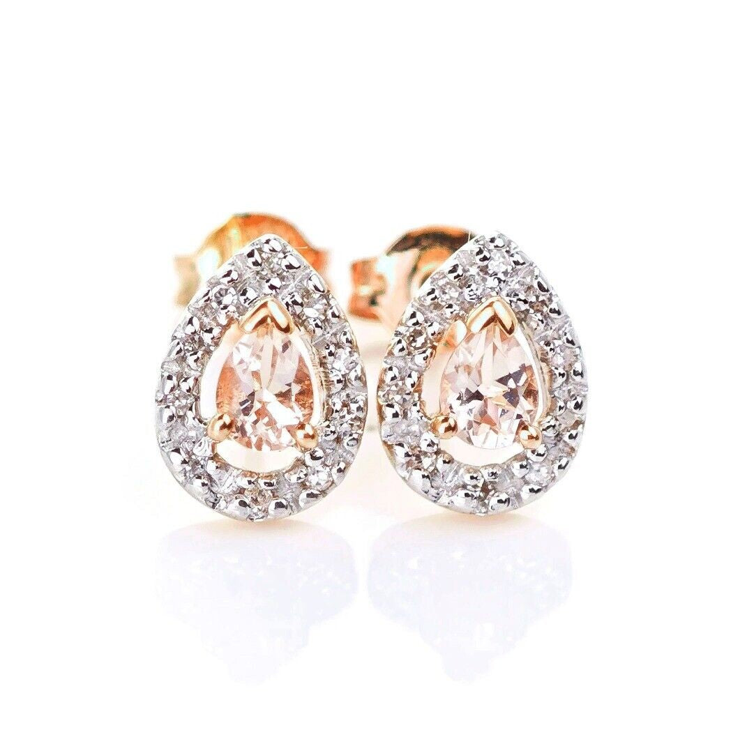 9ct Morganite Diamond Earrings Studs Rose Gold Pink 0.32 ct Natural Gemstone