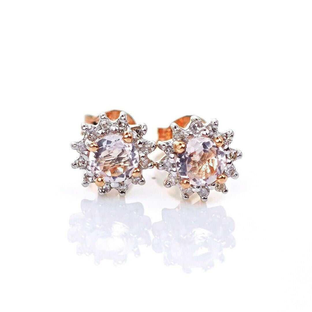 9ct Morganite Diamond Earrings Studs Rose Gold Pink 0.46 ct Natural Gemstone