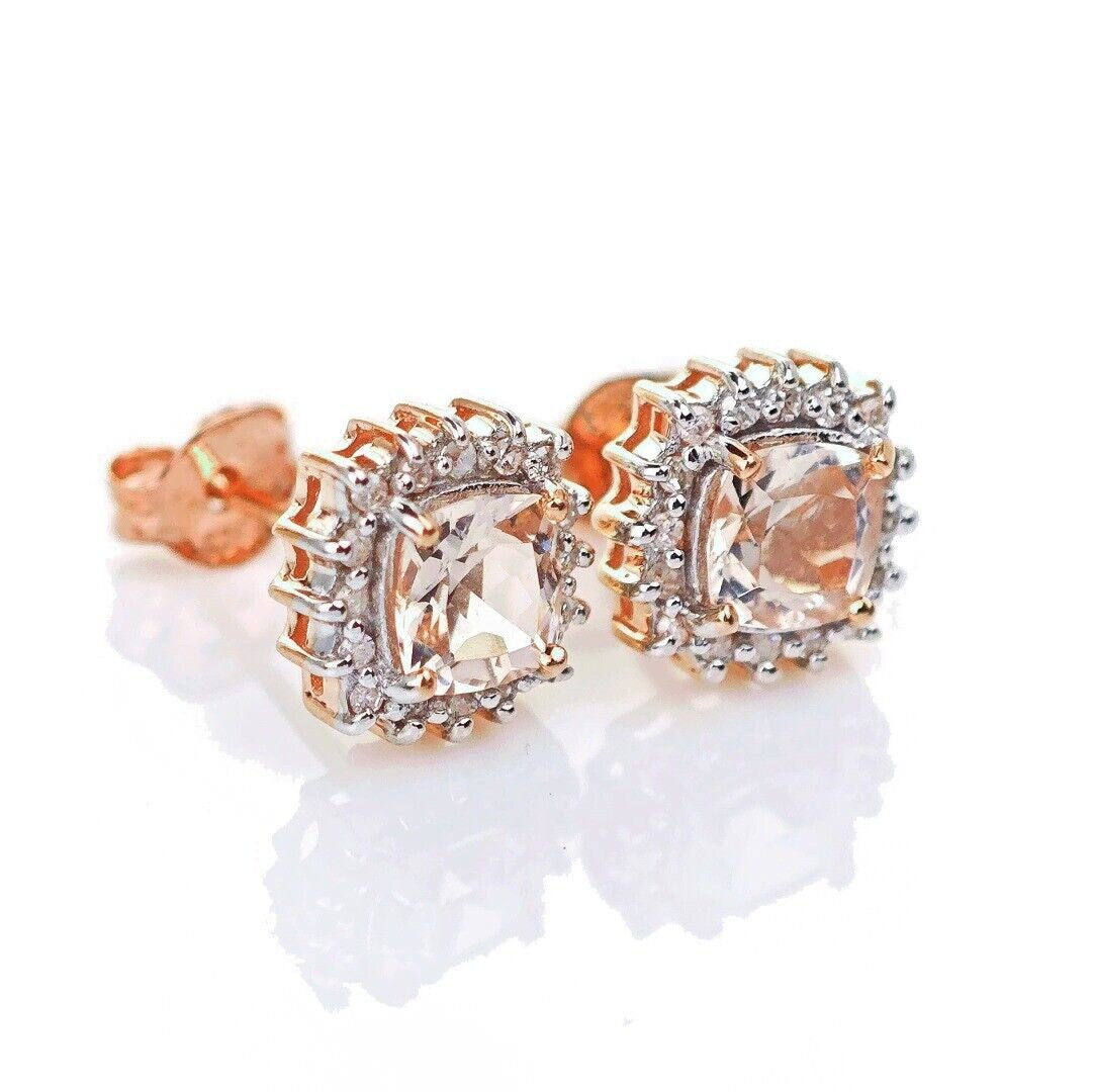 9ct Morganite Diamond Earrings Studs Rose Gold Pink 1.04 ct Natural Gemstone
